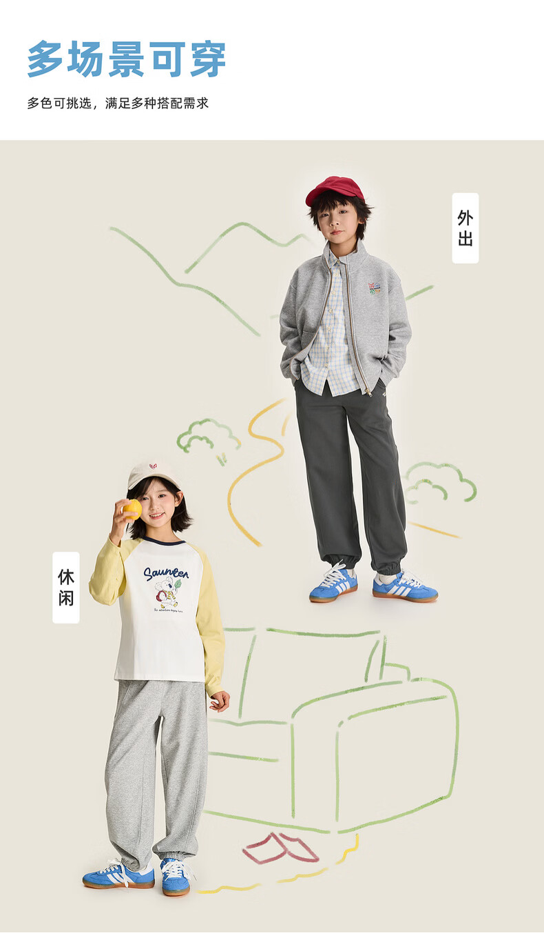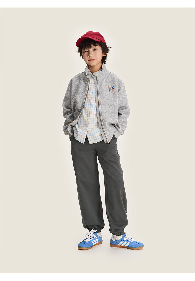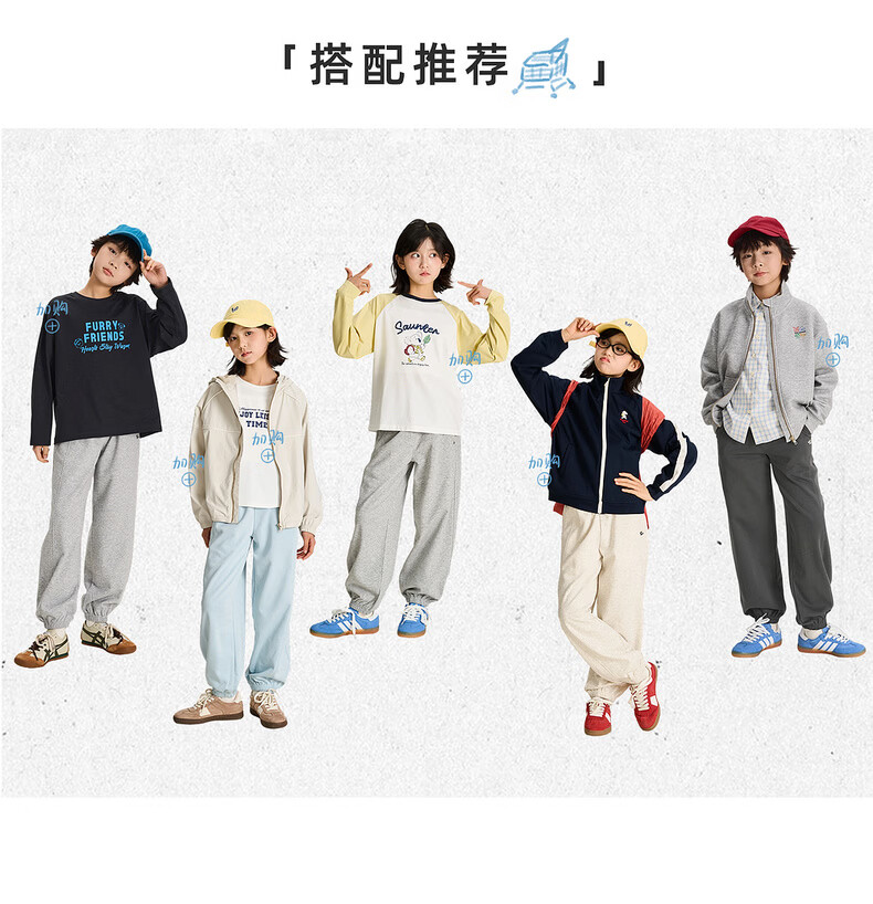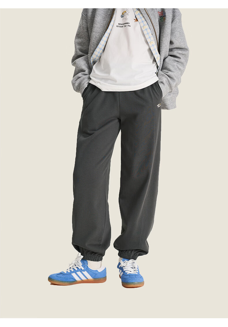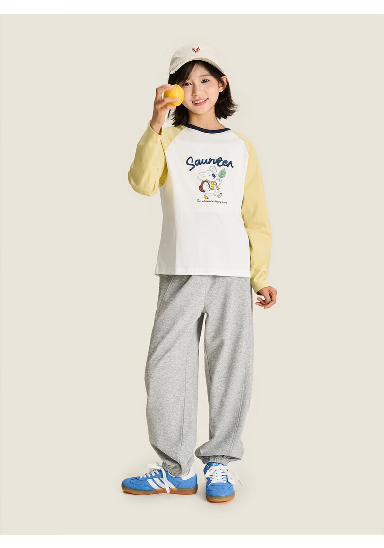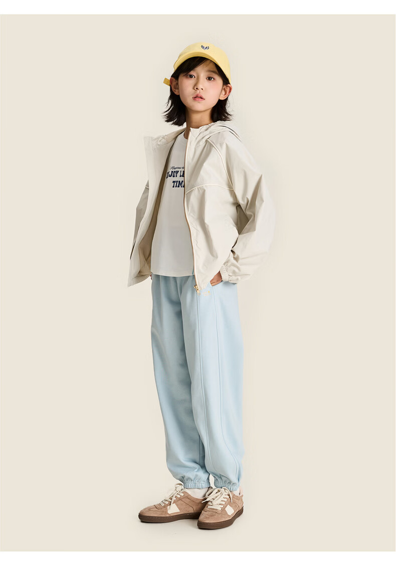 棉叔叔【结构款校服裤】女童毛圈卫裤男童2026春休闲收脚口香蕉裤男童 碧水蓝 150 150