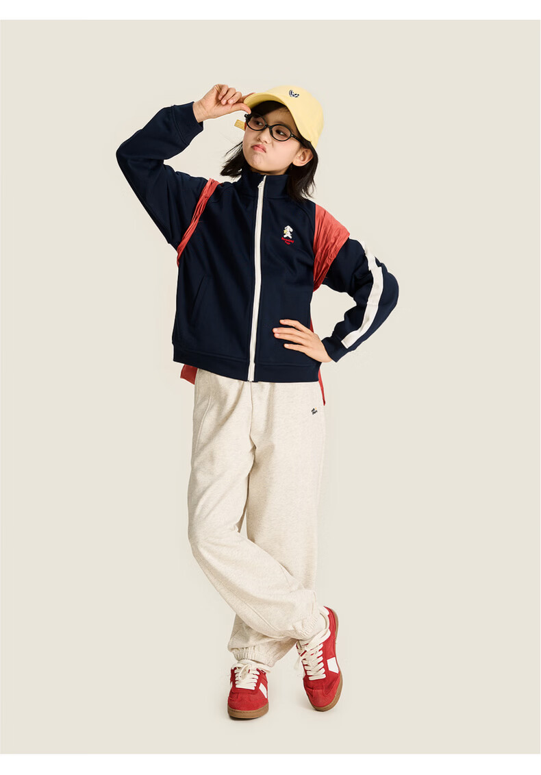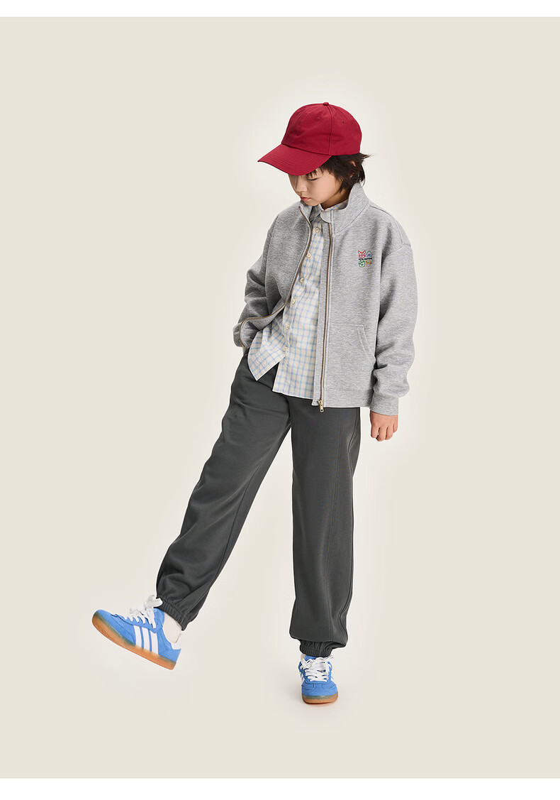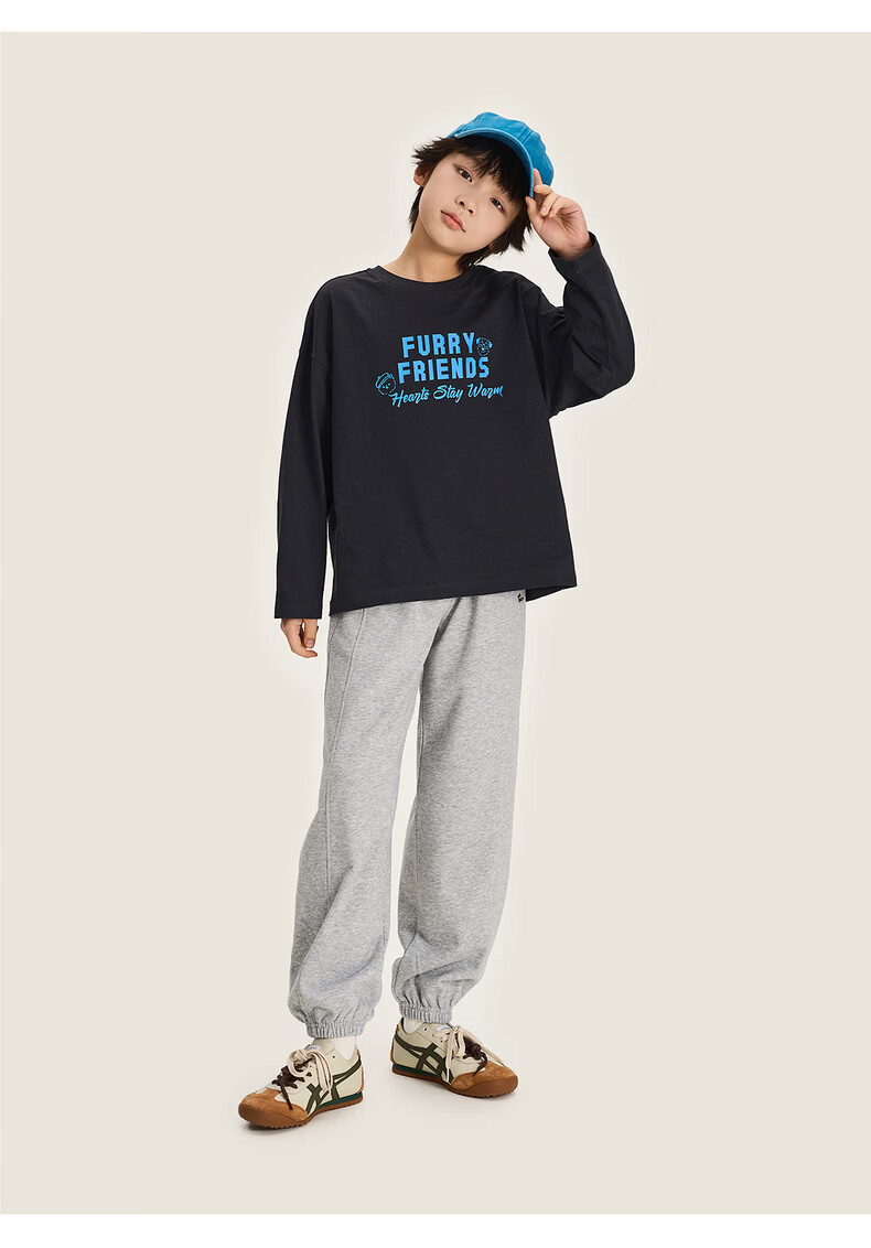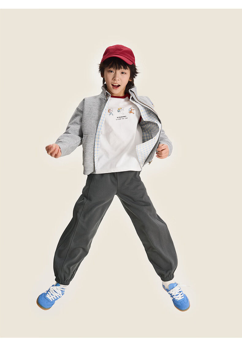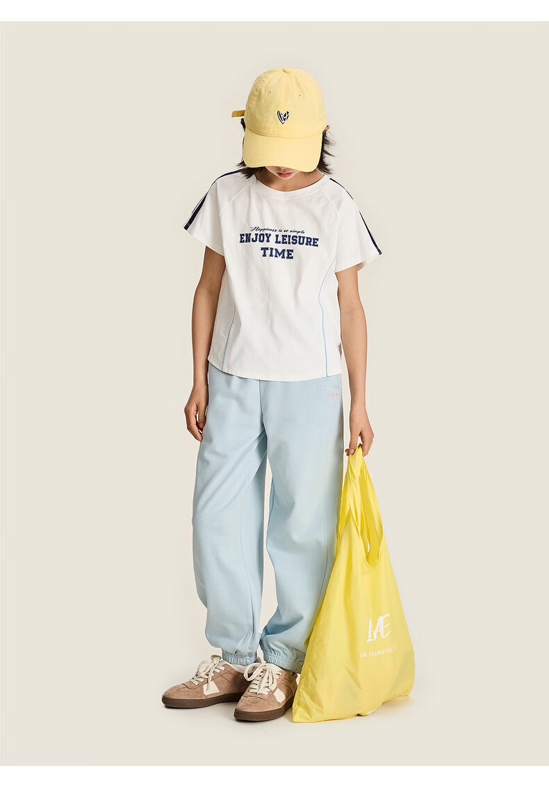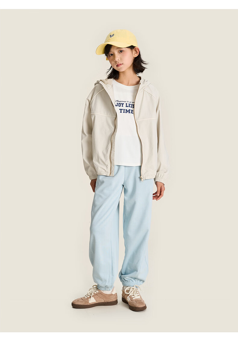 棉叔叔【结构款校服裤】女童毛圈卫裤男童2026春休闲收脚口香蕉裤男童 碧水蓝 150 150