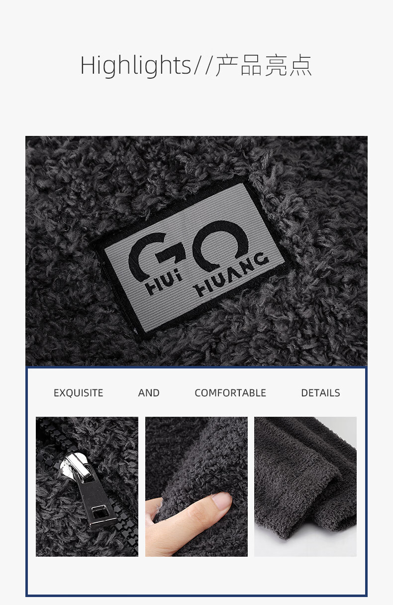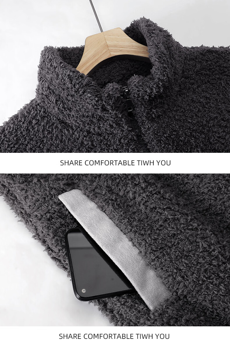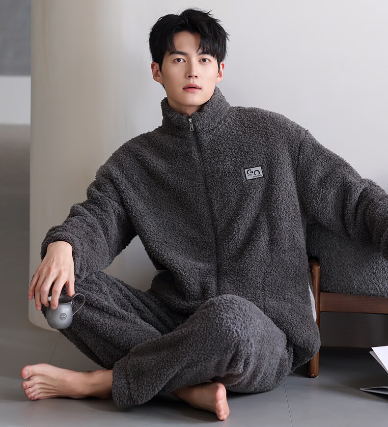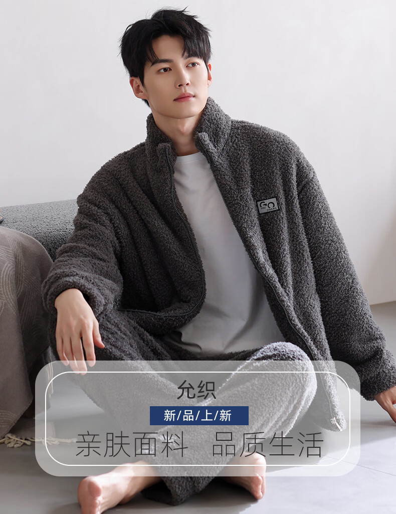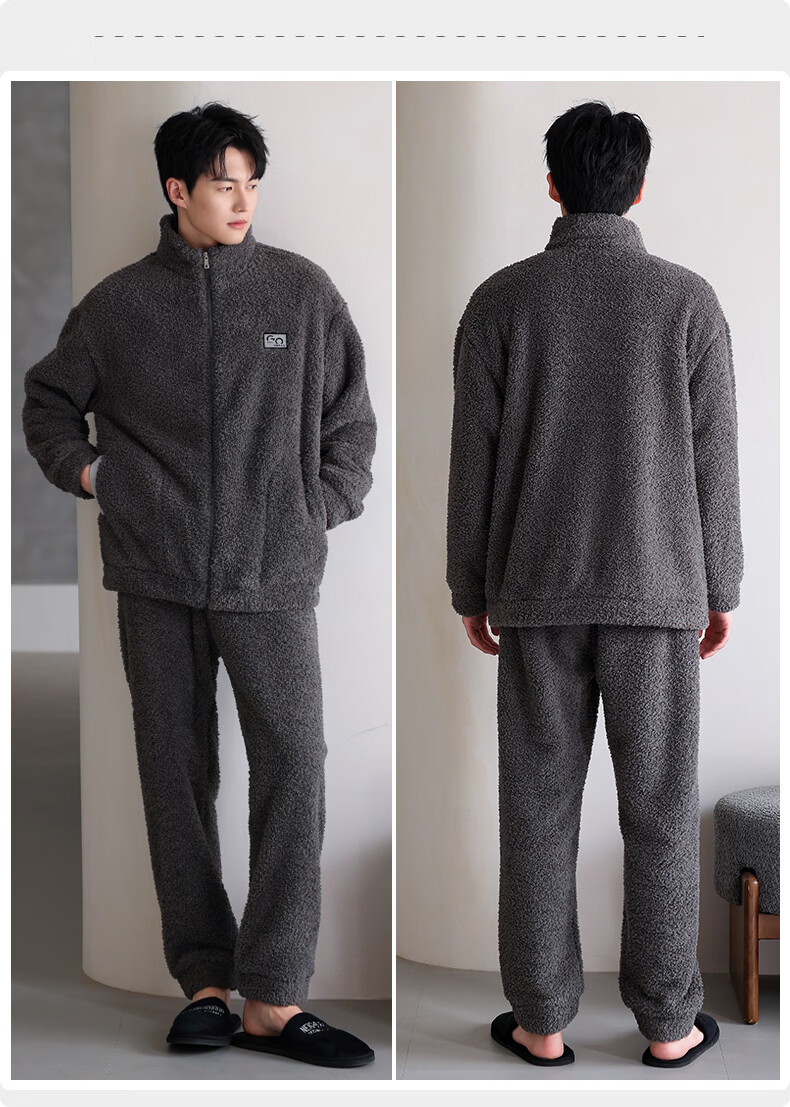 允织半边绒睡衣男士冬季加厚加绒秋冬款拉链高级感冬天家居服保暖套装 9061-深灰 M (165) :建议100-120斤穿着