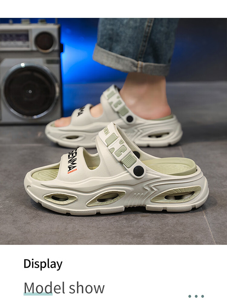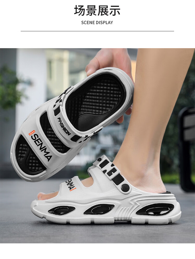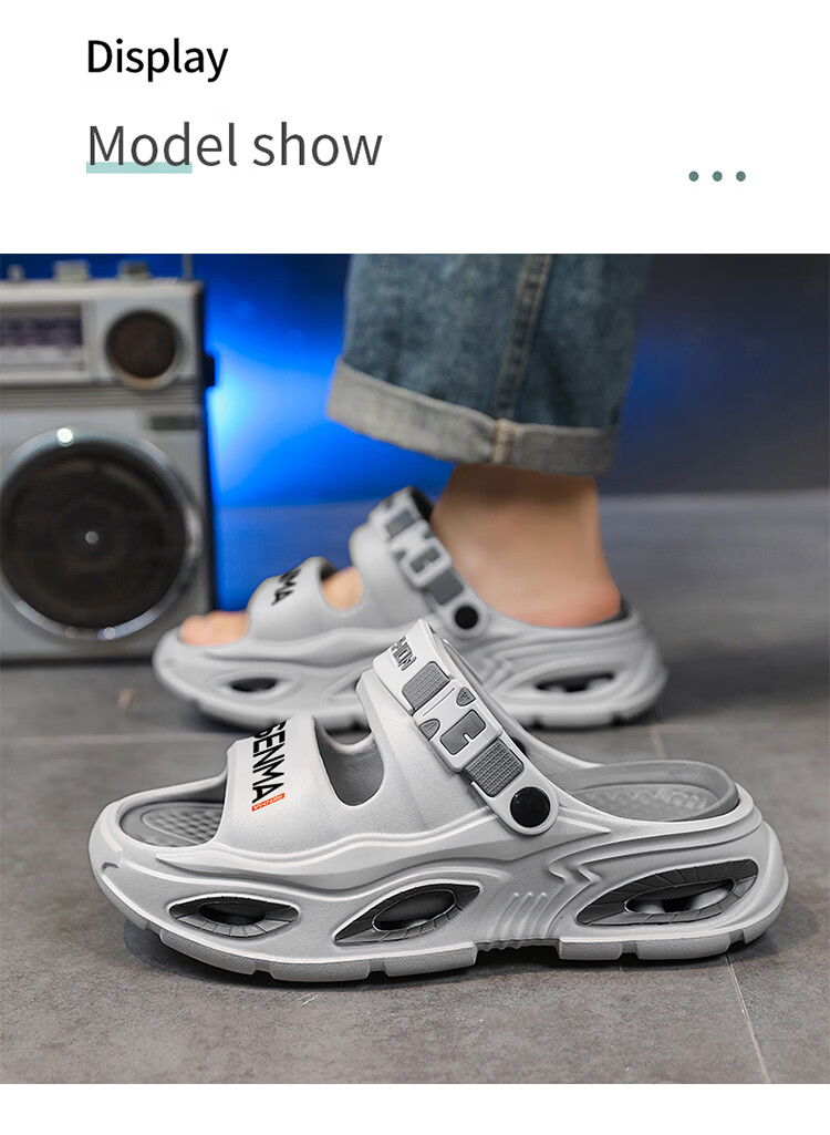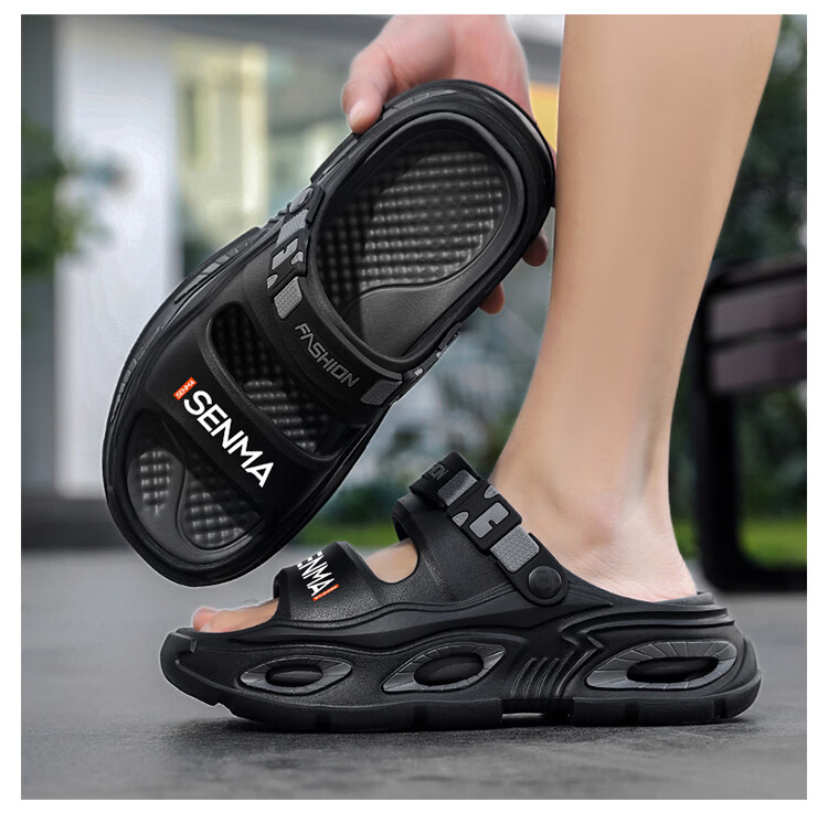 森馬拖鞋男士2026新款外穿踩屎感厚底防滑运动凉拖男款开车两用沙滩鞋 黑灰【基础款】 38-39 【现货秒发】