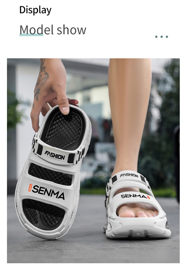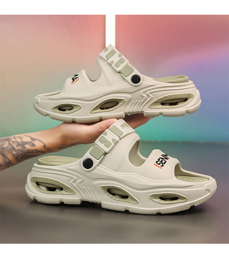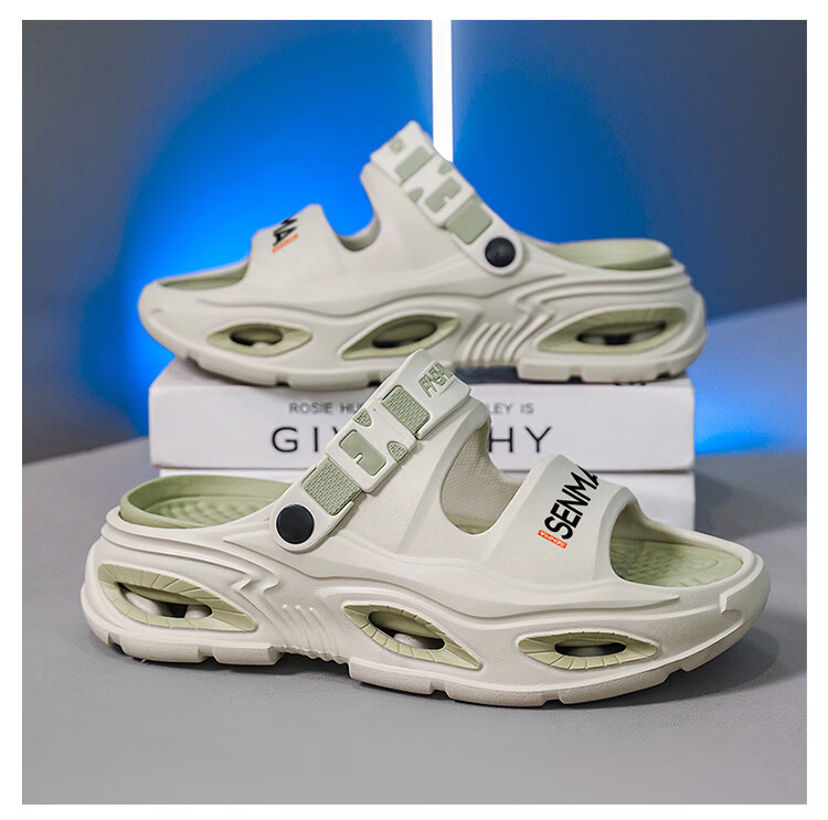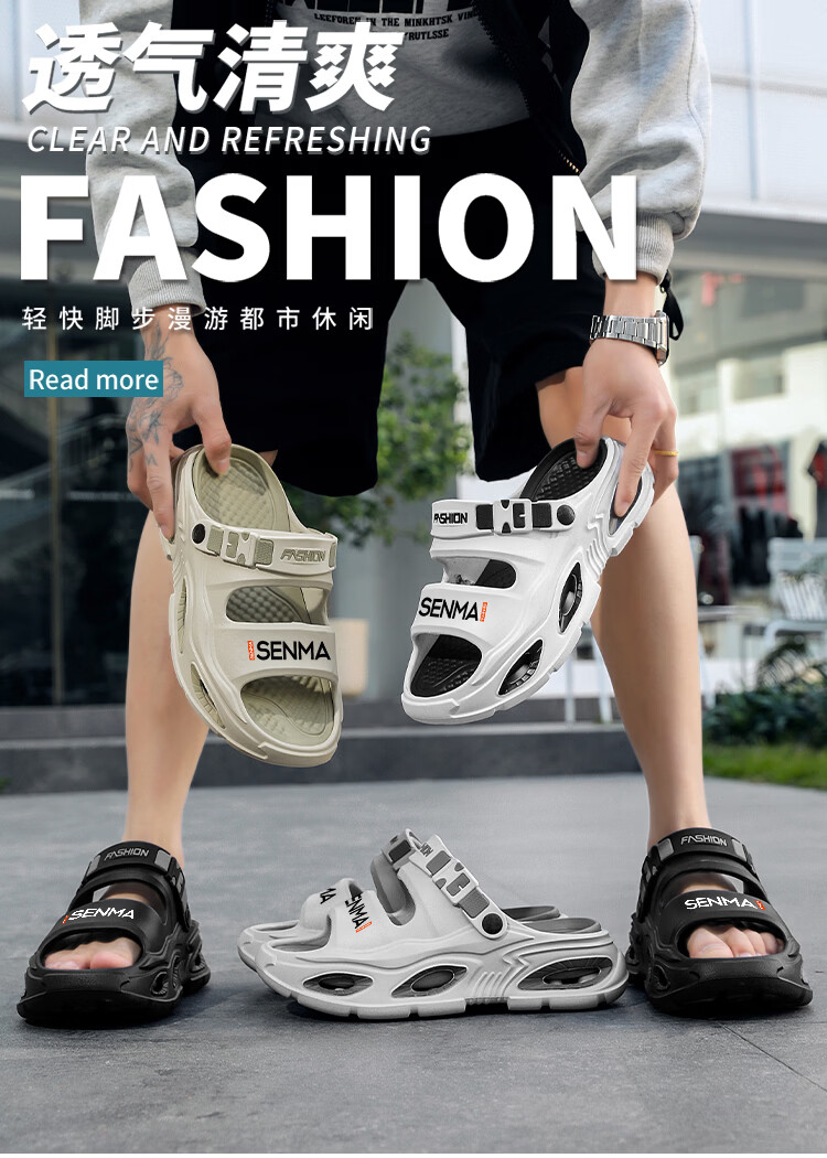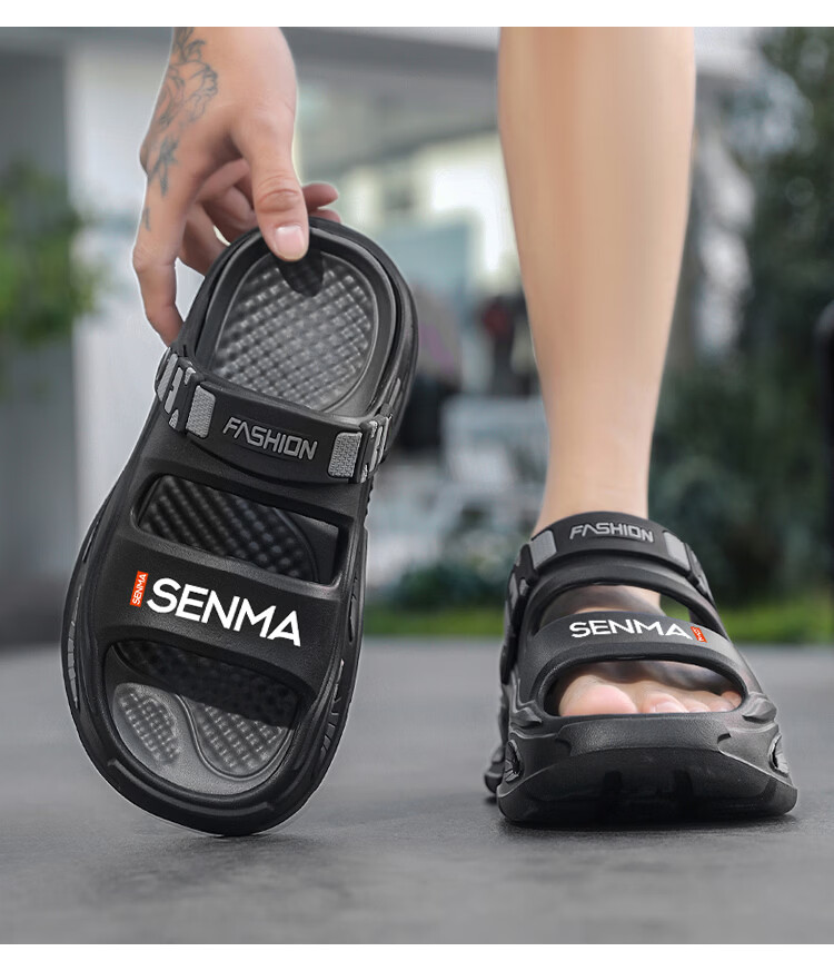 森馬拖鞋男士2026新款外穿踩屎感厚底防滑运动凉拖男款开车两用沙滩鞋 黑灰【基础款】 38-39 【现货秒发】