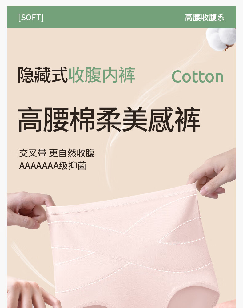 婧麒(JOYNCLEON)高腰收腹内裤女剖腹产后专用收肚子纯棉束腰提臀无痕XL Jnk153127