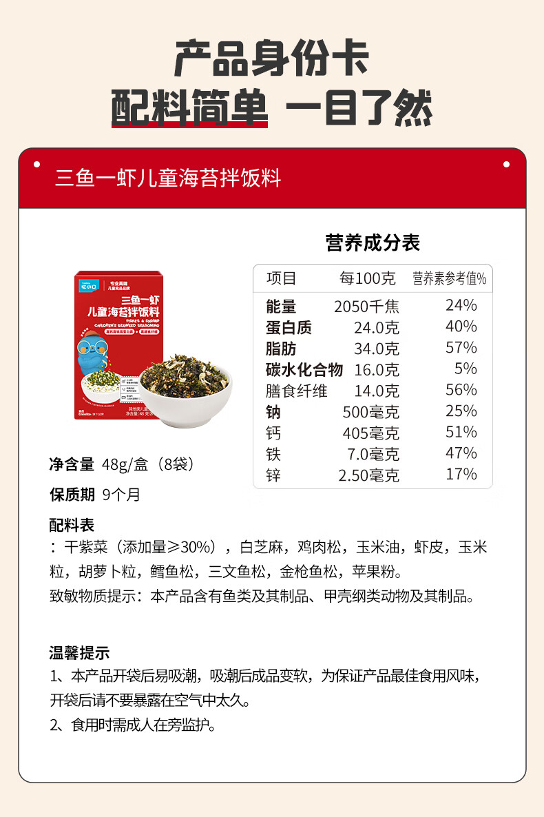 英氏忆小口海苔拌饭料48g芝麻海苔碎拌饭儿童标准自然鲜香高钙高蛋白