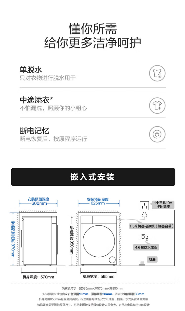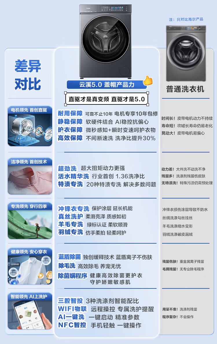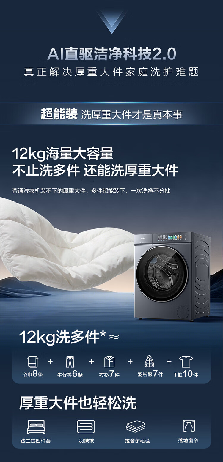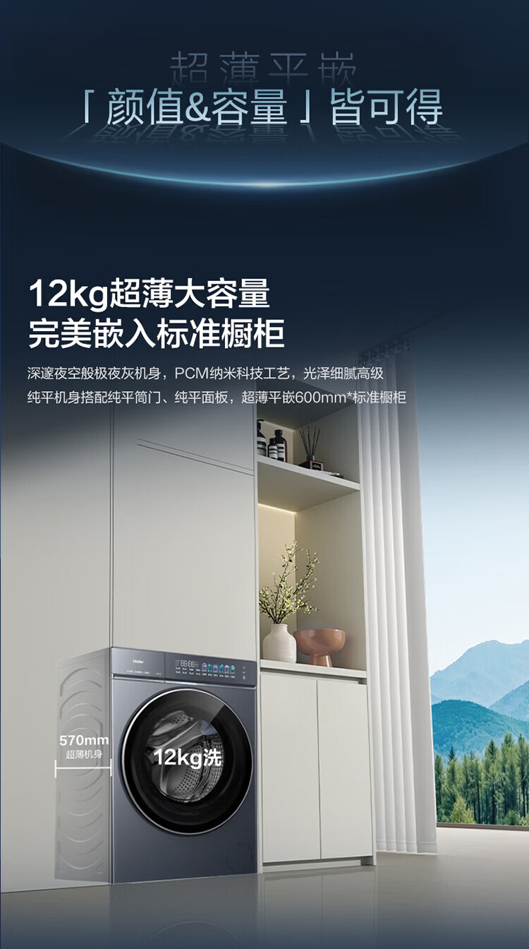 海尔(Haier)云溪5.0 滚筒洗衣机全自动单洗家用 10公斤/12公斤大容量超薄 行业首发 直驱 一级能效 王炸新品| 单洗 10公斤7AD1U1