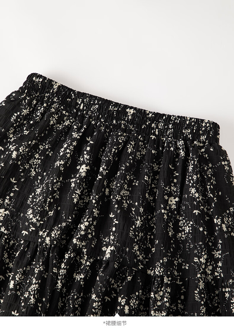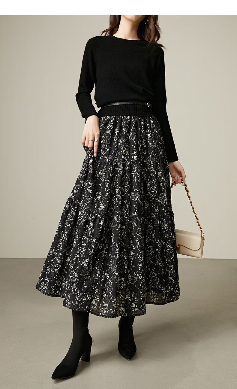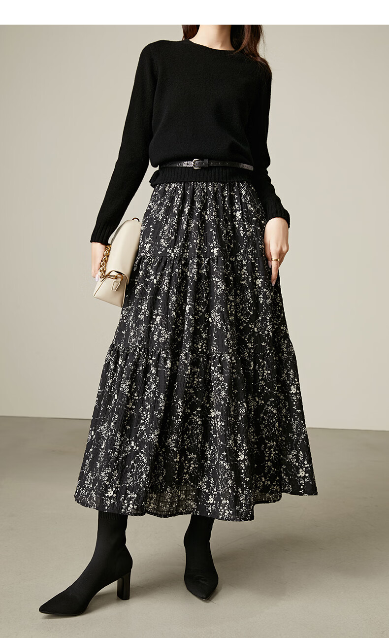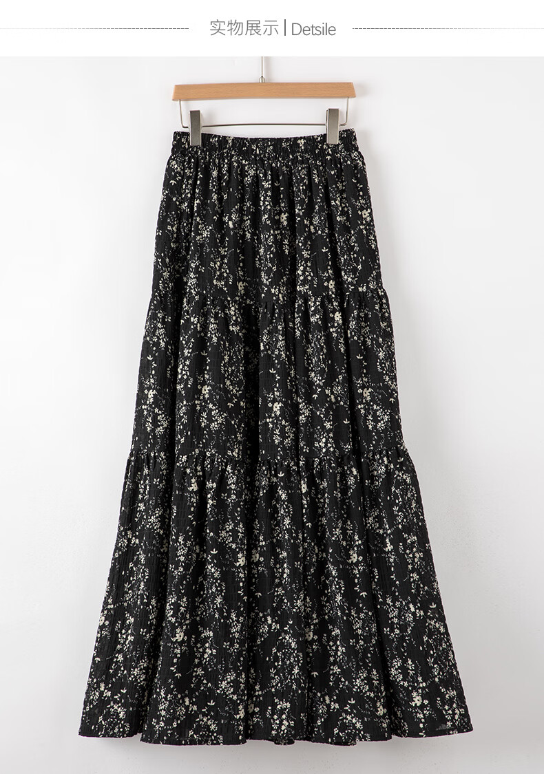 晚白【断码清仓】设计感洋气碎花长裙2026春款通勤百搭显瘦半身裙 黑色 S (150)