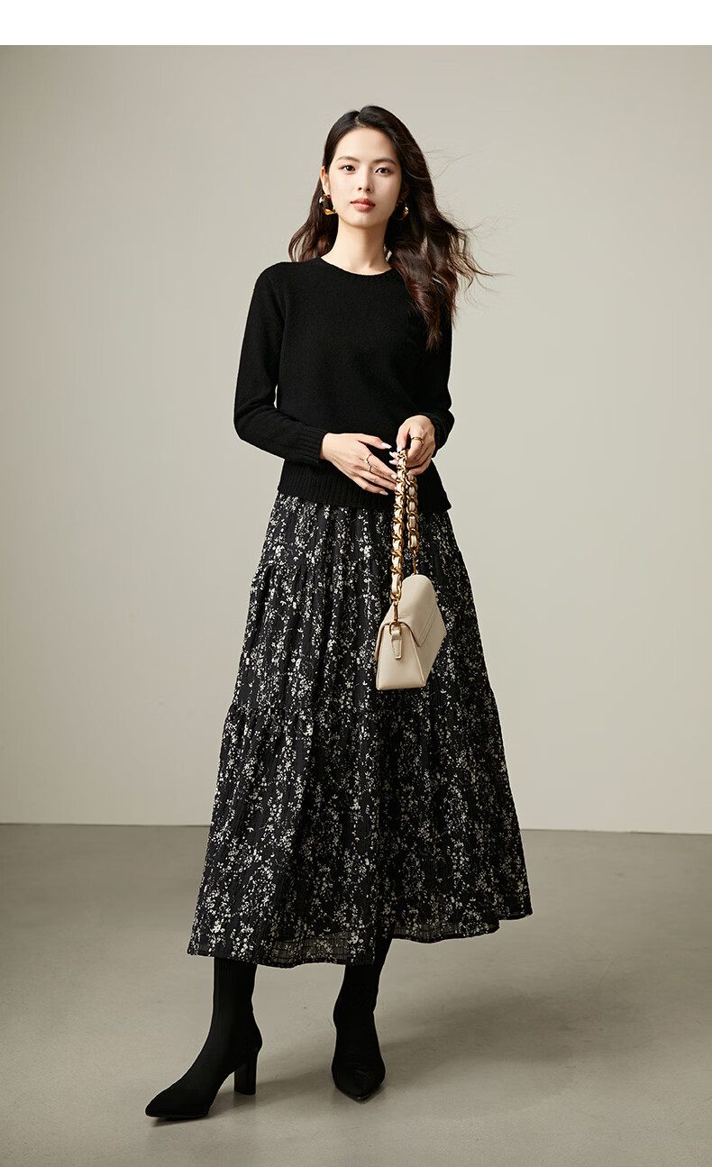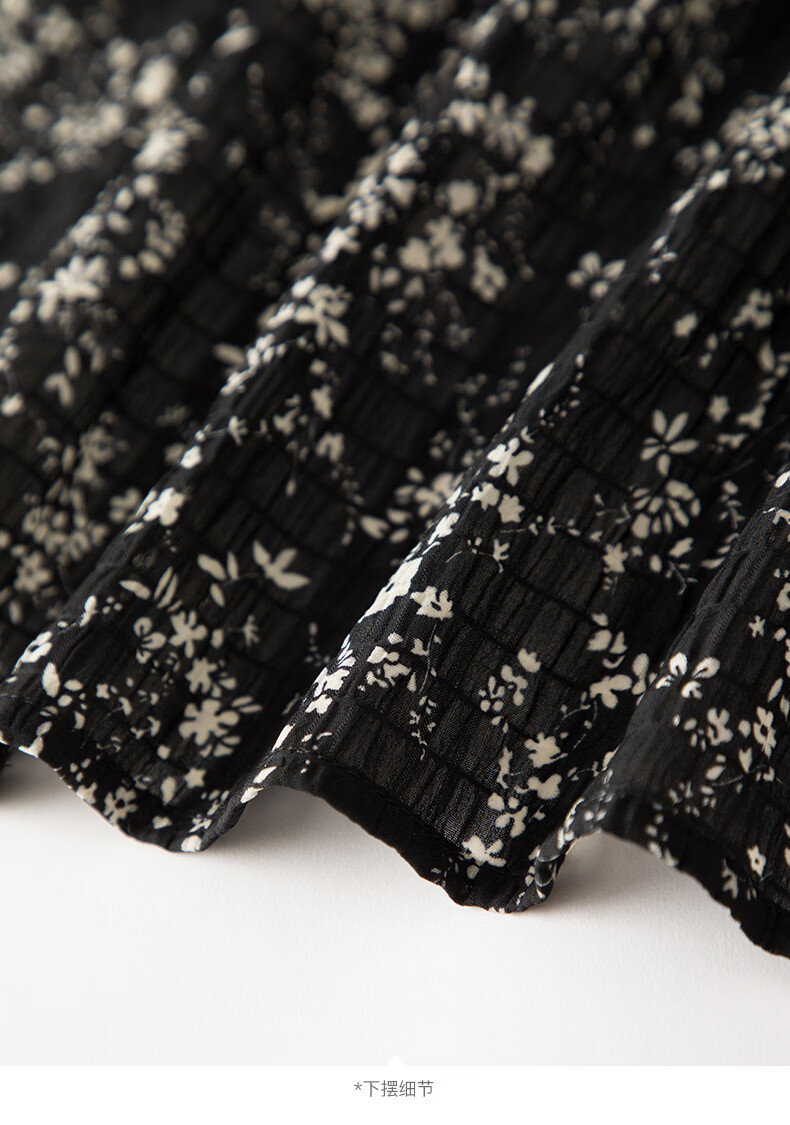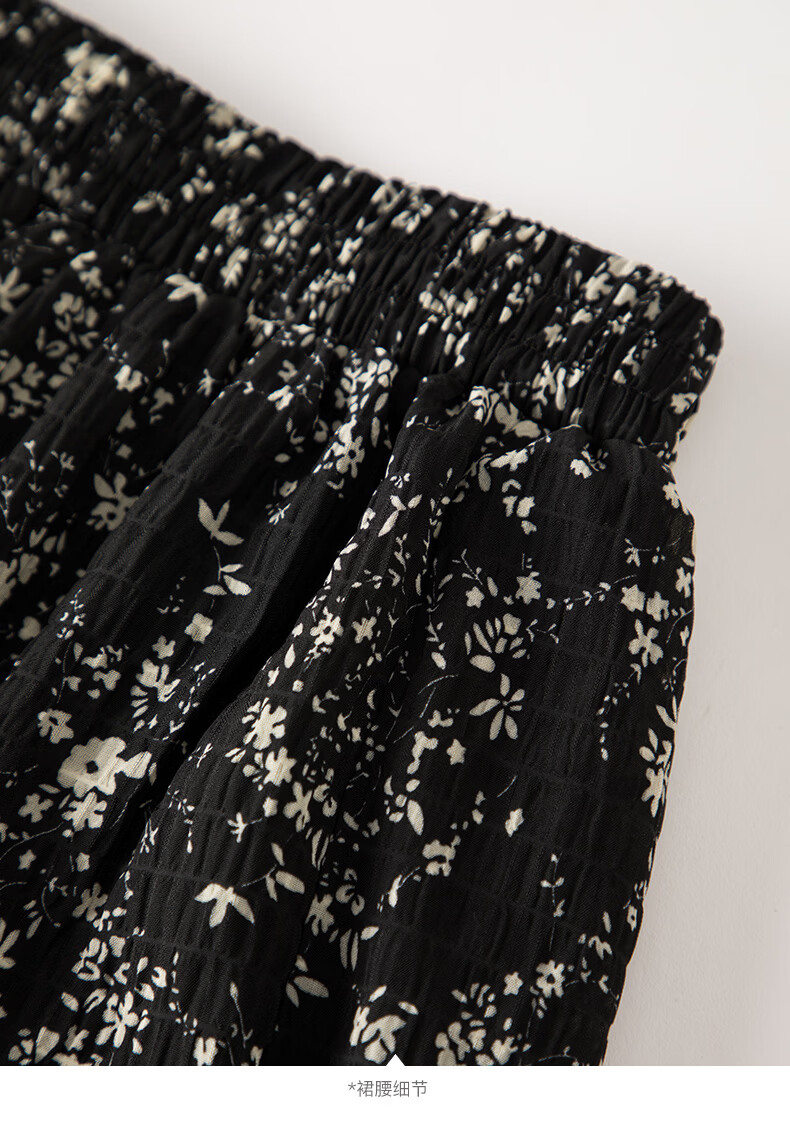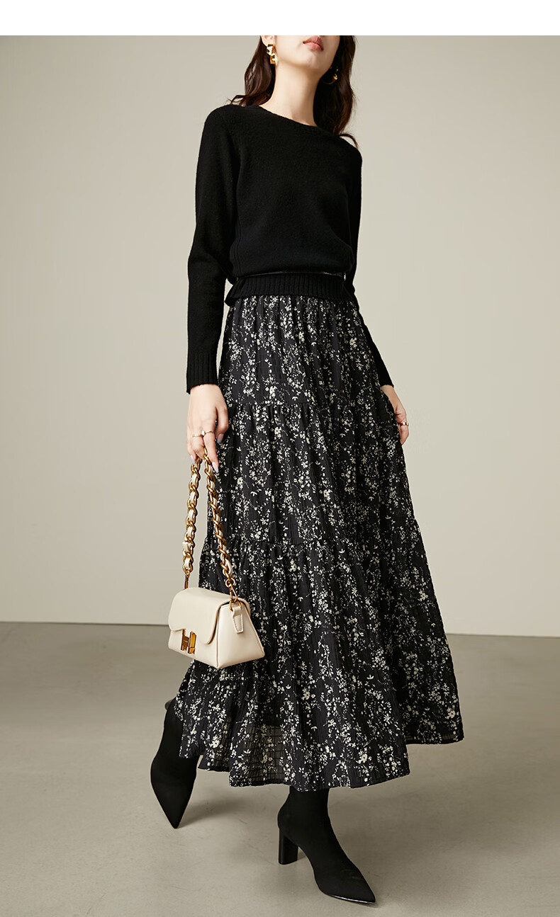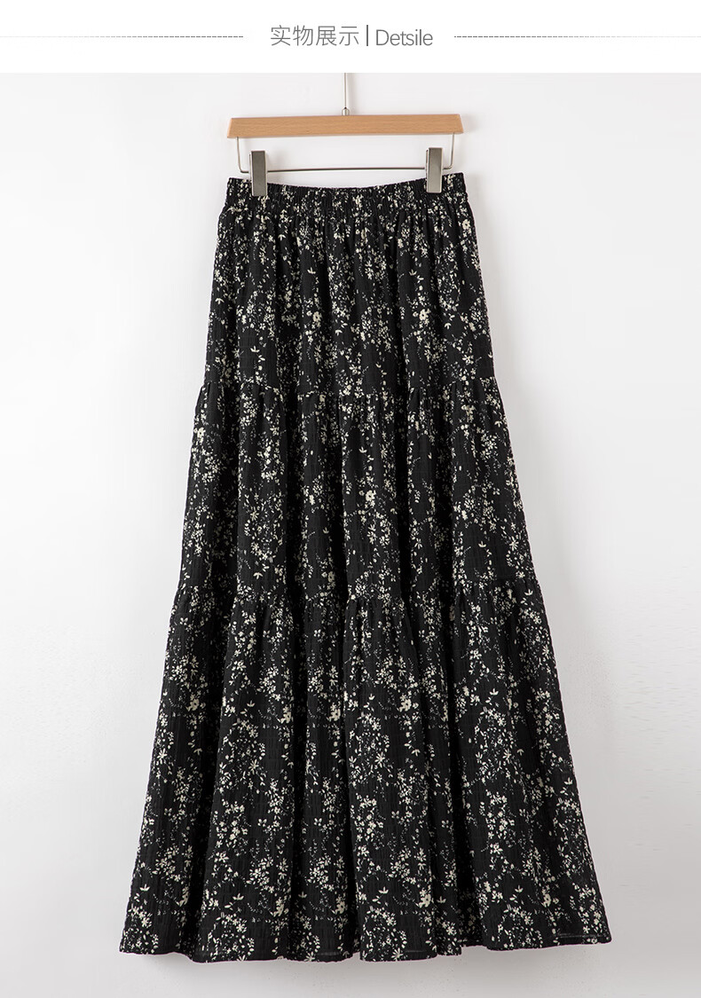 晚白【断码清仓】设计感洋气碎花长裙2026春款通勤百搭显瘦半身裙 黑色 S (150)