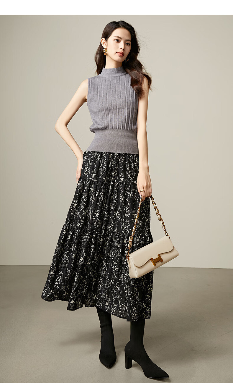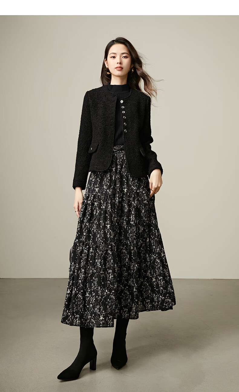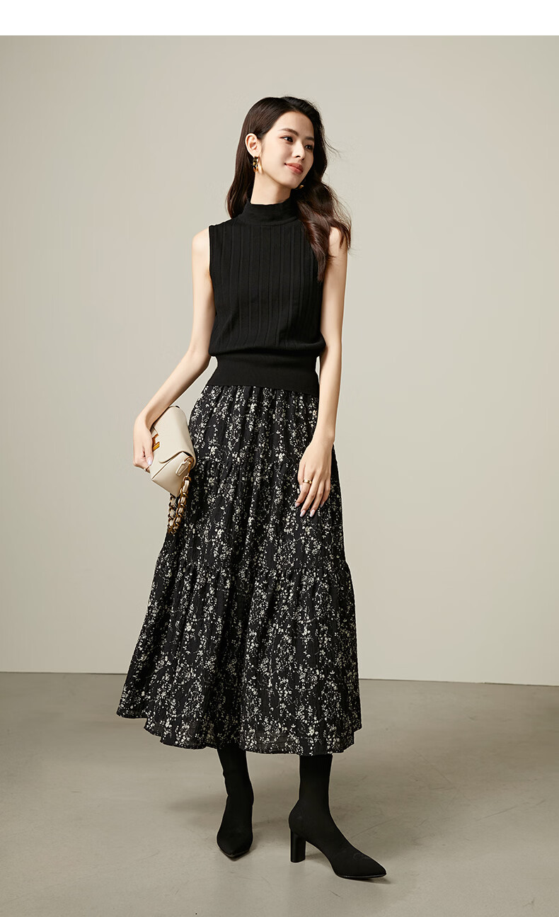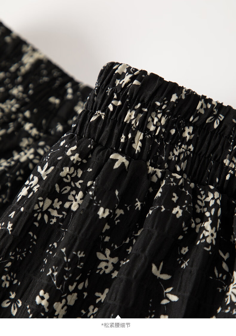 晚白【断码清仓】设计感洋气碎花长裙2026春款通勤百搭显瘦半身裙 黑色 S (150)