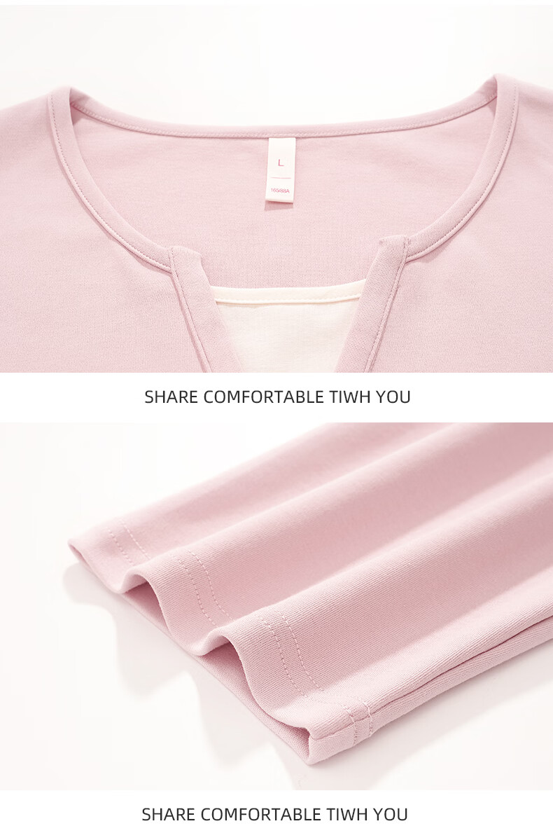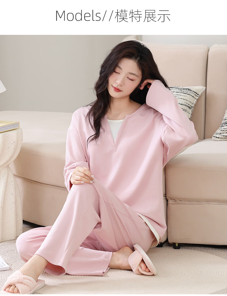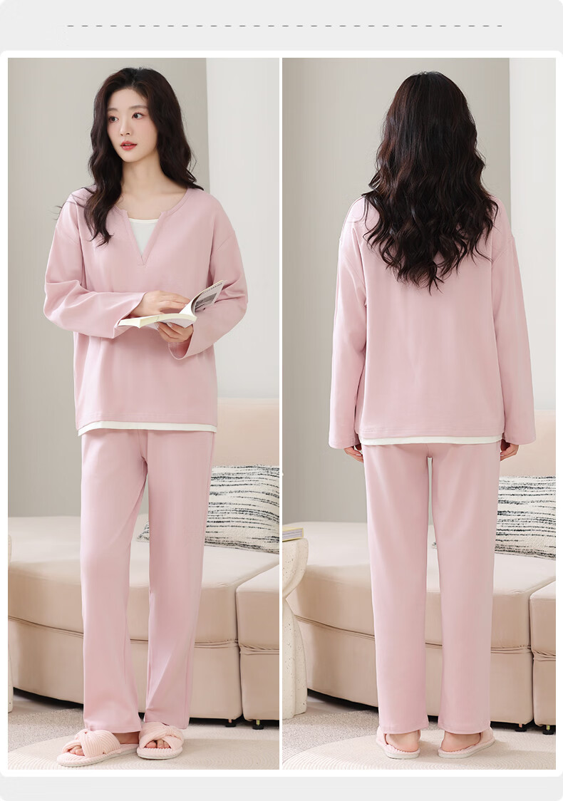 叶盼(yepan)【柔软】莱卡纯棉睡衣女士春秋季假两件宽松大码高级感家居服套装 7604-柔粉 M (160) :建议80-100斤穿着