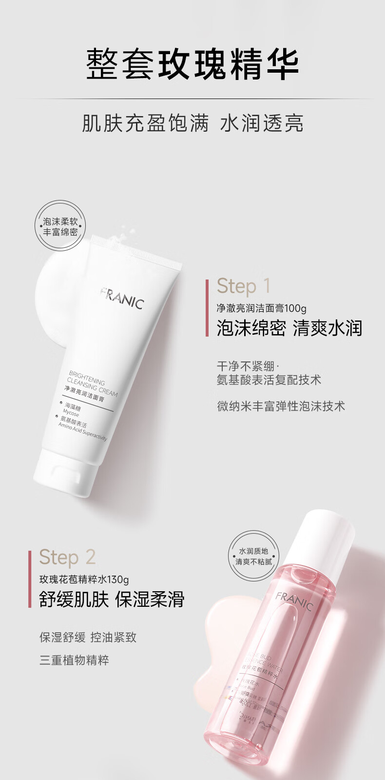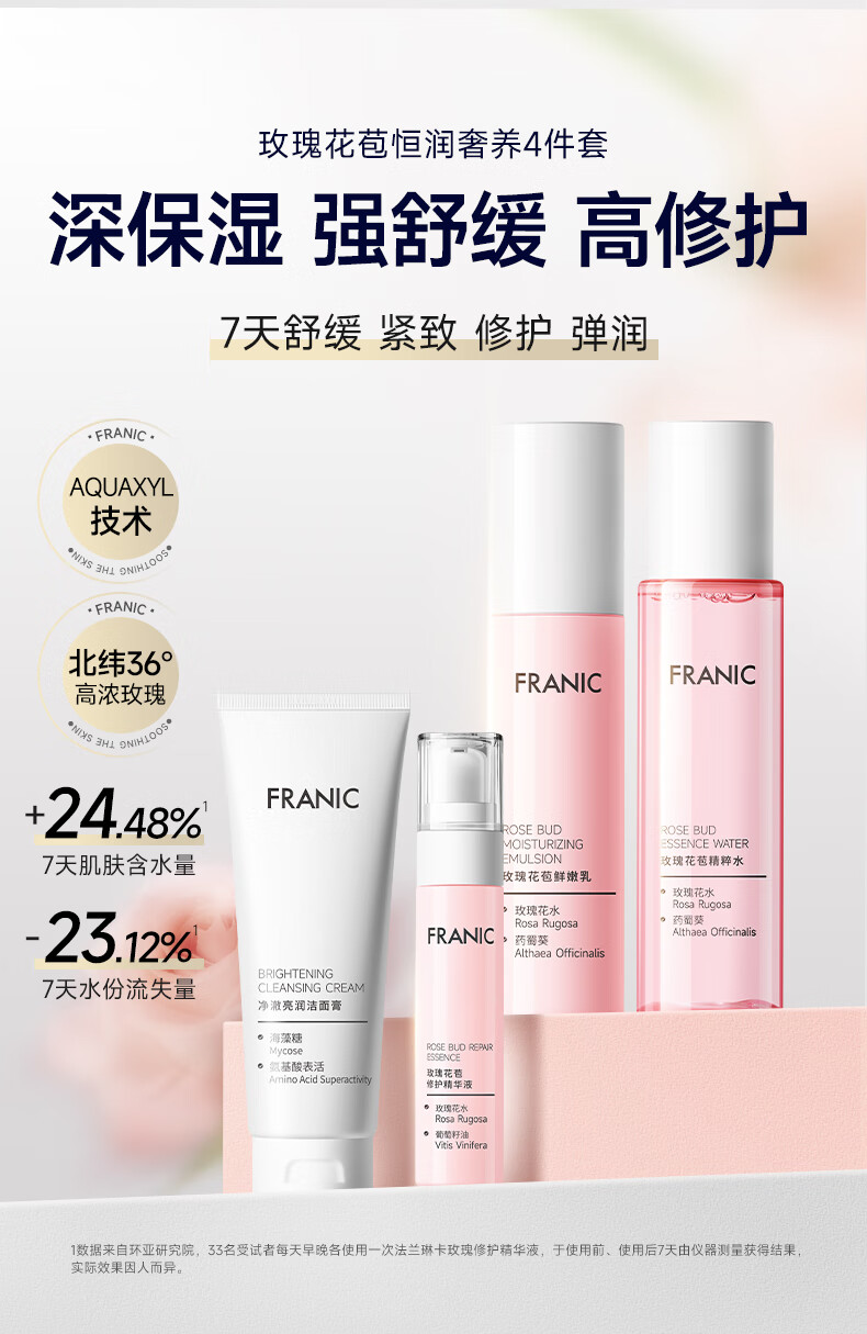 法兰琳卡护肤品套装礼盒玫瑰花苞恒润补水保湿紧致洁水乳套生日礼物女士