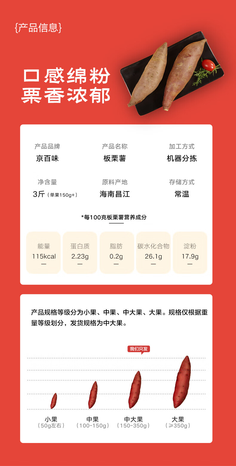 京鲜生海南板栗薯3斤100~300克/条 沙地种植黄心红薯源头直发包邮