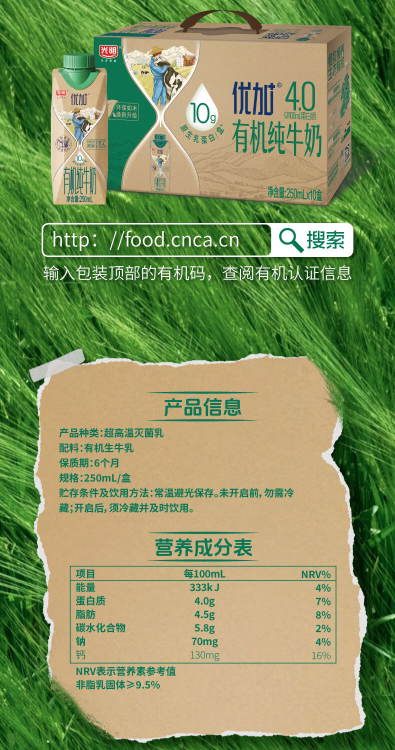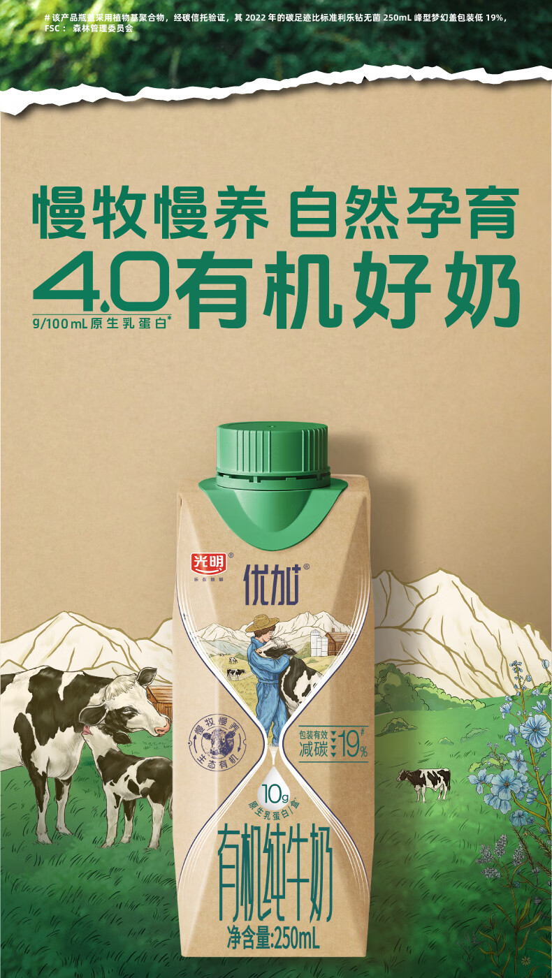 光明【新鲜日期】优加有机纯牛奶250ml*10盒4.0g原生乳蛋白梦幻盖礼盒