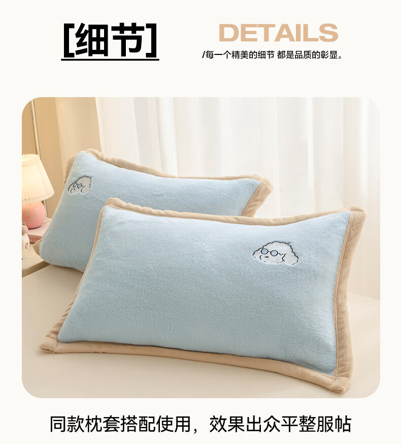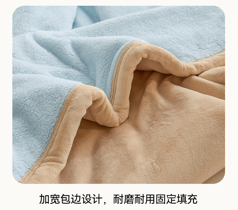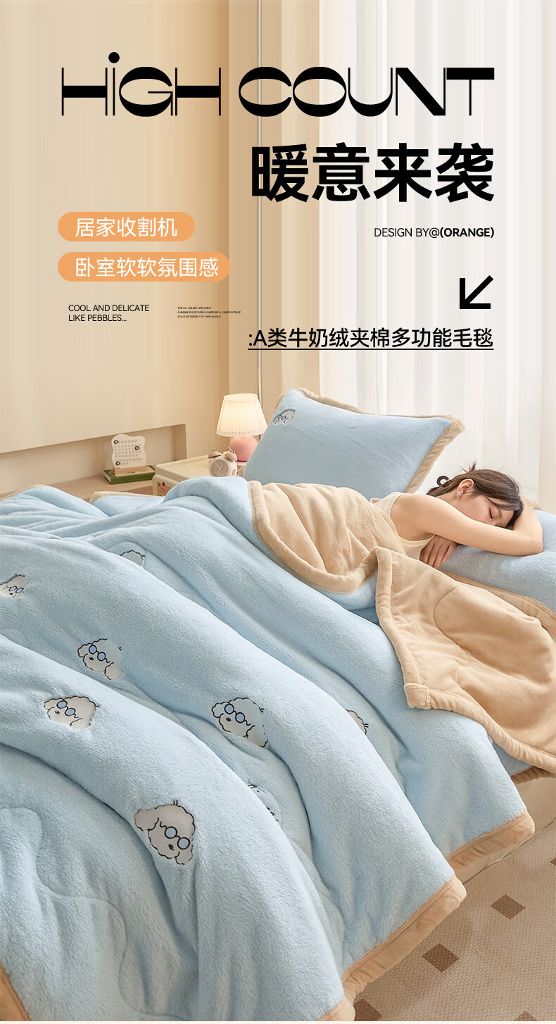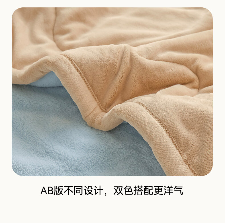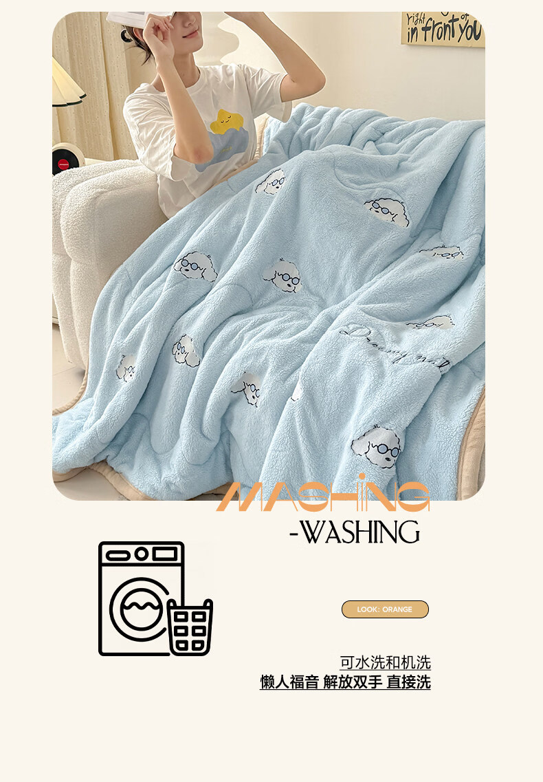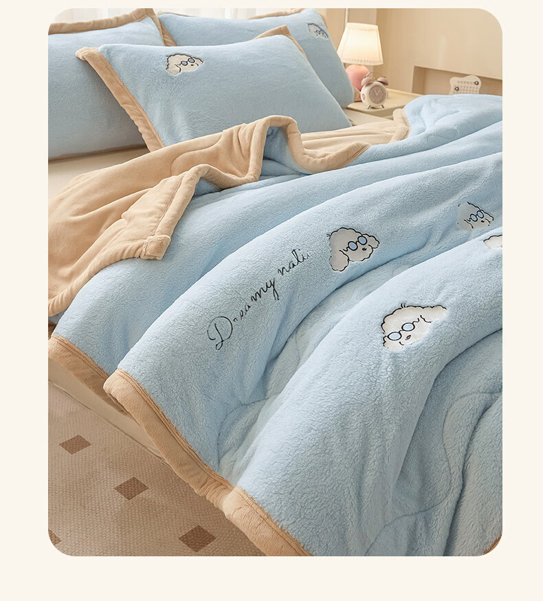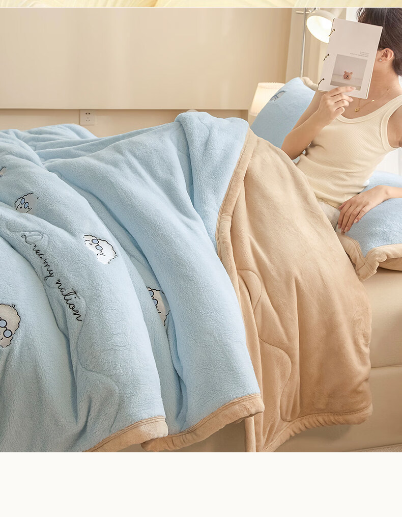 阿尔皮纳袋鼠牛奶绒毛毯冬季加厚加绒拉舍尔珊瑚绒办公室单人午睡空调小毯子被 眼镜狗-天空蓝+香槟【加厚牛奶绒毯可铺可盖】 120*200cm【儿童毯】