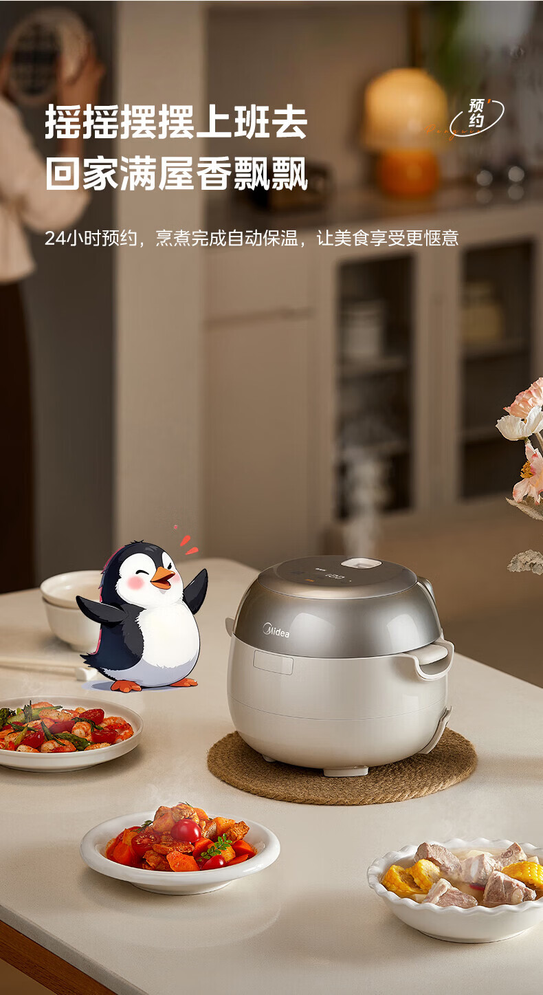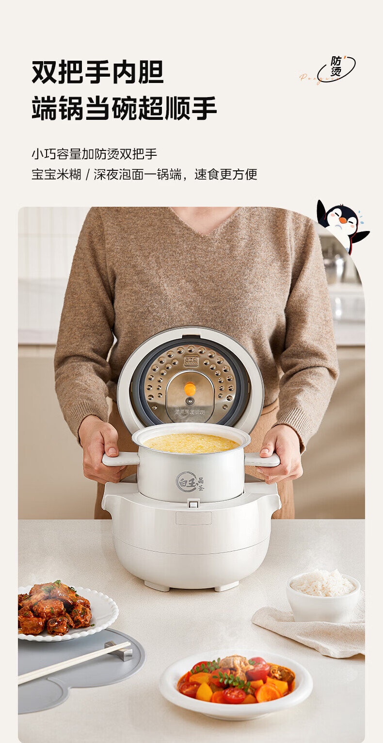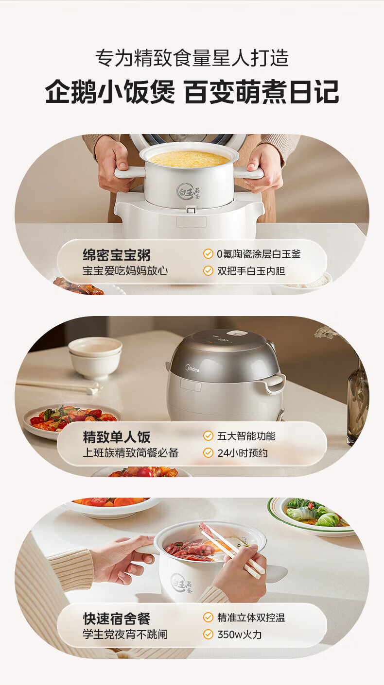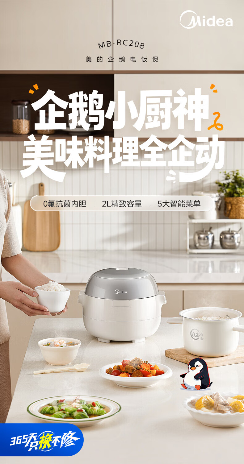 美的(Midea)小企鹅电饭煲小型家用1-2人0氟抗菌内胆 2L精致容量 多功能小功率智能保温 宝宝粥香甜饭蒸炖 0氟抗菌内胆 精致容量 2L
