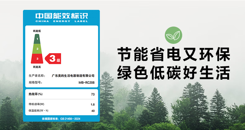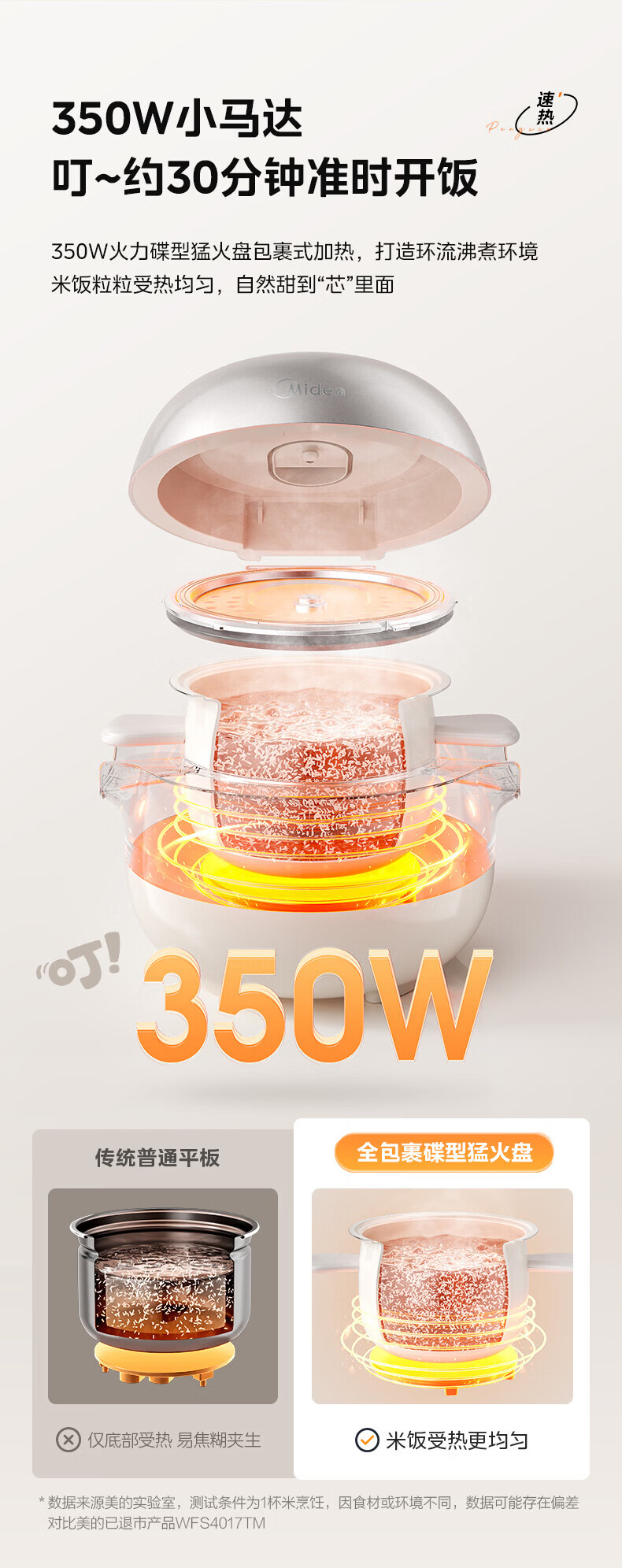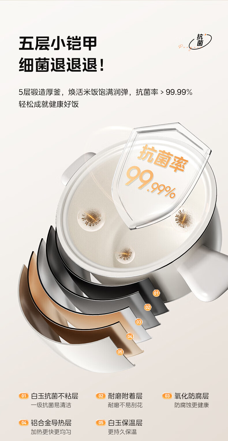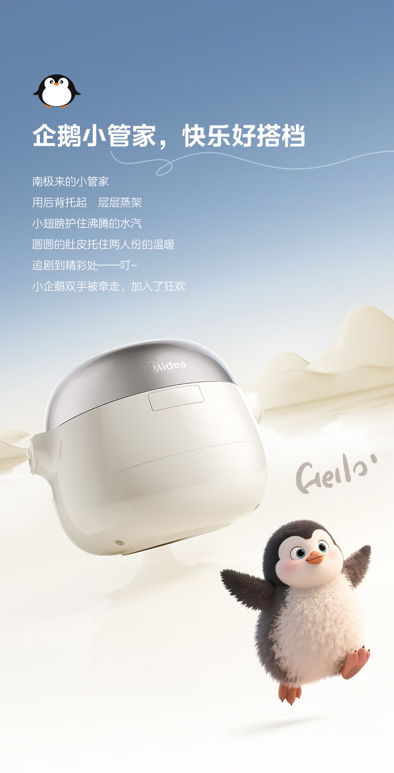 美的(Midea)小企鹅电饭煲小型家用1-2人0氟抗菌内胆 2L精致容量 多功能小功率智能保温 宝宝粥香甜饭蒸炖 0氟抗菌内胆 精致容量 2L