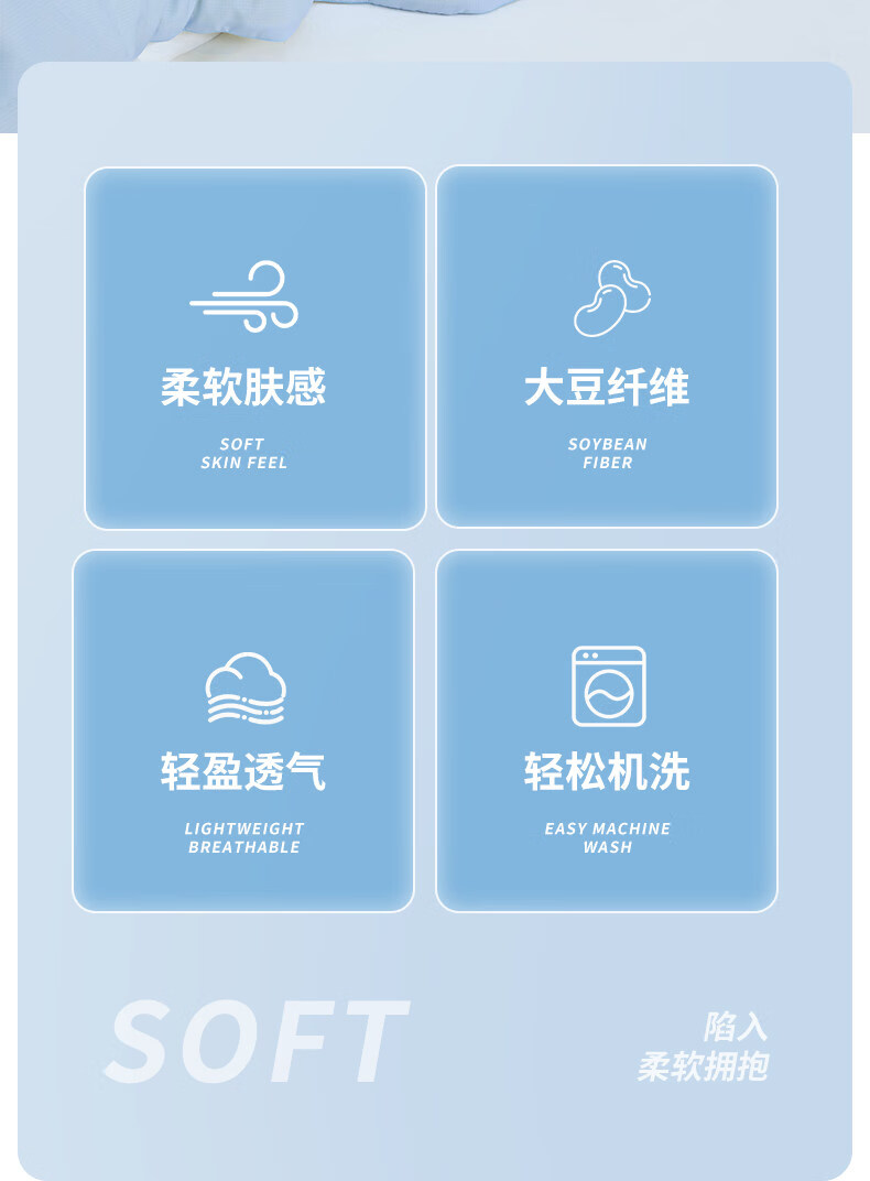 阿尔皮纳袋鼠大豆凉感夏被夏凉被子夏季单双人空调被薄被子被芯凉被可机水洗 天蓝【双面凉感A类+可机无忧】 尺寸:150*200cm单人被