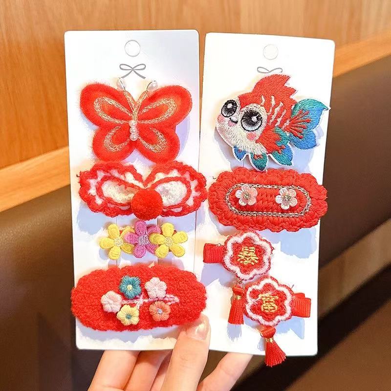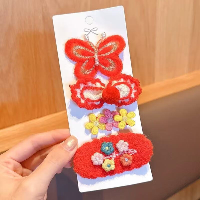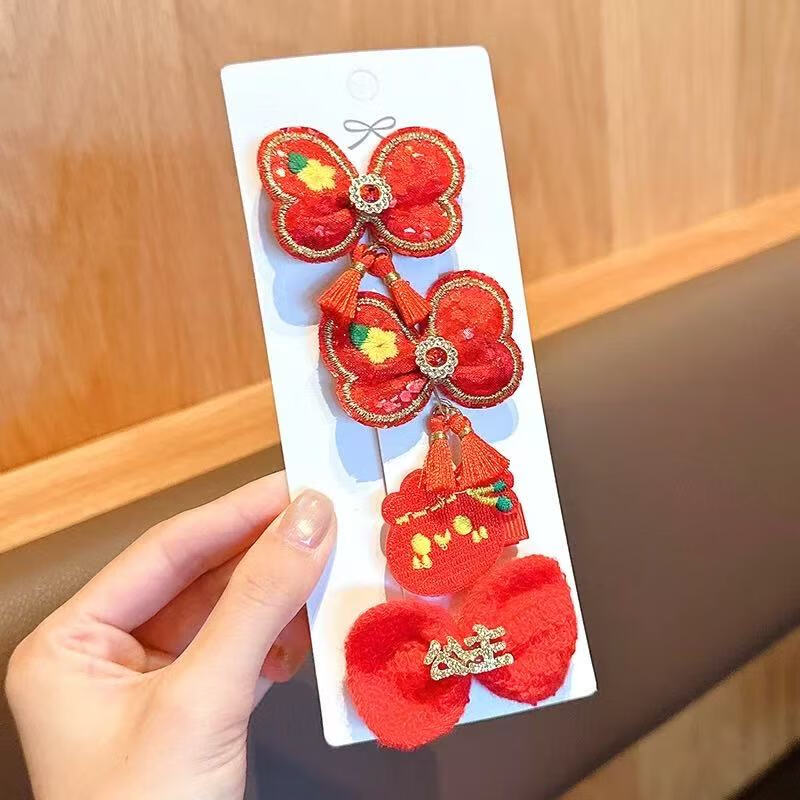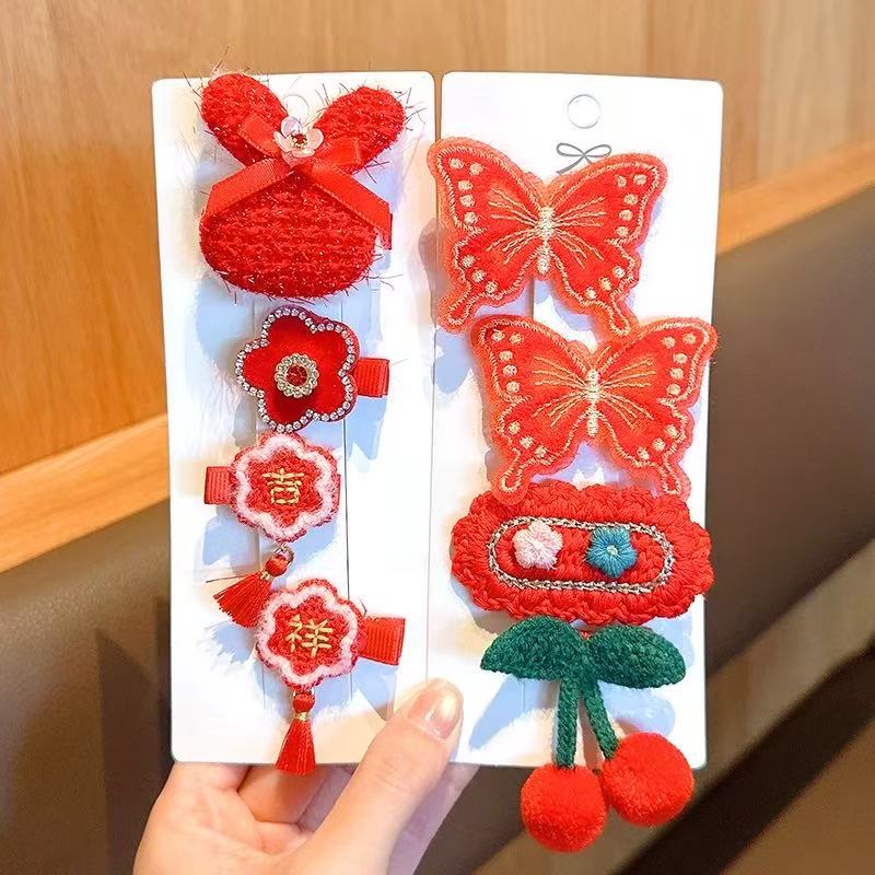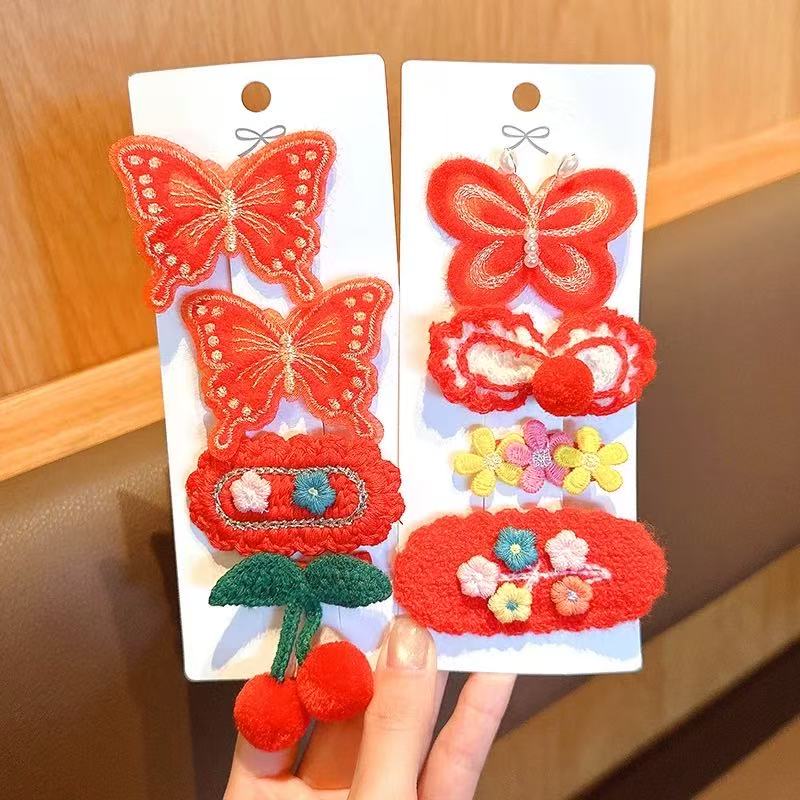 【精选直发】儿童发夹2025年新款女童新年针织发卡中国风红色小女 03#蝴蝶樱桃