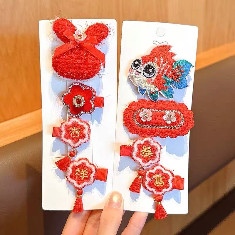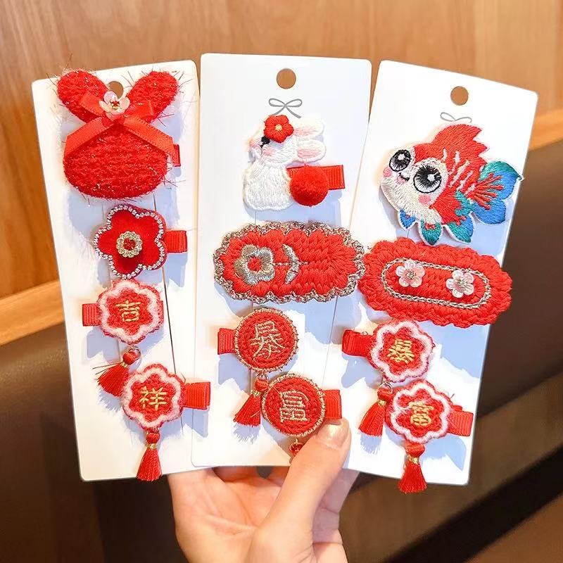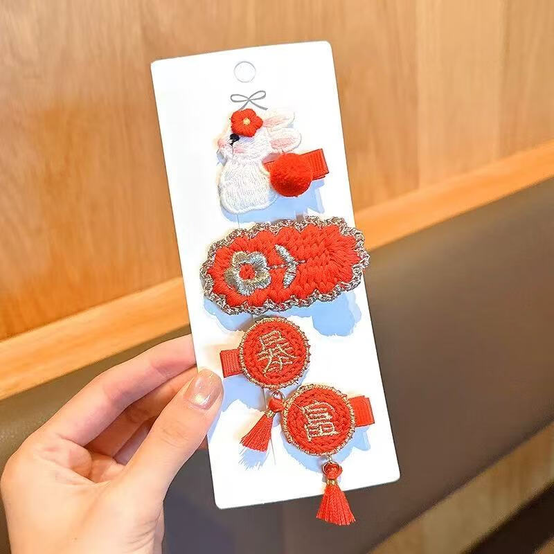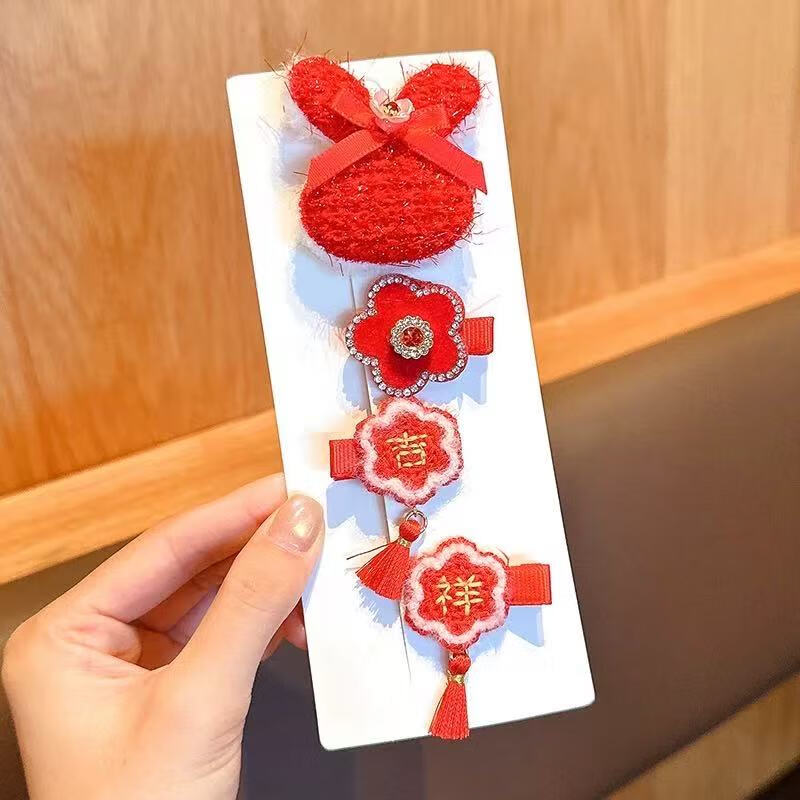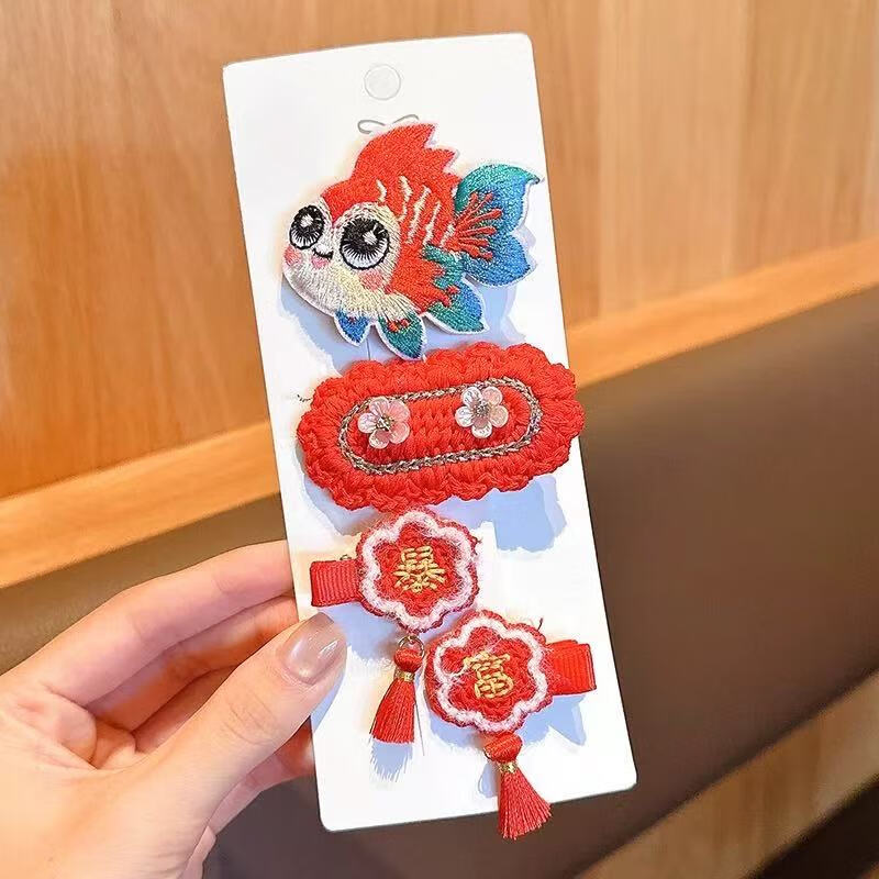 【精选直发】儿童发夹2025年新款女童新年针织发卡中国风红色小女 03#蝴蝶樱桃