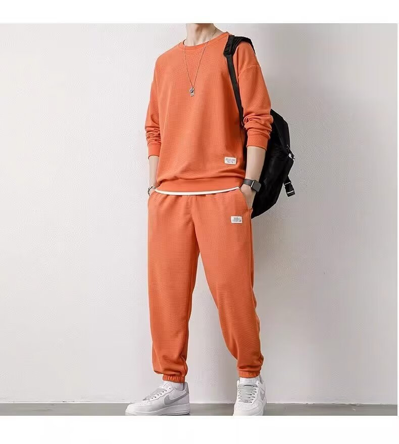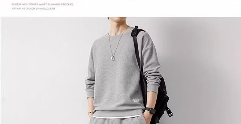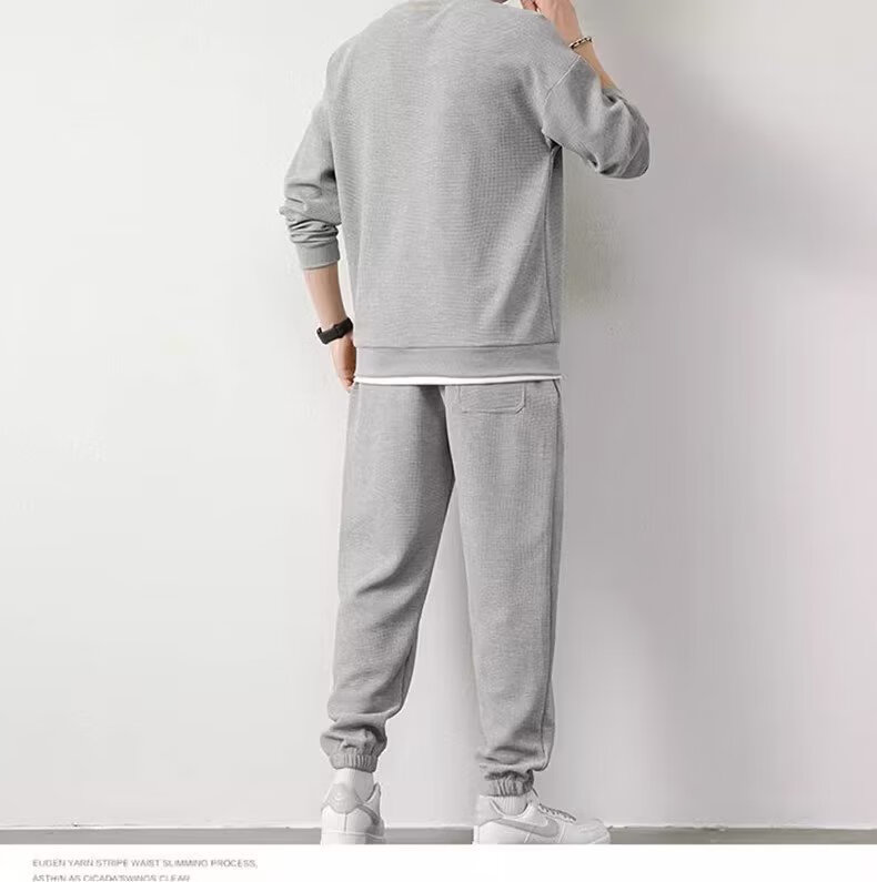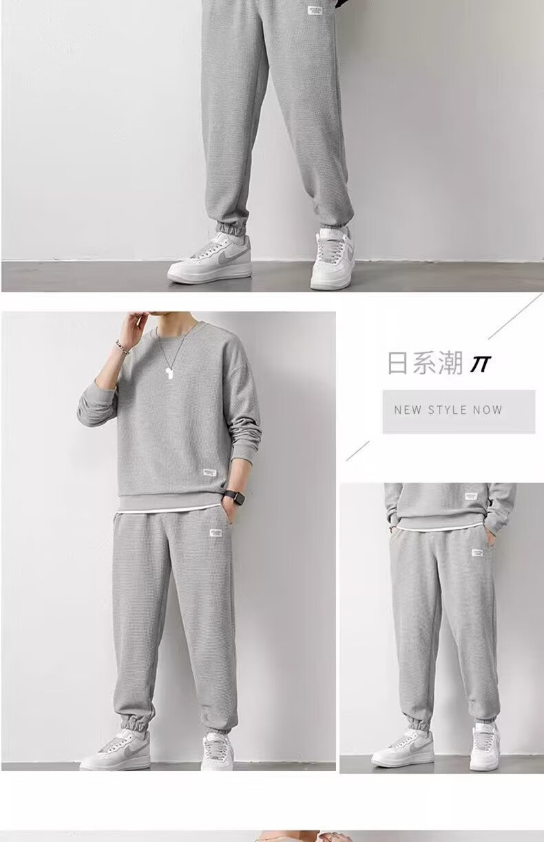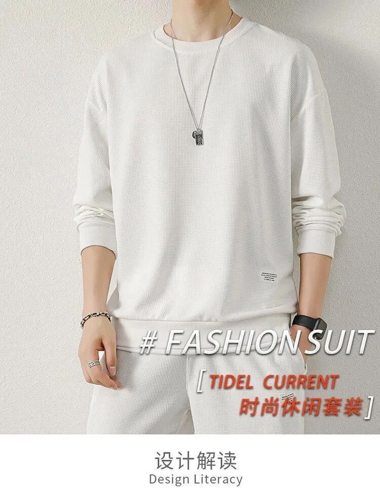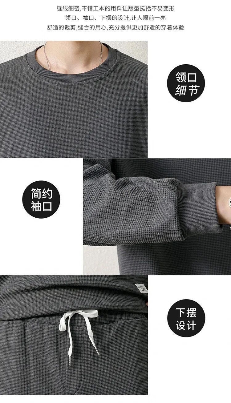 锐图森春秋季男士华夫格卫衣套装宽松休闲秋冬新款圆领男装长袖长裤套装 【套装】黑色 XL (建议110-130斤)