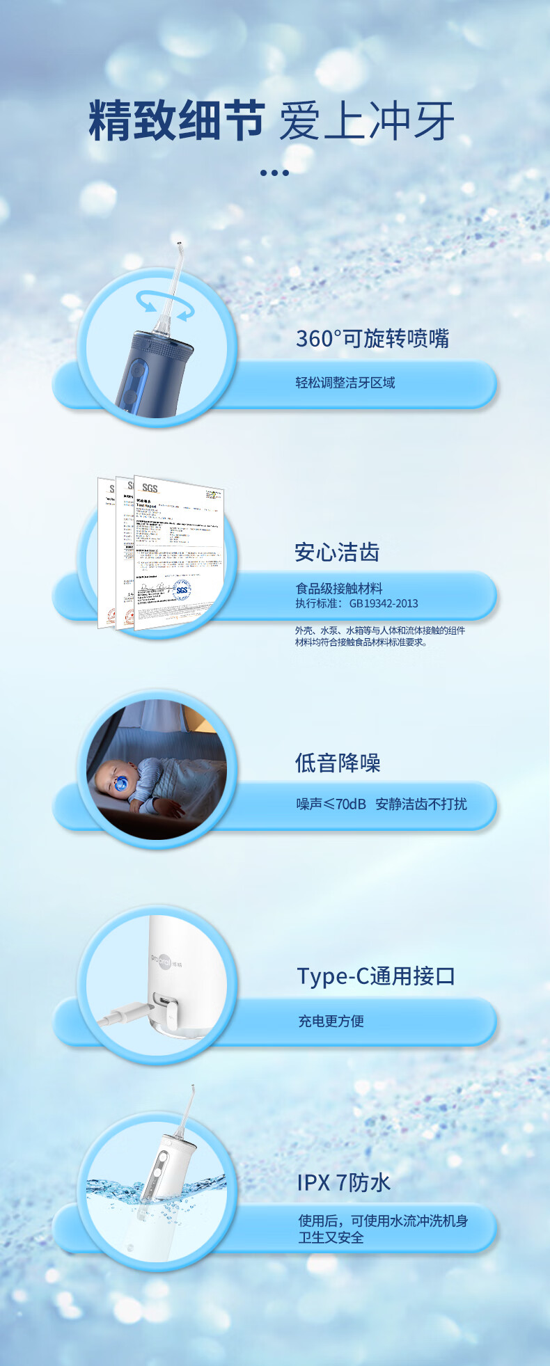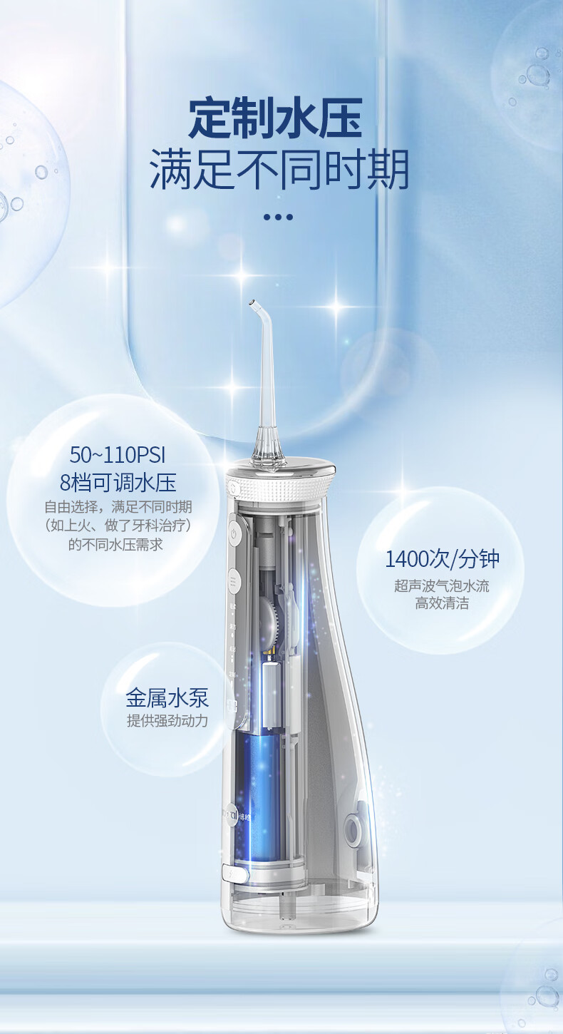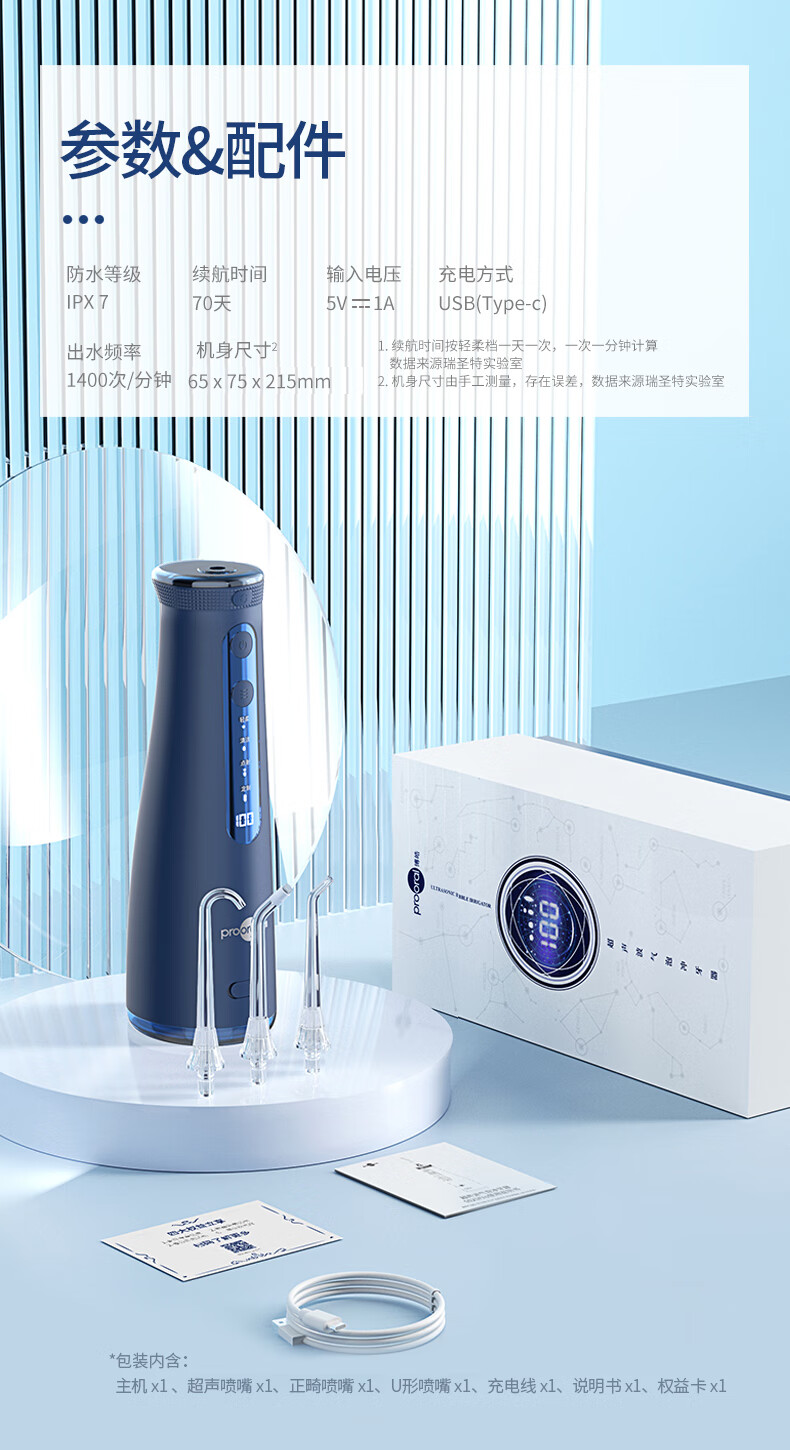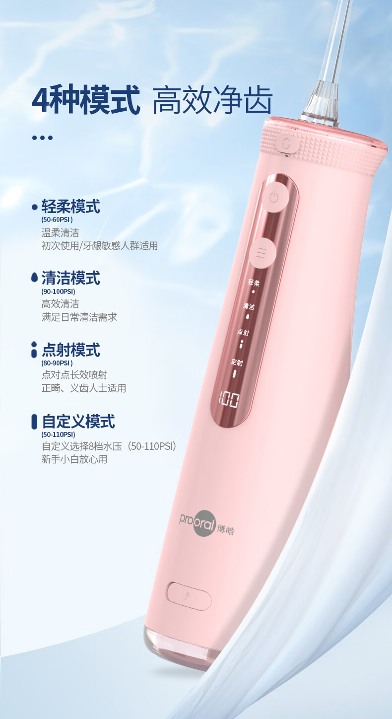 博皓(prooral)家用冲牙器电动洗牙器冲洗器水牙线洁牙器牙齿冲洗器牙结石去除器牙齿清洁正畸冲牙器便携5025Pro 瓷白