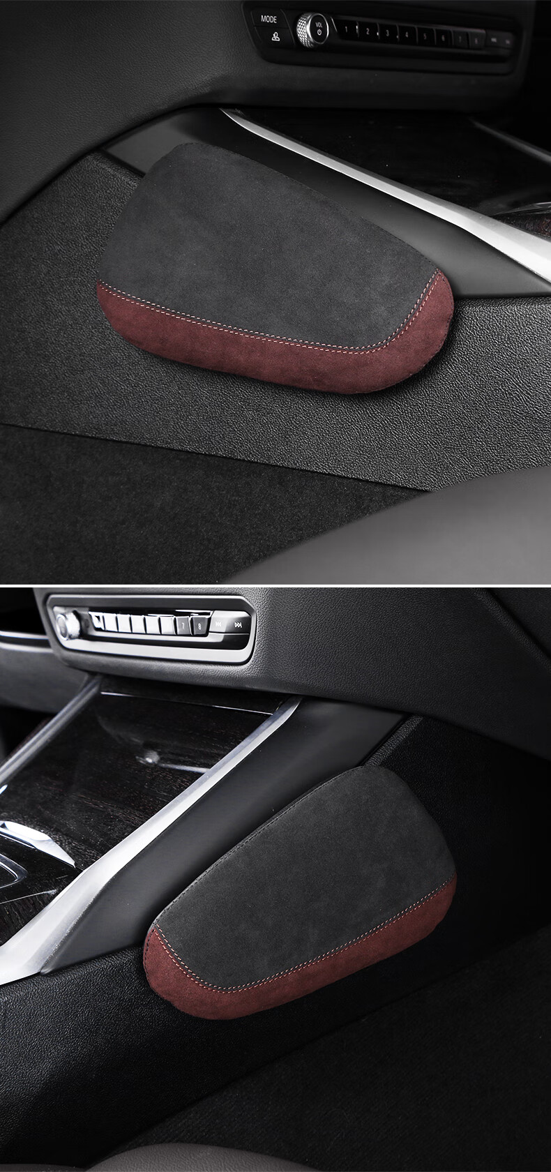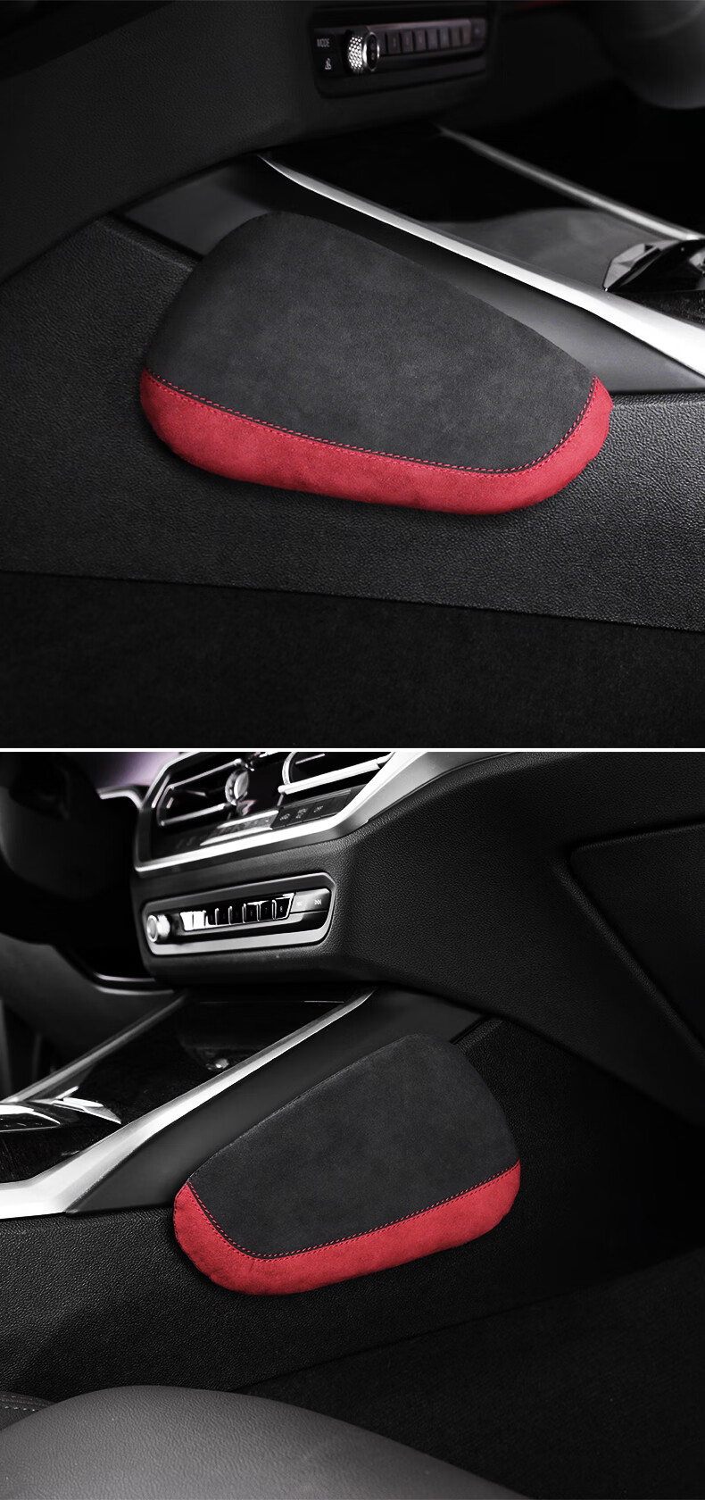 betterhumz开车必备汽车腿部靠垫长途主驾驶腿靠 Alcantara膝盖垫腿托垫用品 9002深灰+4996大红(主驾)