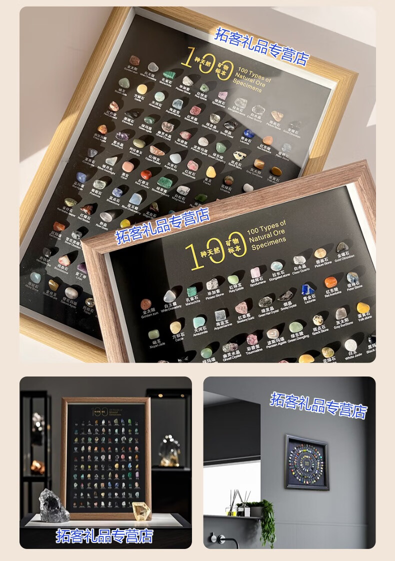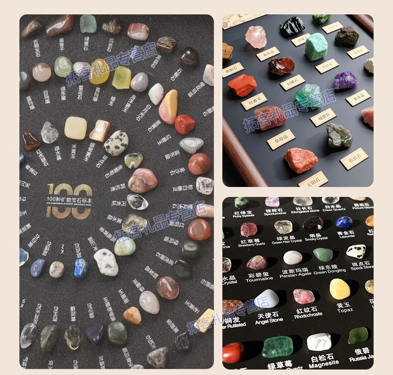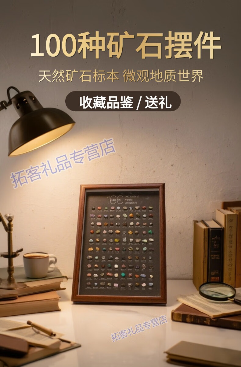 礼姿100种天然矿石标本 地质矿物石头水晶原石摆件送男生生日礼物女孩 100种矿石标本【黑底款】礼盒+礼袋