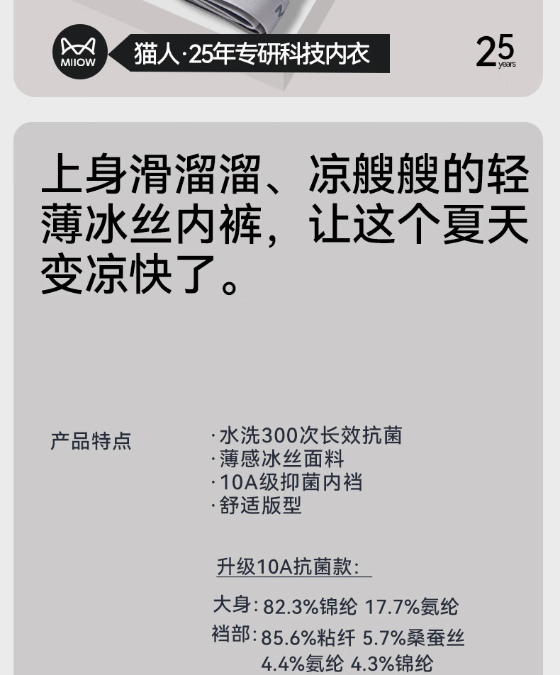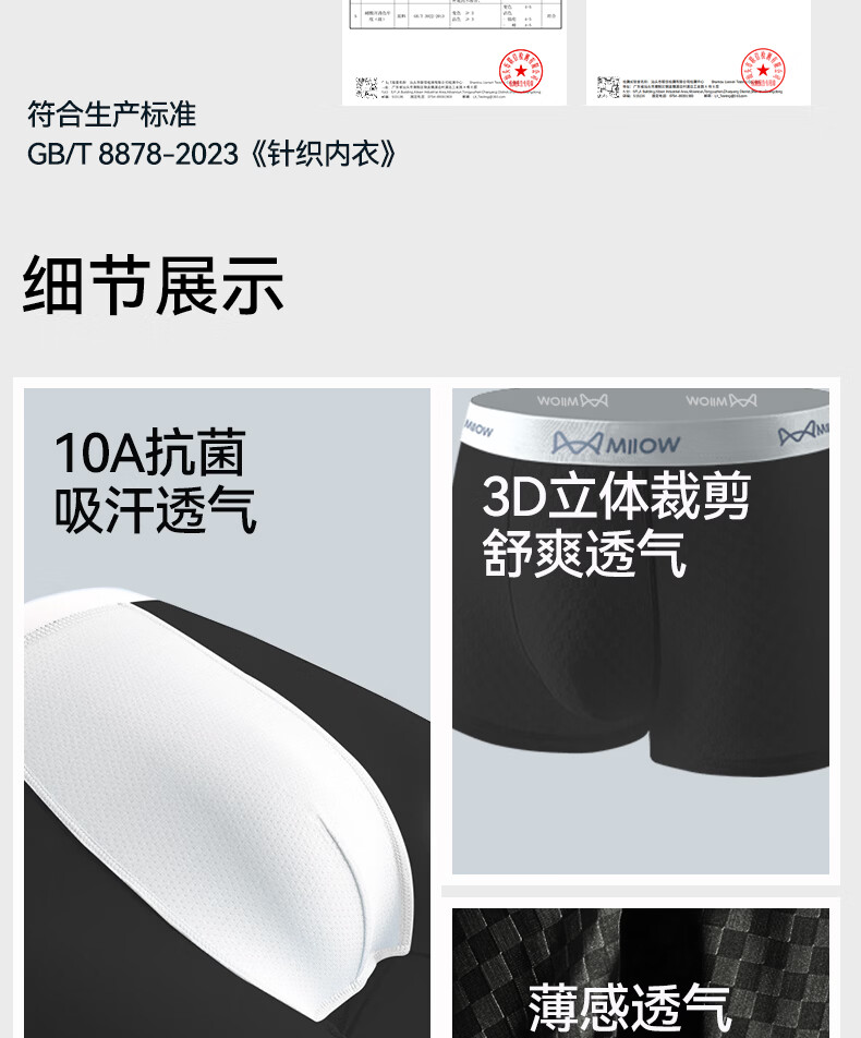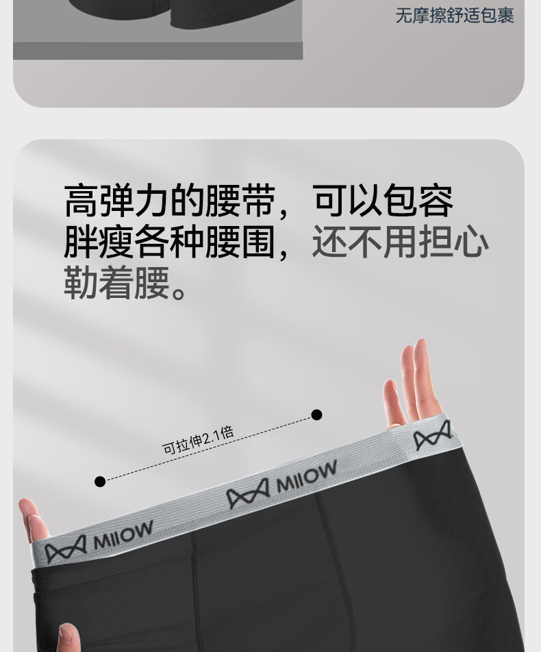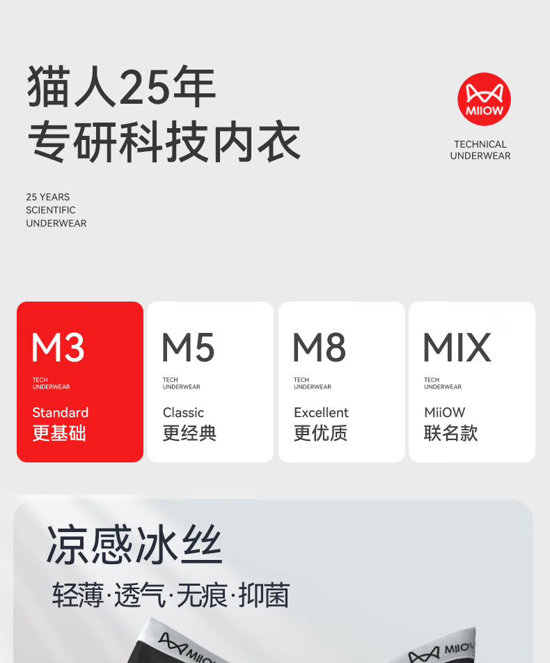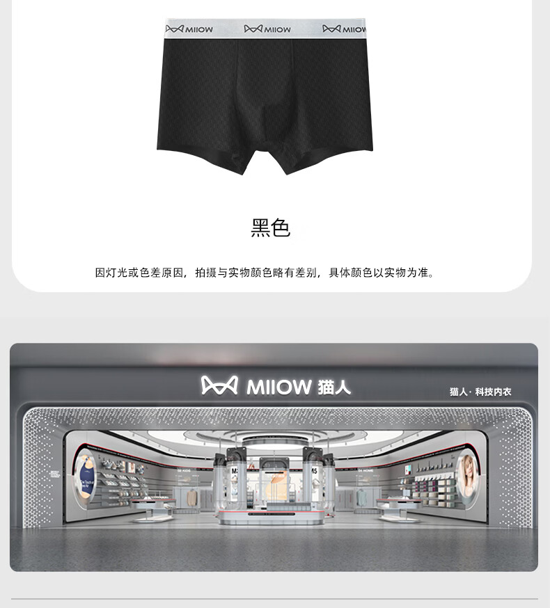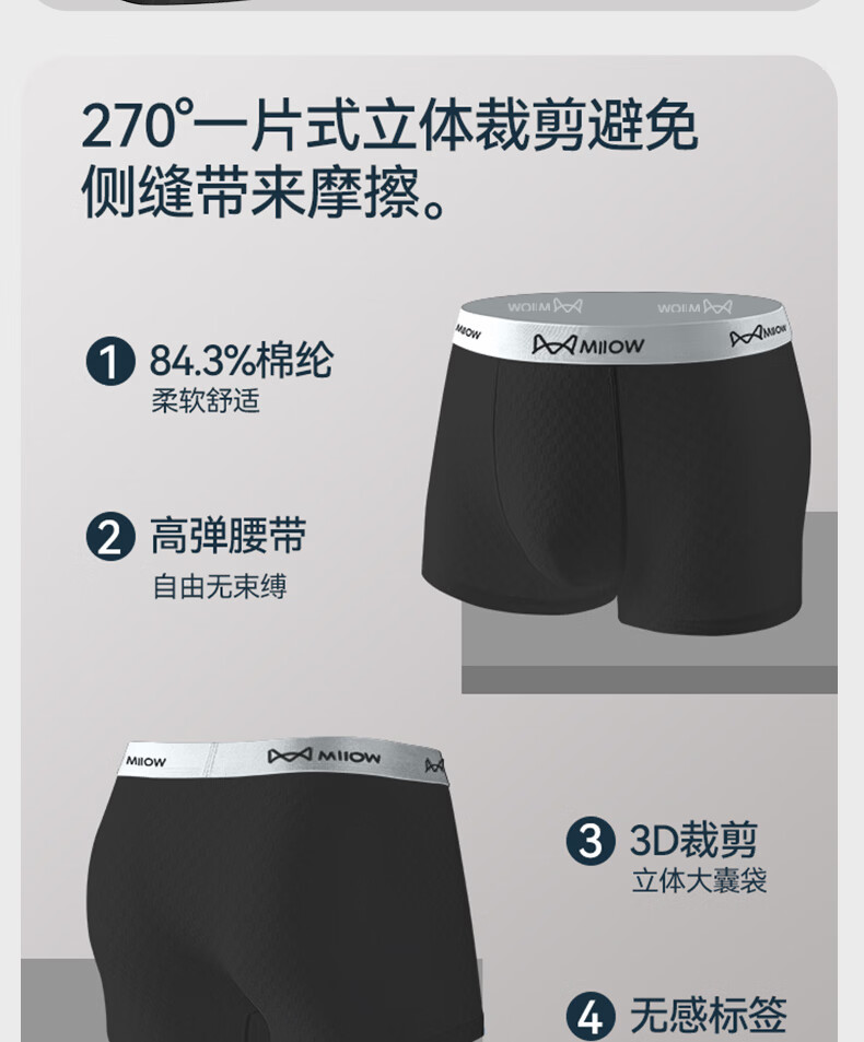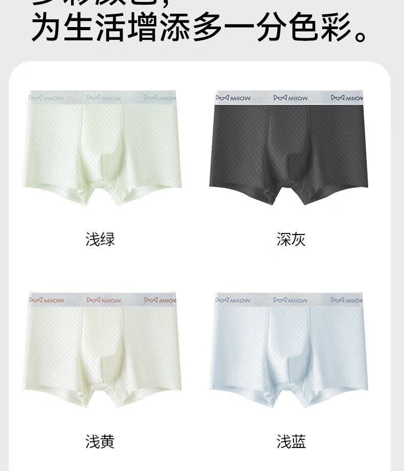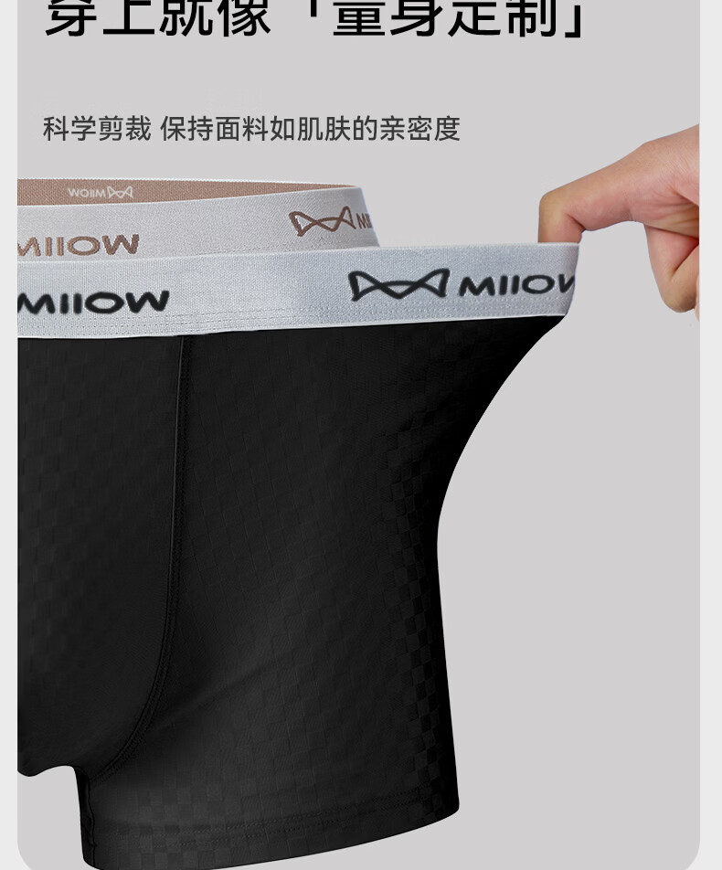 猫人(MiiOW)男士内裤冰丝凉感2026新款四角裤无痕夏季薄款透气男生平角短裤头 可任意搭配颜色(3条) 联系客服 3条 XL