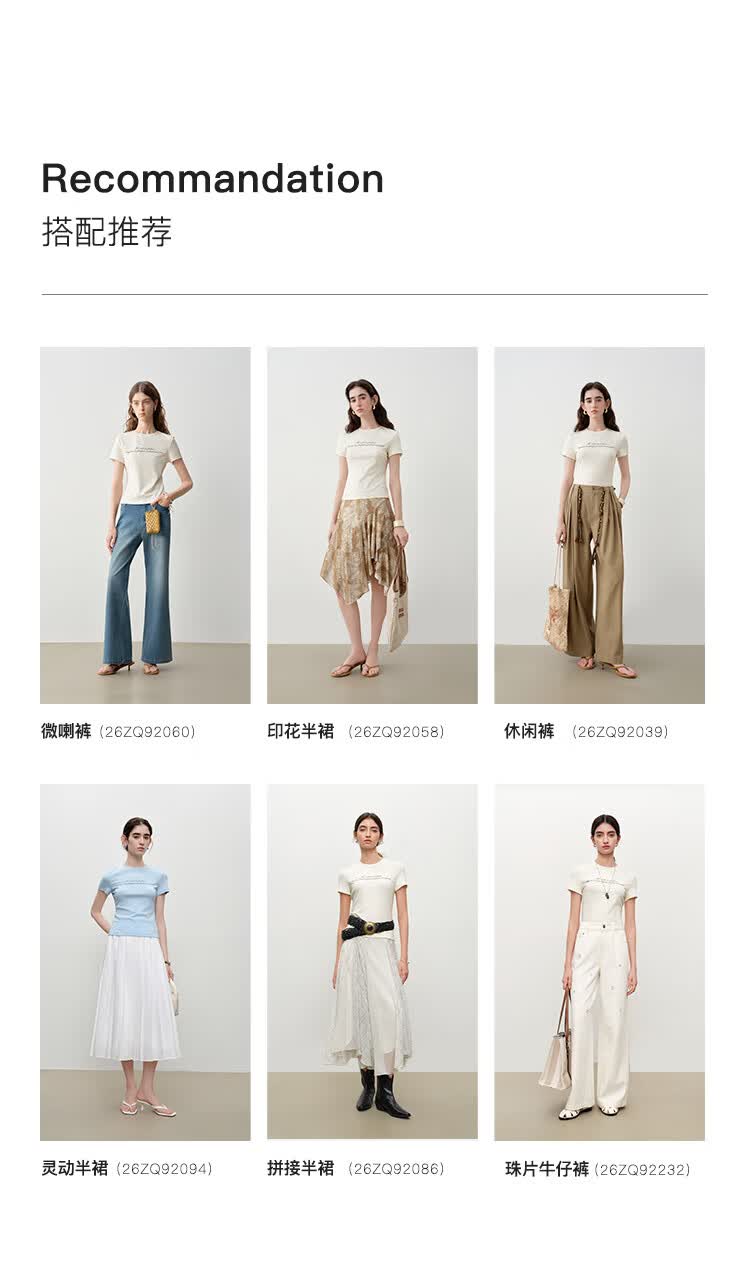 自巧小个子修身圆领正肩字母印花T恤上衣女2026夏季新品抗菌舒弹 雅白色 【5A抑菌】 M (尺码:4)