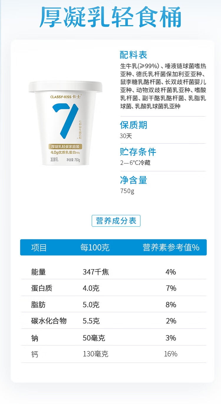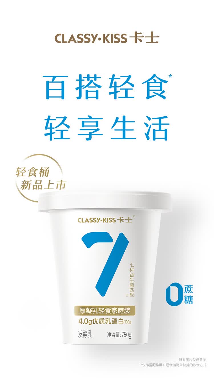 卡士(CLASSY.KISS)卡士007厚凝乳轻食家庭装750g 无蔗糖原味 低GI益生菌 低温酸奶