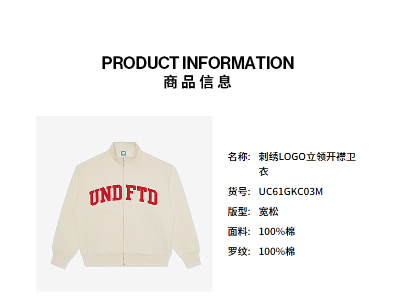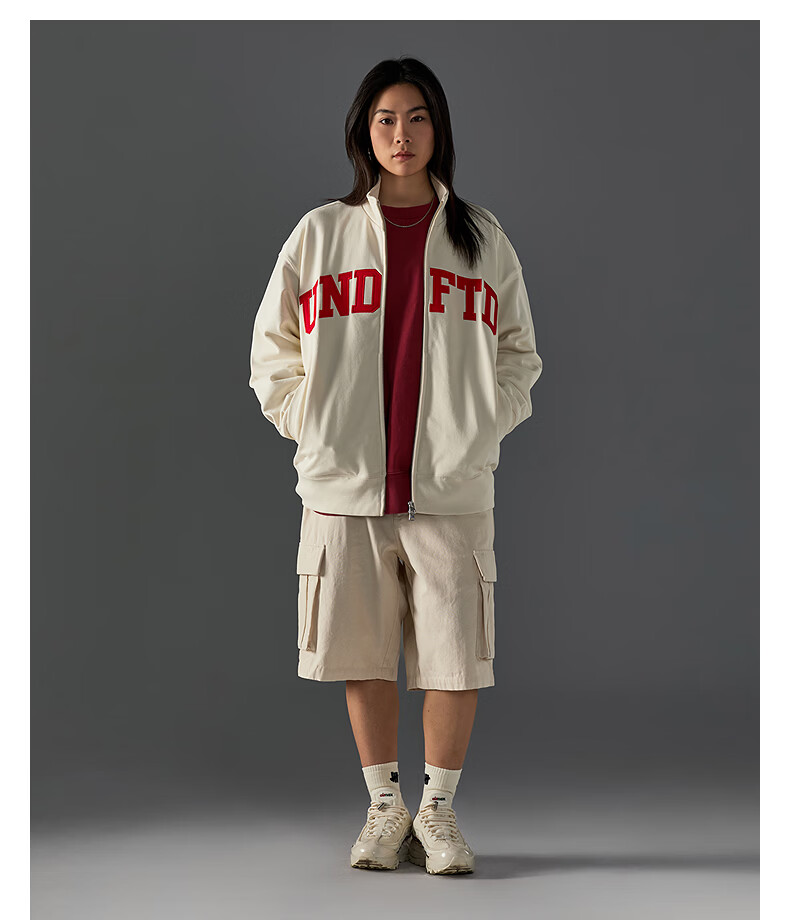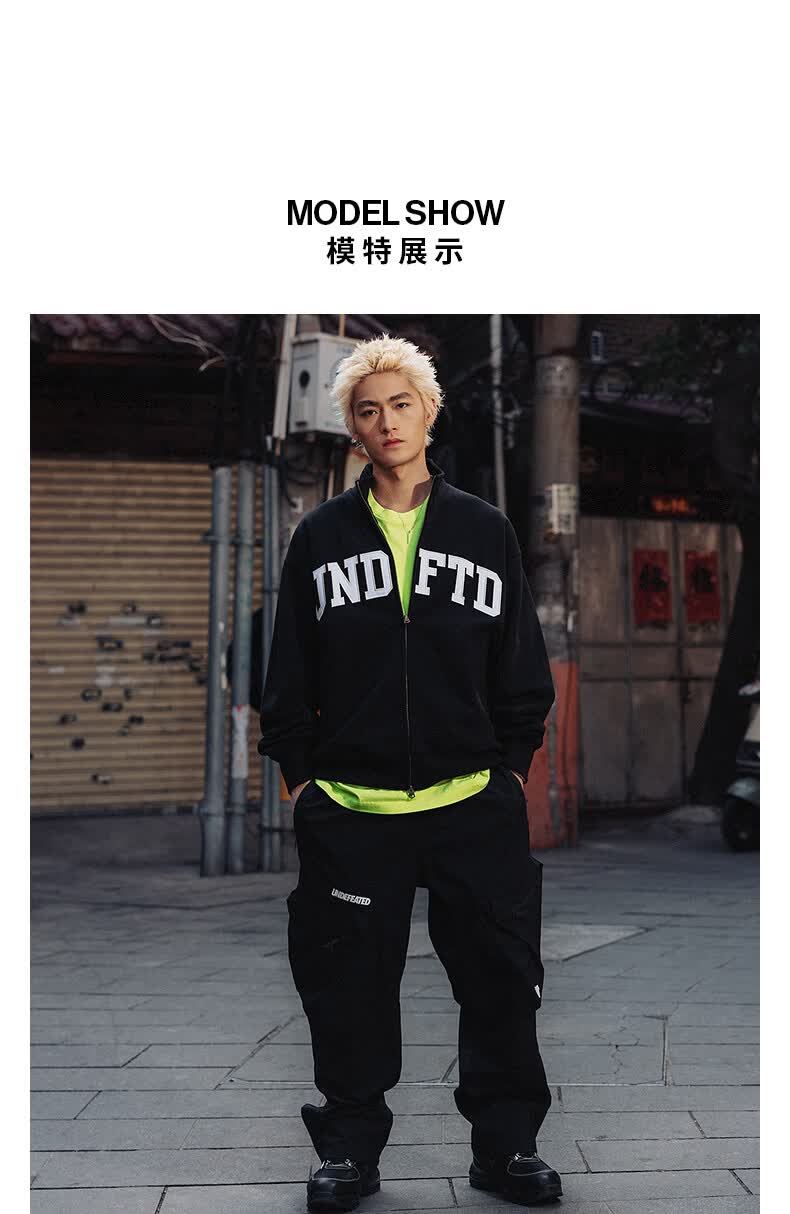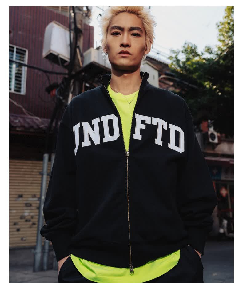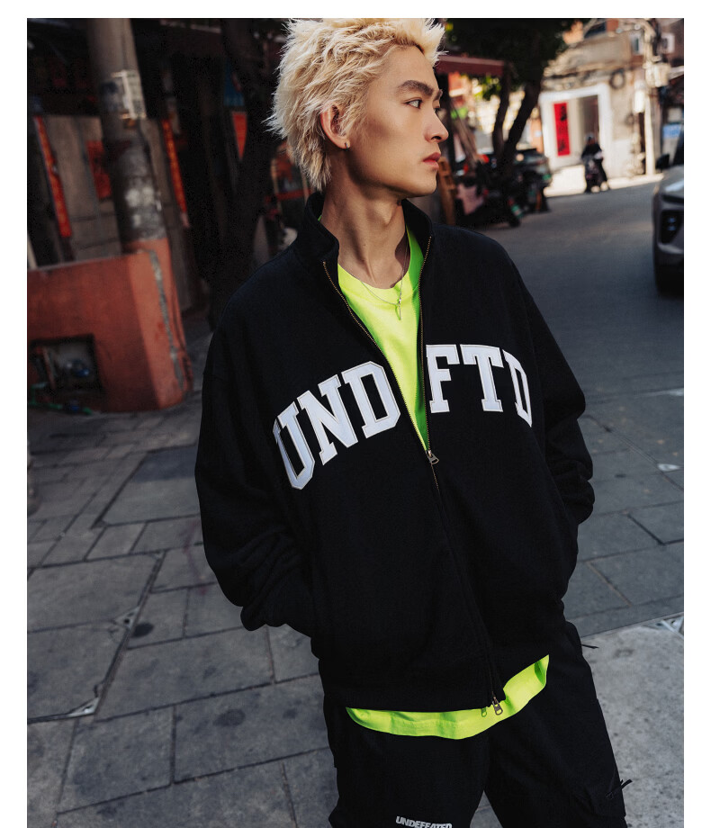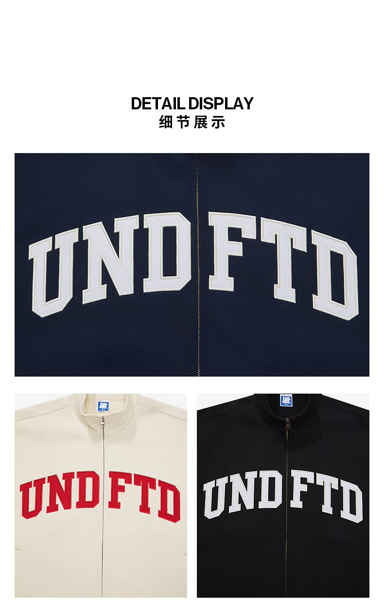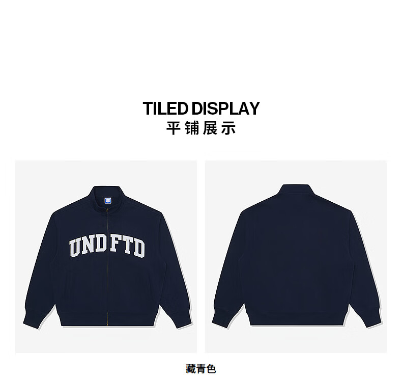 UNDEFEATED五条杠官方26年春季新品刺绣LOGO立领开襟卫衣 藏青色 XL