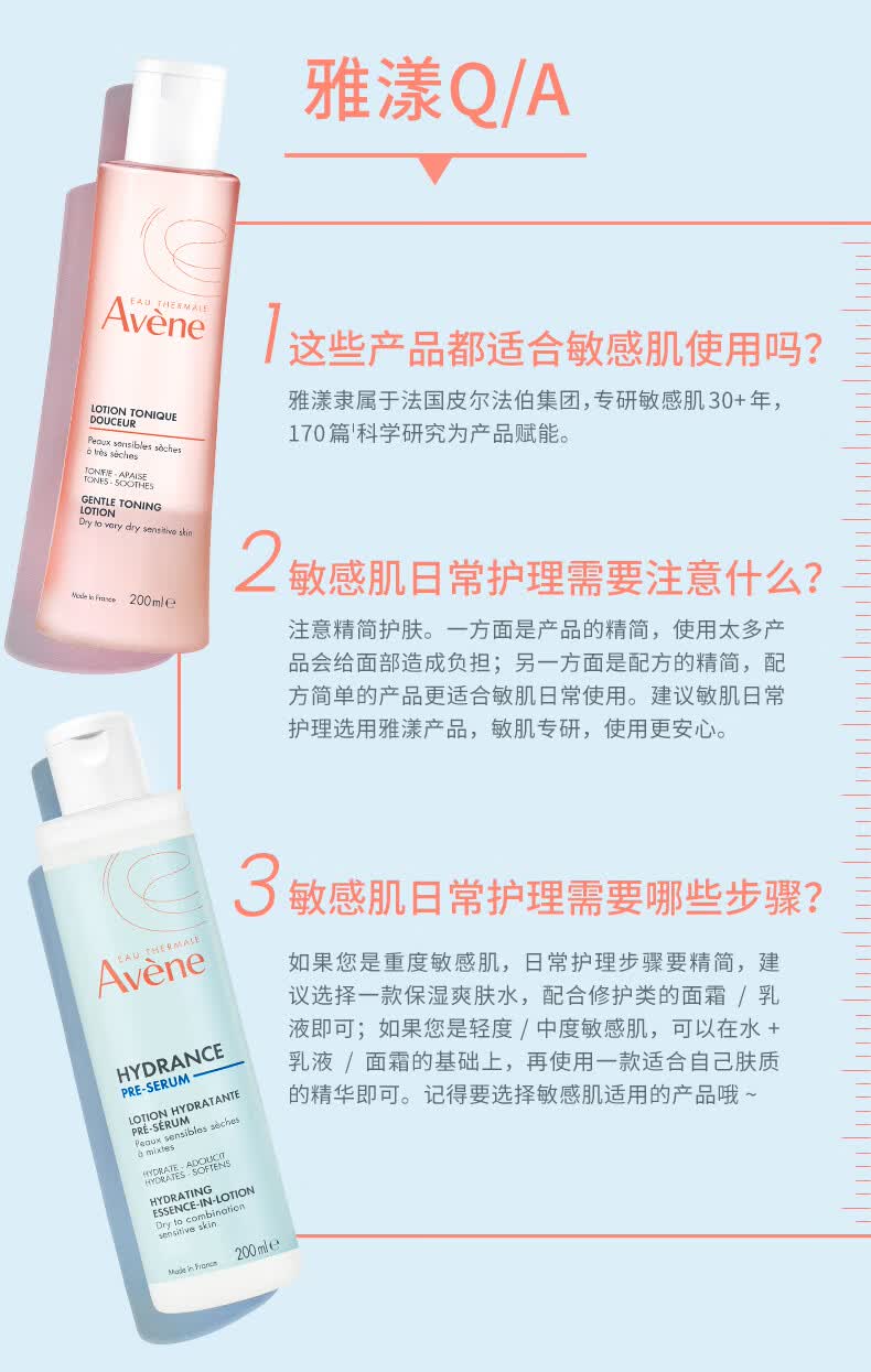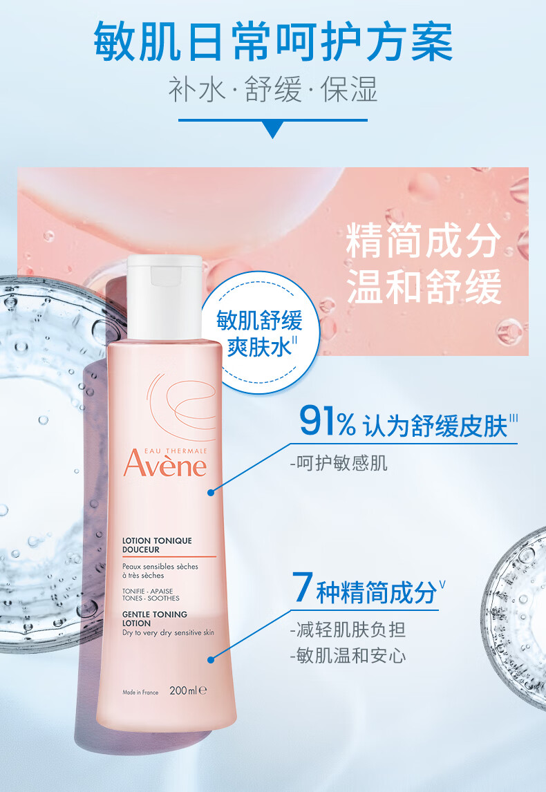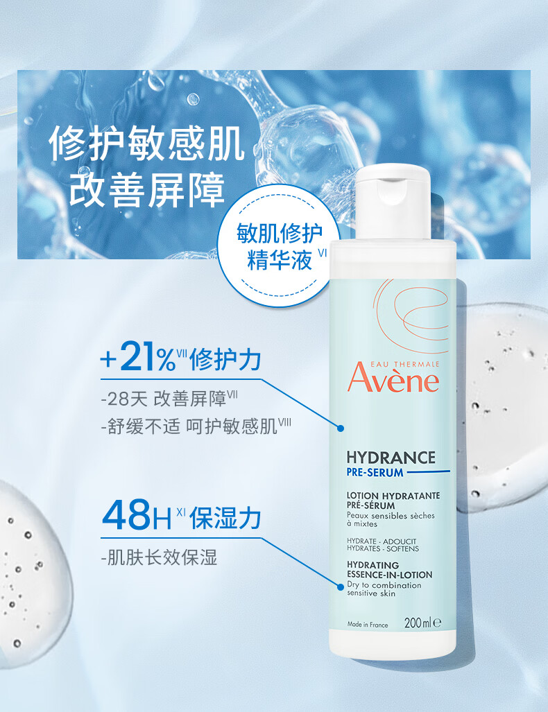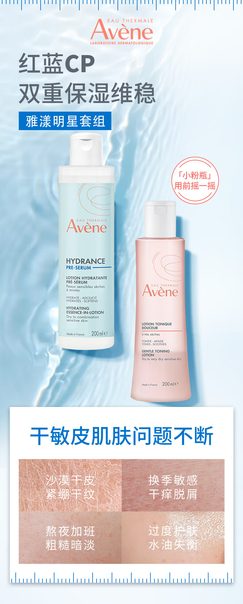 雅漾(Avene)恒润保湿水乳精华护肤套装 舒缓敏肌柔肤水+小蛮腰红蓝CP爽肤水