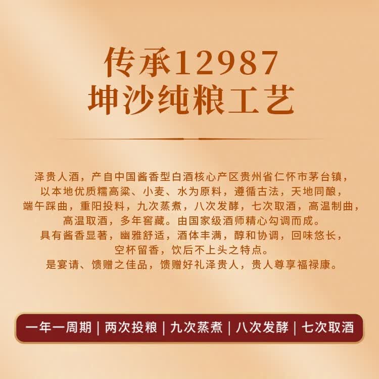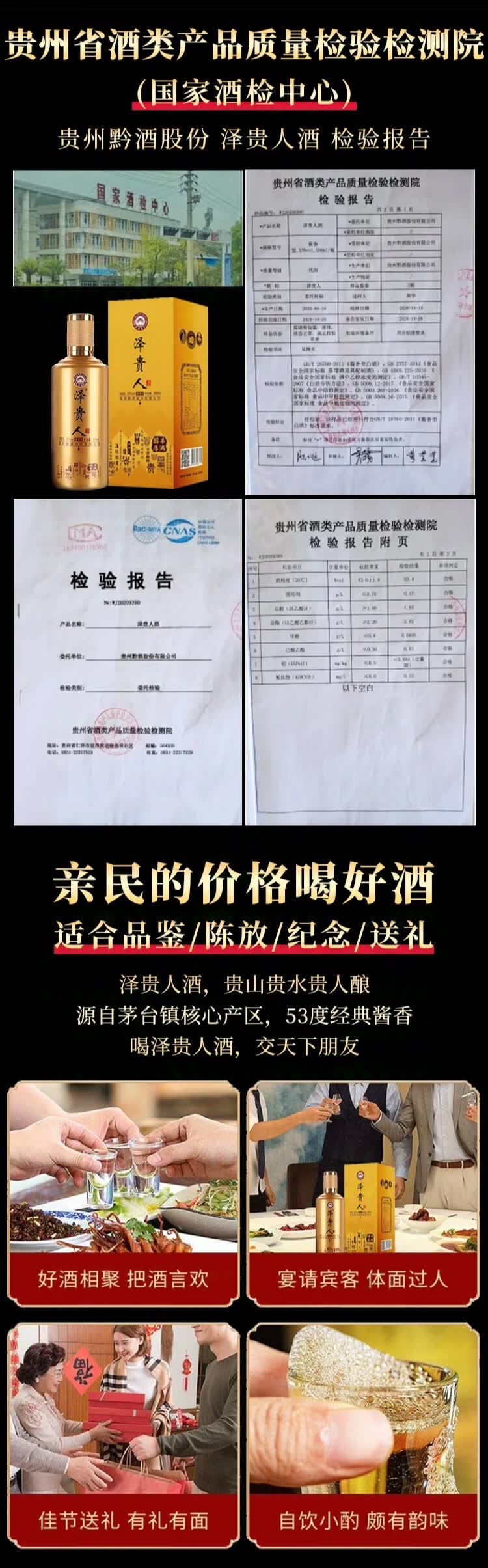 泽贵人贵州酱酒核心产区出品贵人酱香纯粮酿造53°经典酱香型白酒 53%vol 500mL 6瓶 整箱装