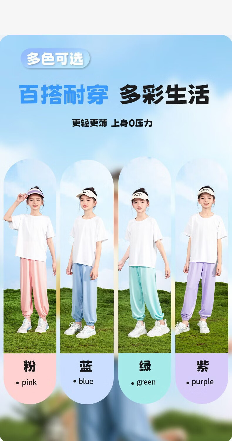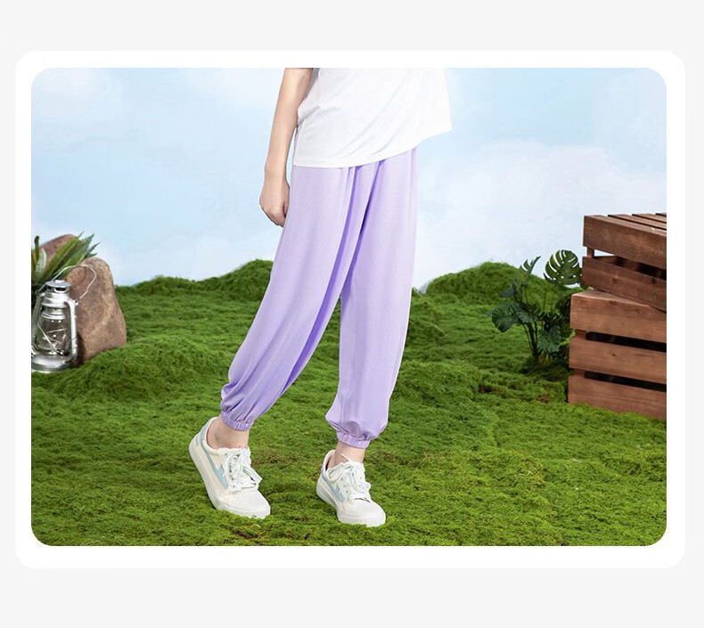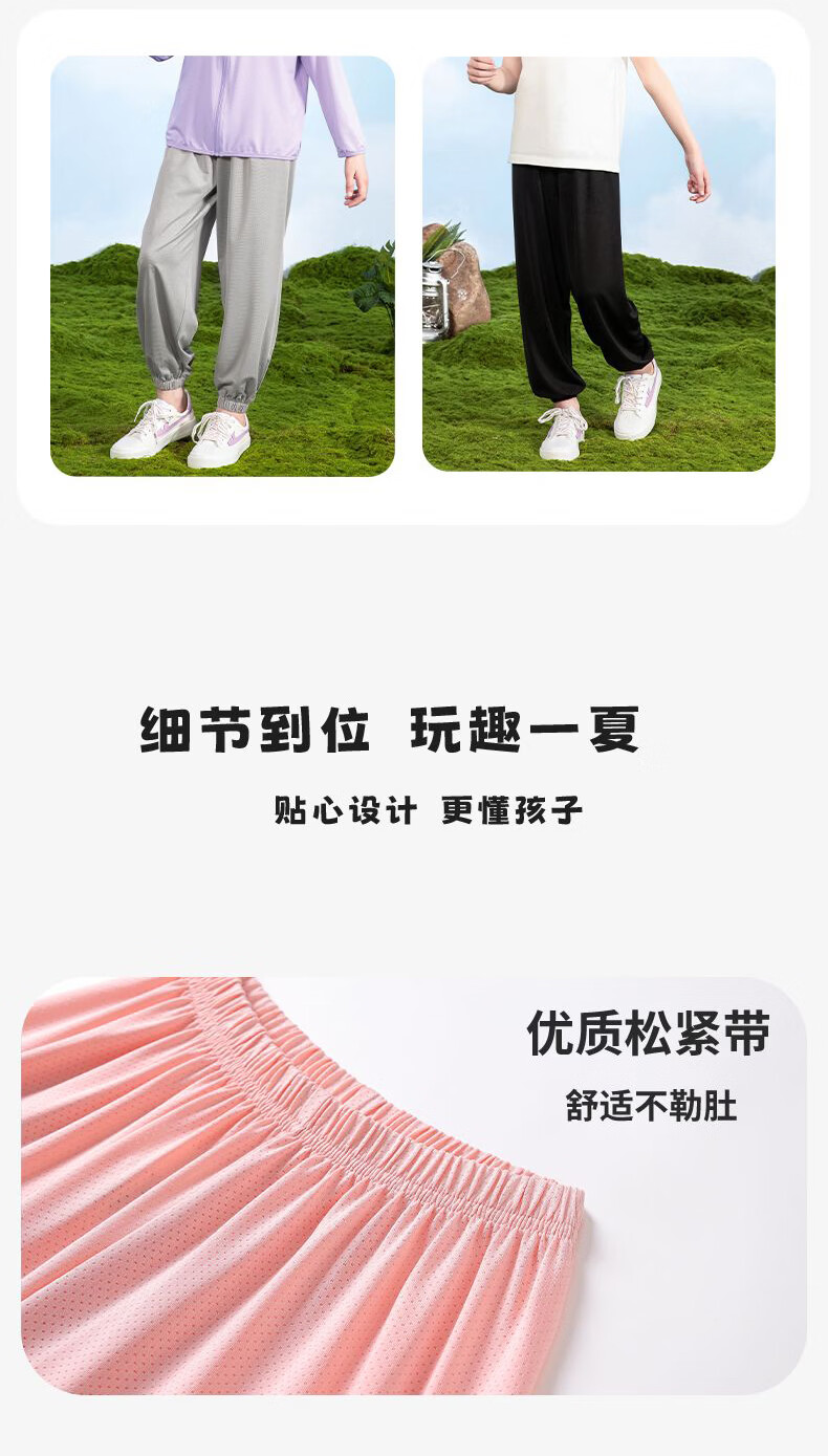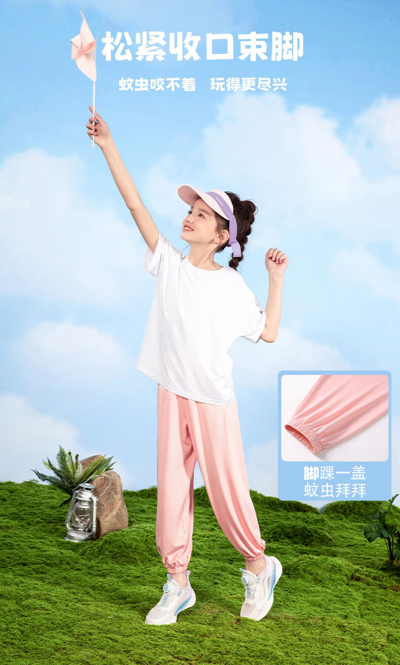 真维斯童装女童防蚊裤夏季薄款2026新款儿童运动裤女孩冰丝速干裤 紫色草莓兔小标 90