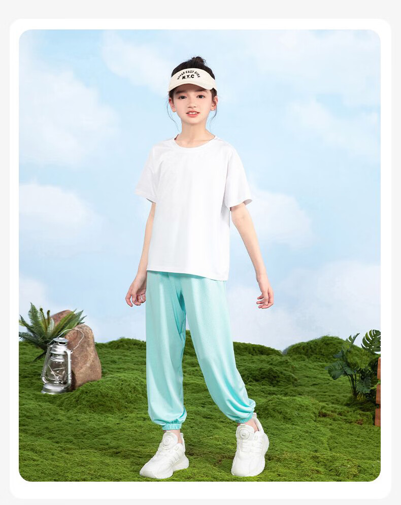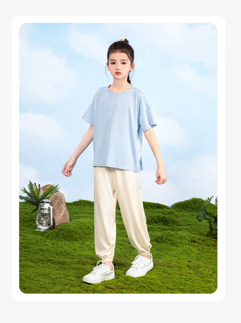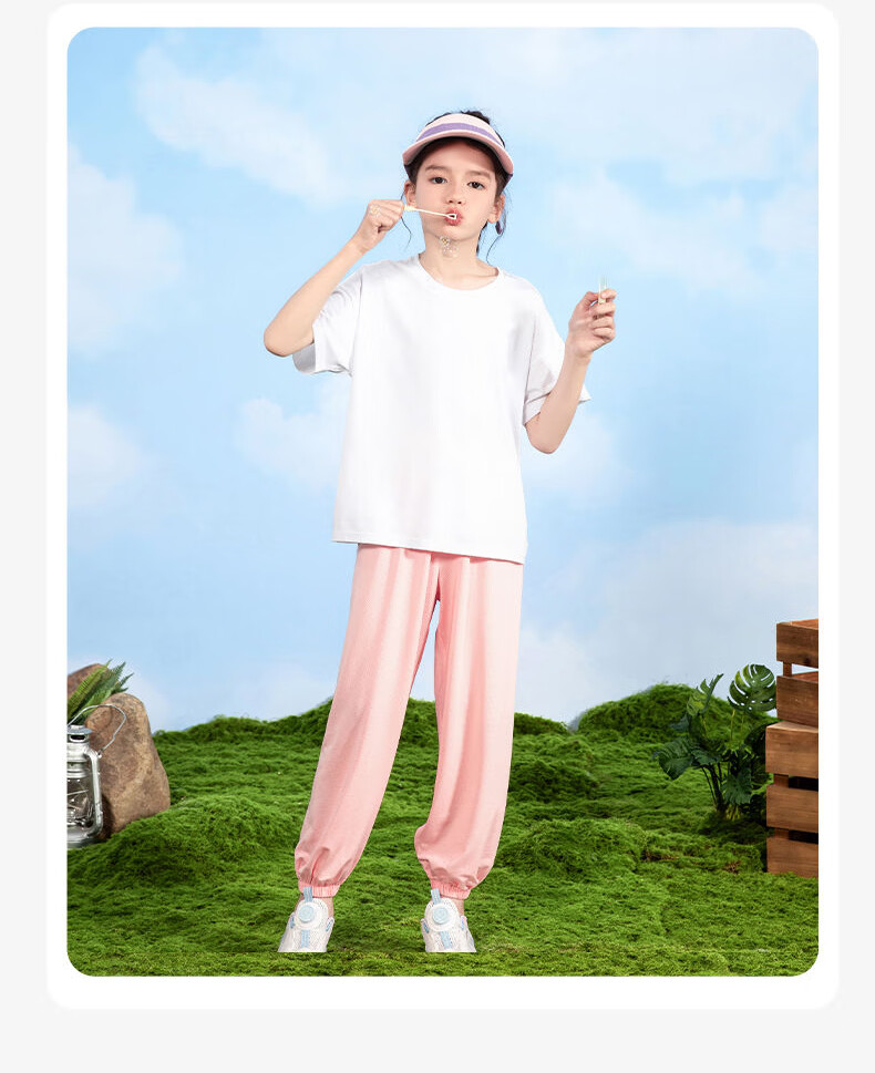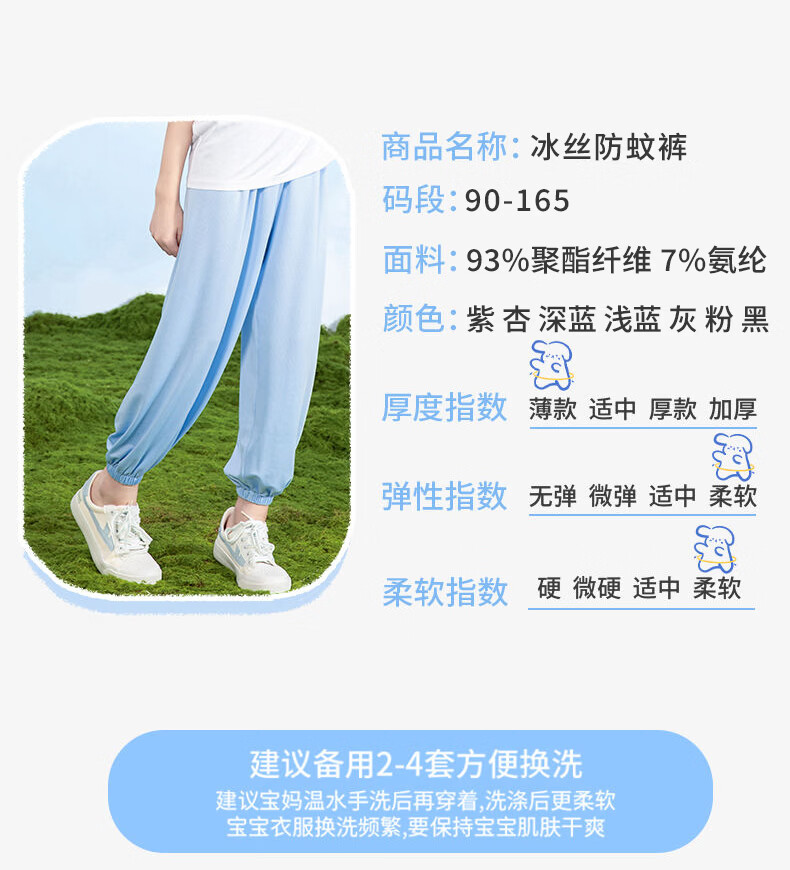 真维斯童装女童防蚊裤夏季薄款2026新款儿童运动裤女孩冰丝速干裤 紫色草莓兔小标 90