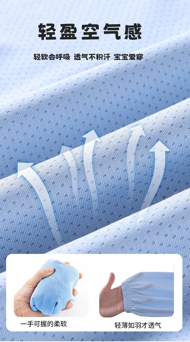 木生棉【莫代尔】婴儿童上衣服裤子两件套装夏季薄宝宝弹力分体短袖短裤 浅蓝色 73 cm