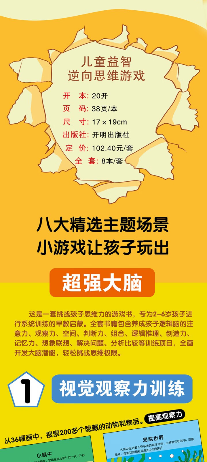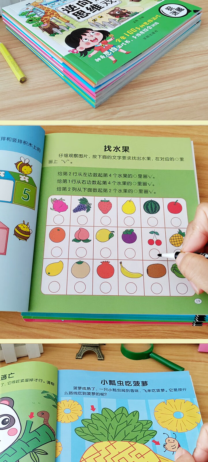 儿童益智逆向思维游戏书儿童专注力思维训练书神器3-6-9岁幼儿园中班大班早教智力大开发趣味游戏书籍大脑左右脑开发益智思维训练 【儿童益智逆向思维训练游戏】全套7册