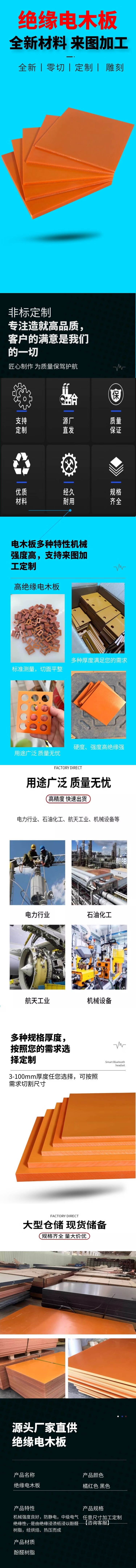 进口橘红色电木板绝缘板材耐高温胶木板异型加工雕刻加工整张零切 橘红色 红300*500*10=1张