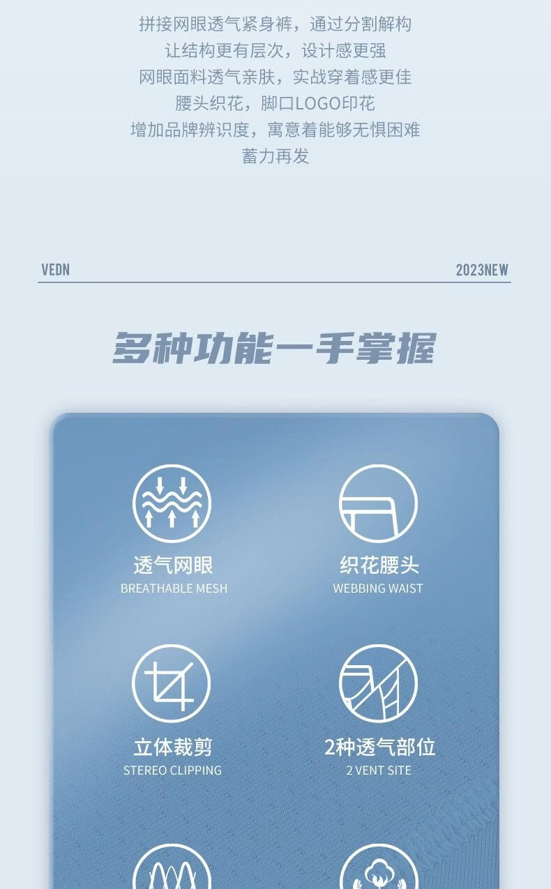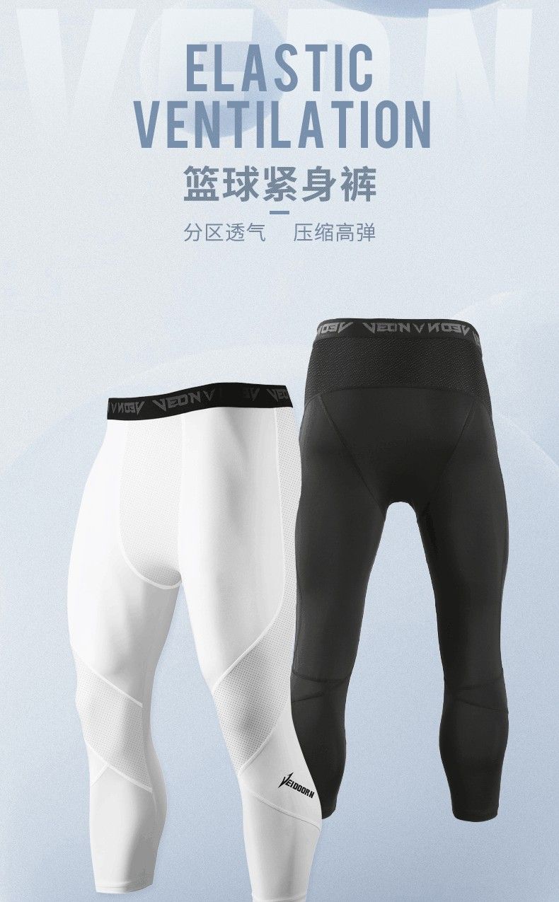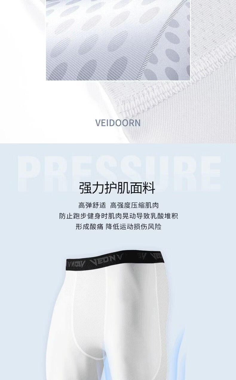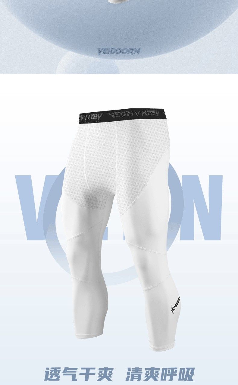 维动(VEIDOORN)腿部透气男五分篮球7分紧身裤9分运动健身透气高弹压缩裤跑步 五分紧身裤(白) M