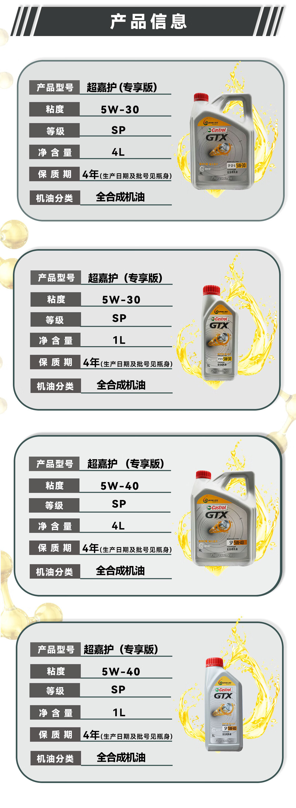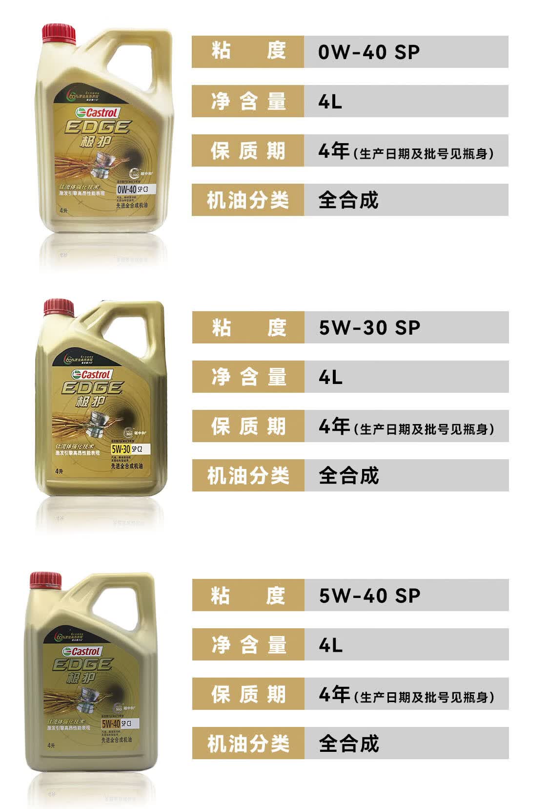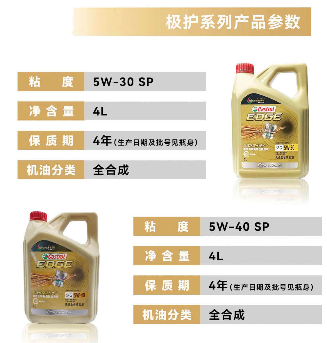 嘉实多(Castrol)磁护/极护/超豪/超嘉护 全合成机油 润滑油 汽车保养 防伪查询 金嘉护 国行版 10W-40 SP级 4L
