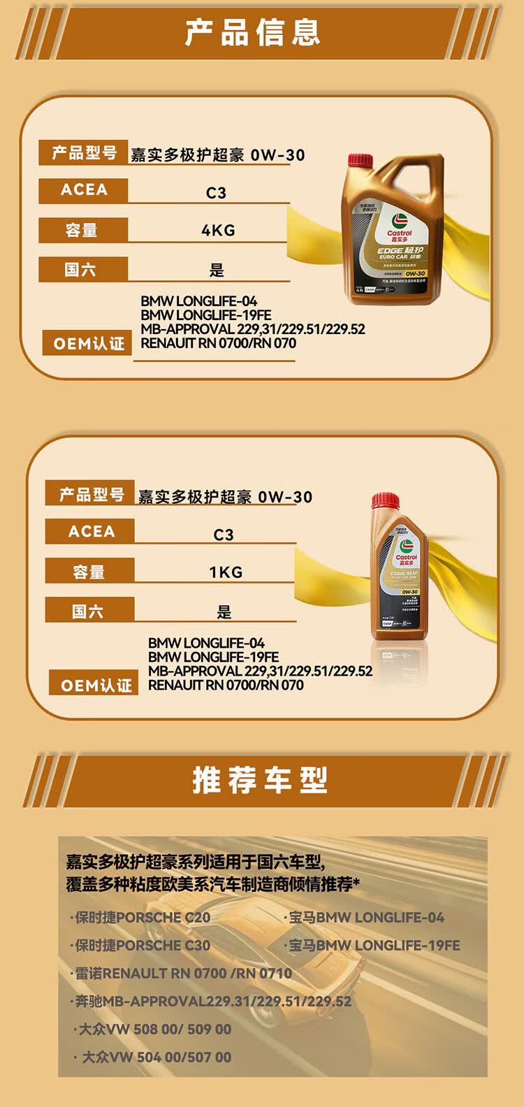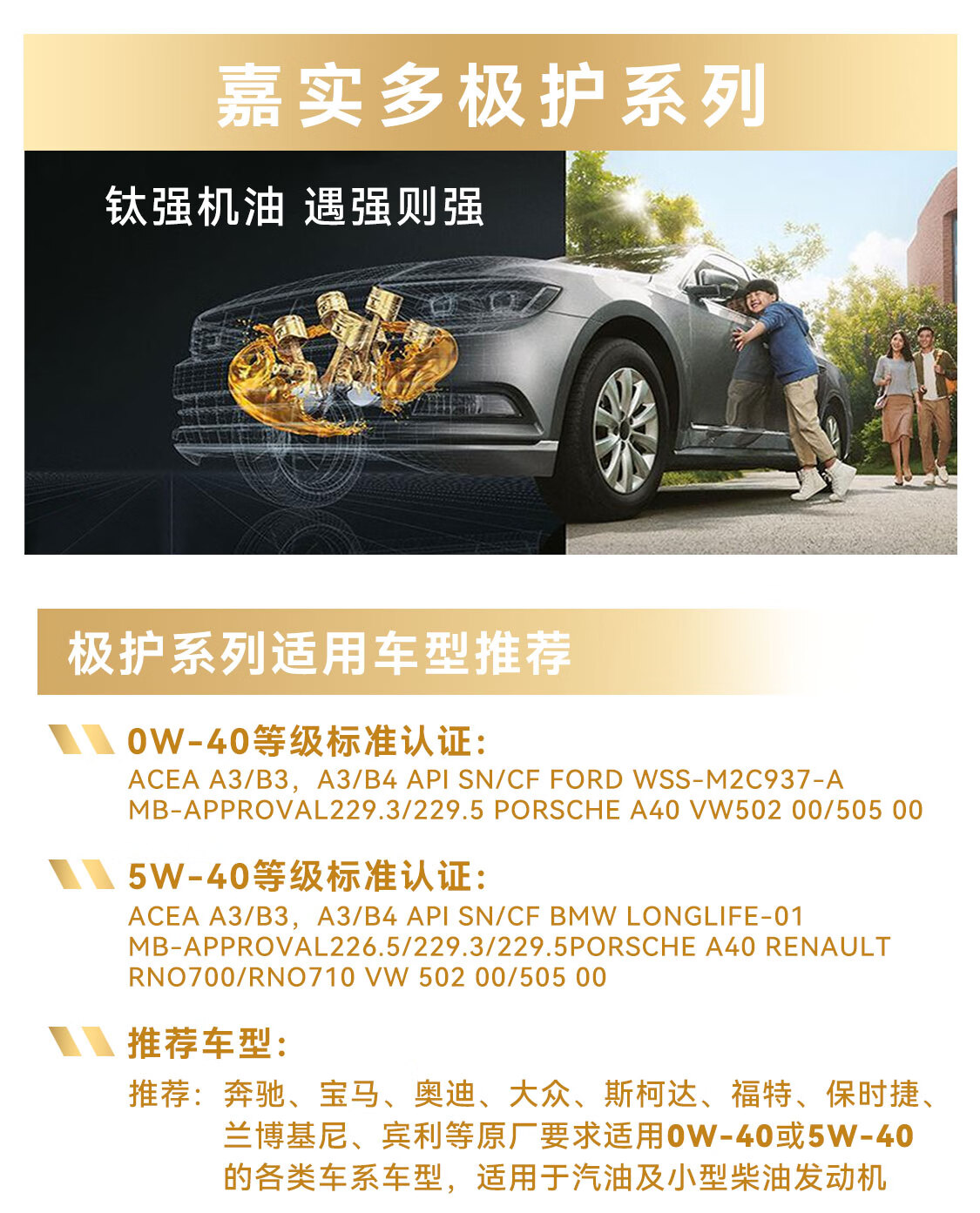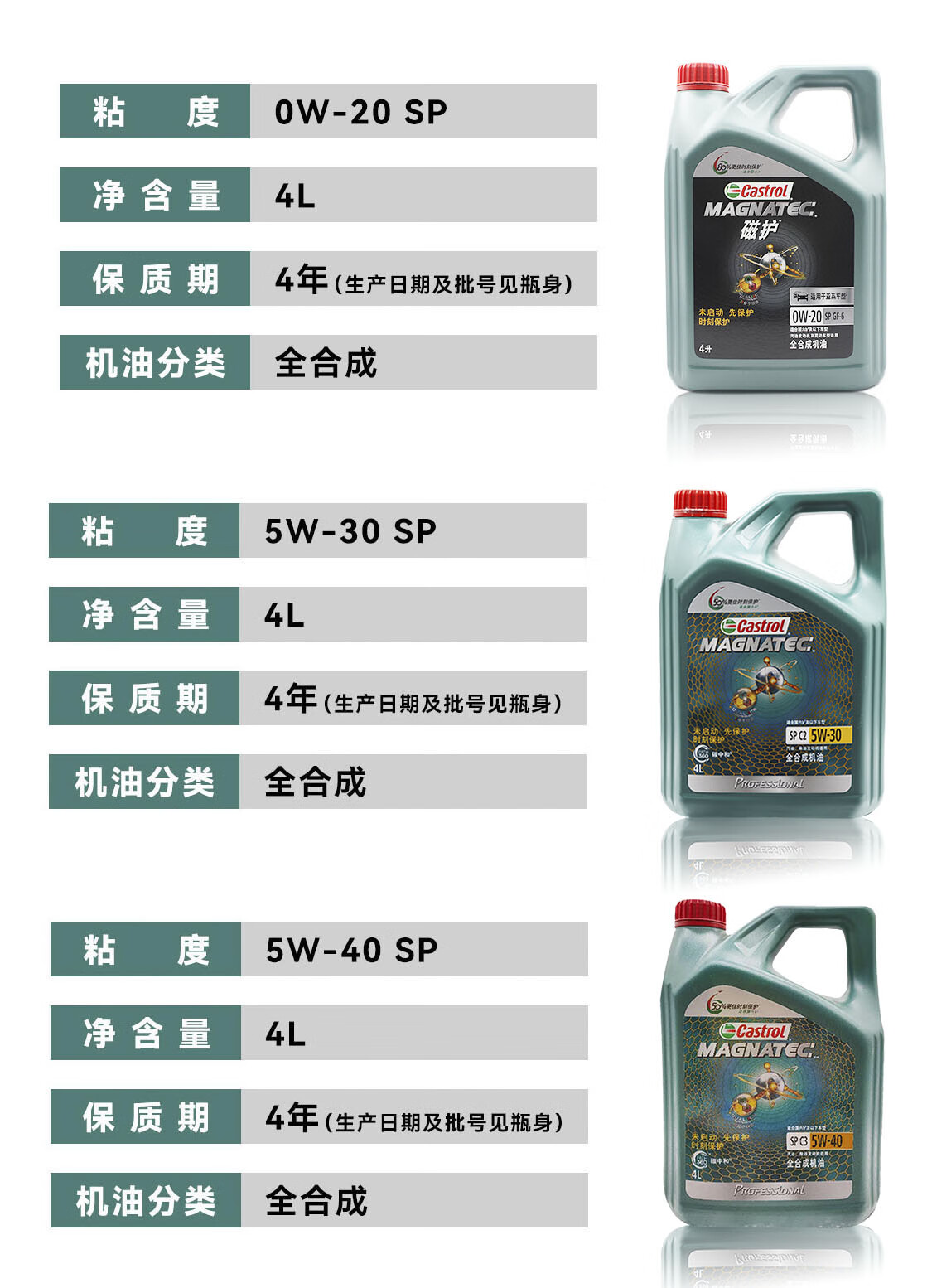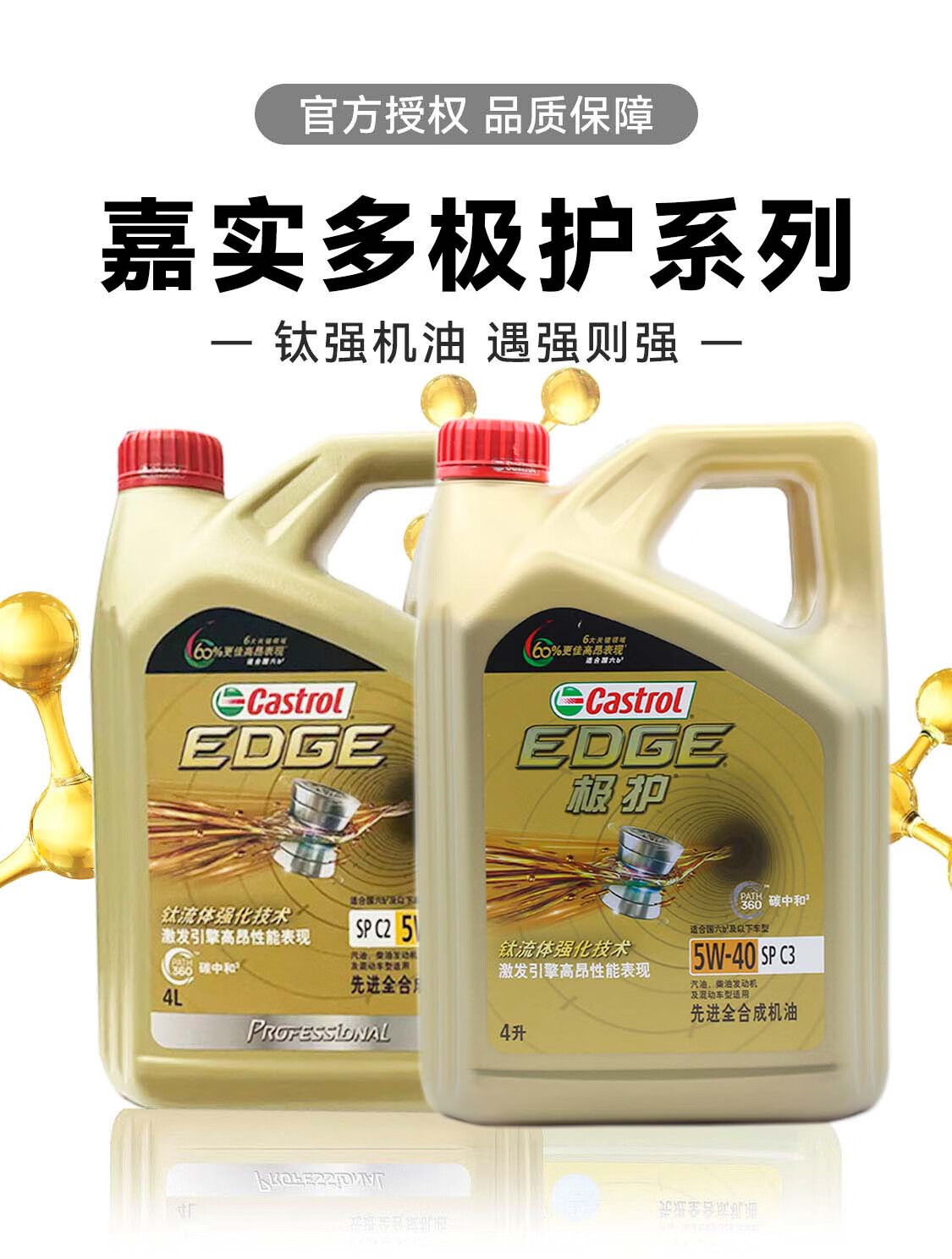 嘉实多(Castrol)磁护/极护/超豪/超嘉护 全合成机油 润滑油 汽车保养 防伪查询 金嘉护 国行版 10W-40 SP级 4L