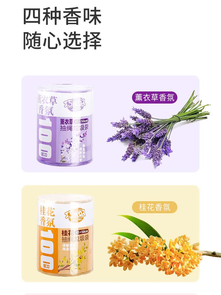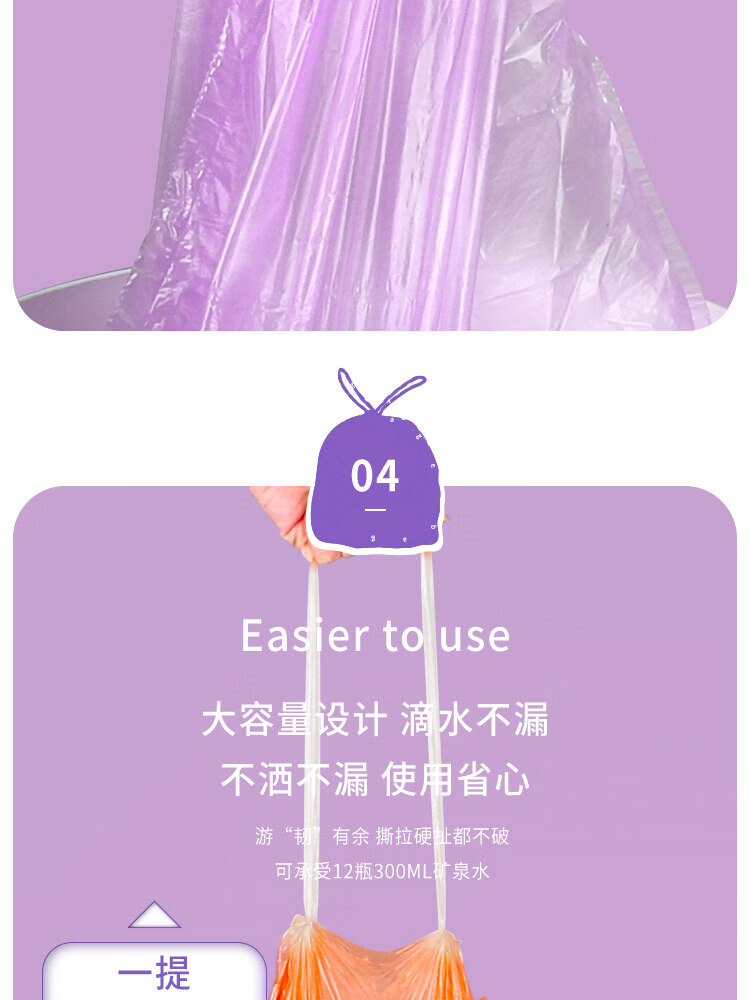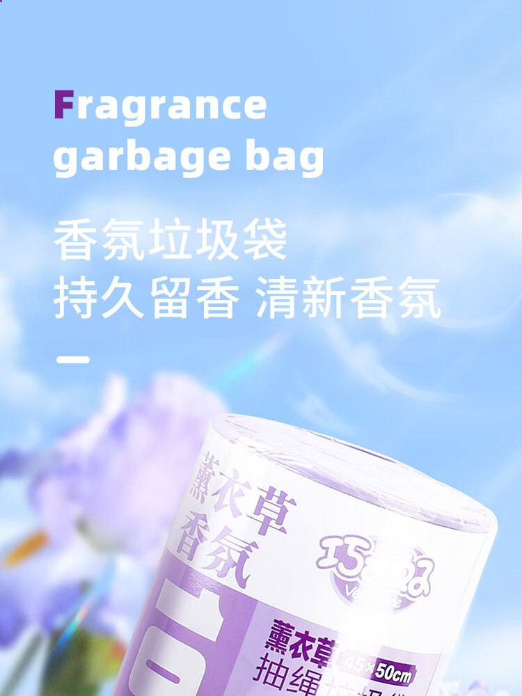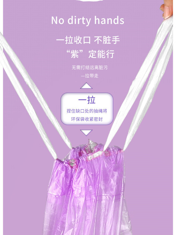 艾仕可(ASCOR)【100只】免撕抽绳式垃圾袋大号加厚手提防臭防破薰衣草家用清洁 薰衣草香【高容量】免撕抽绳式(1卷)