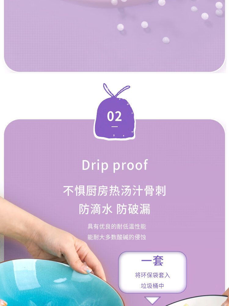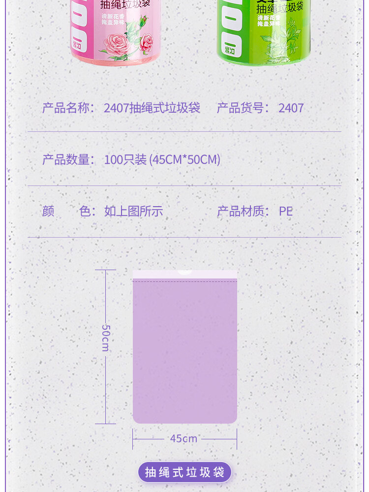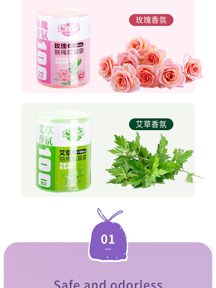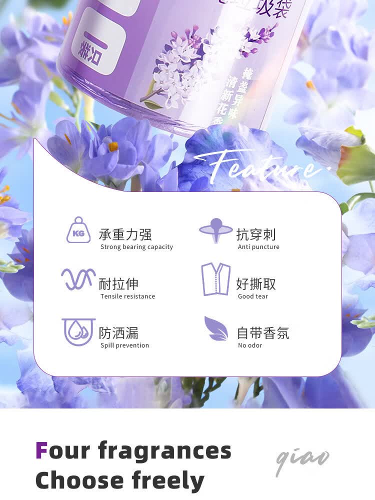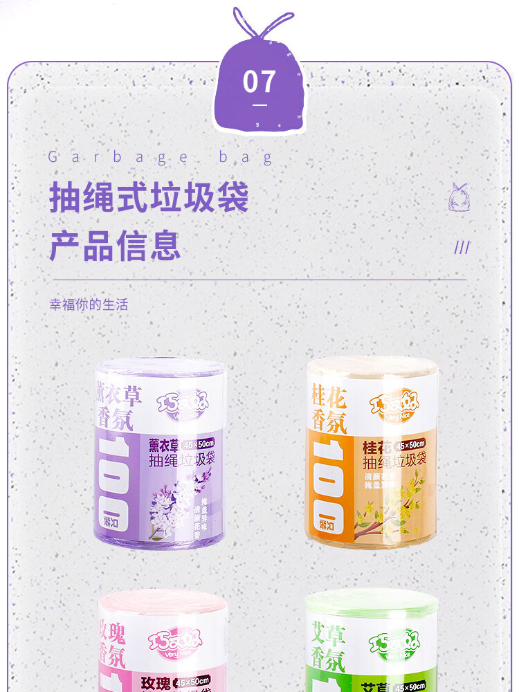 艾仕可(ASCOR)【100只】免撕抽绳式垃圾袋大号加厚手提防臭防破薰衣草家用清洁 薰衣草香【高容量】免撕抽绳式(1卷)