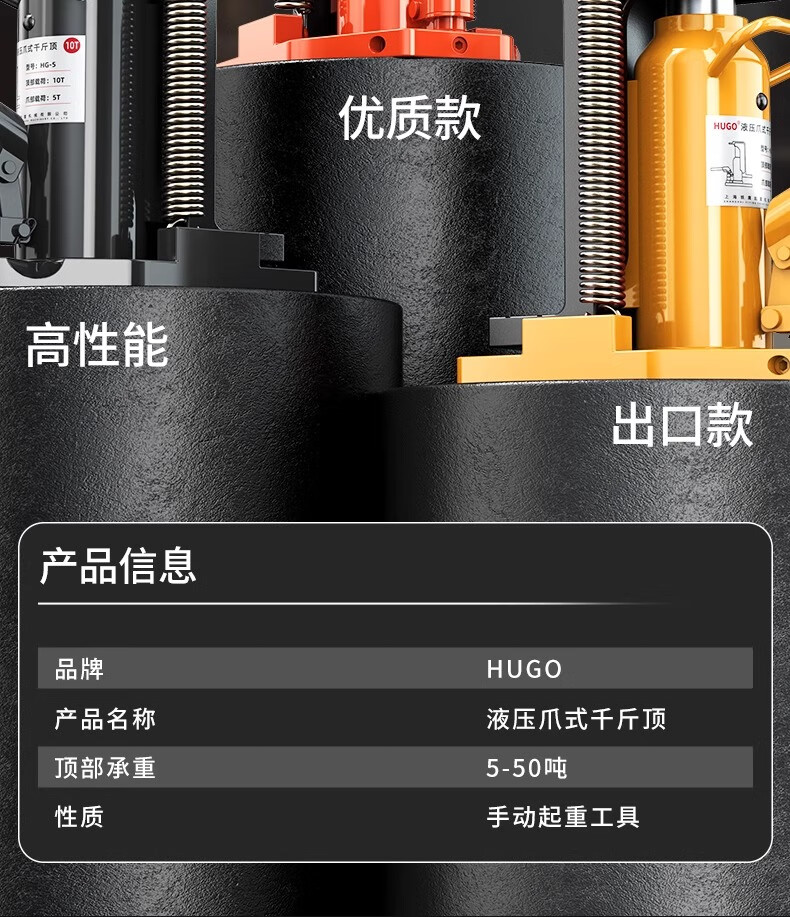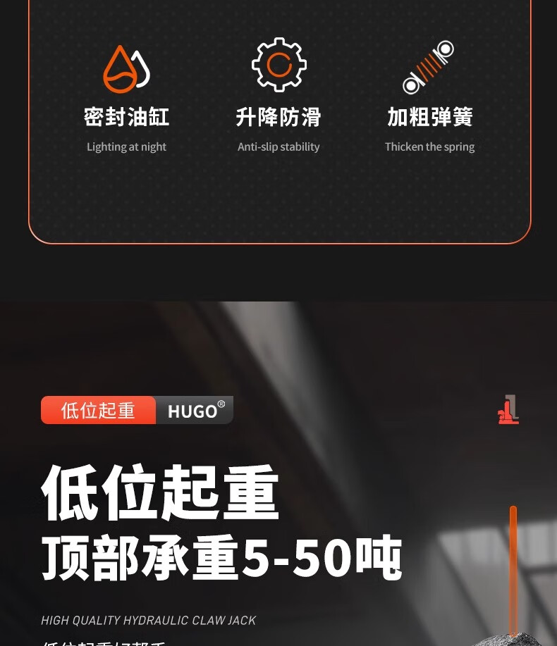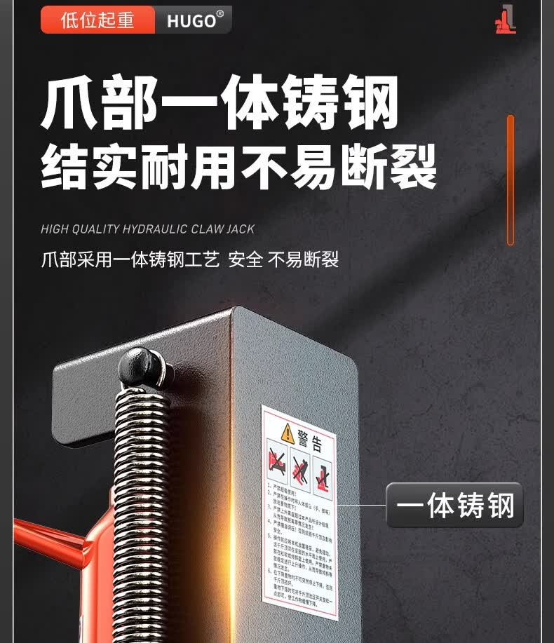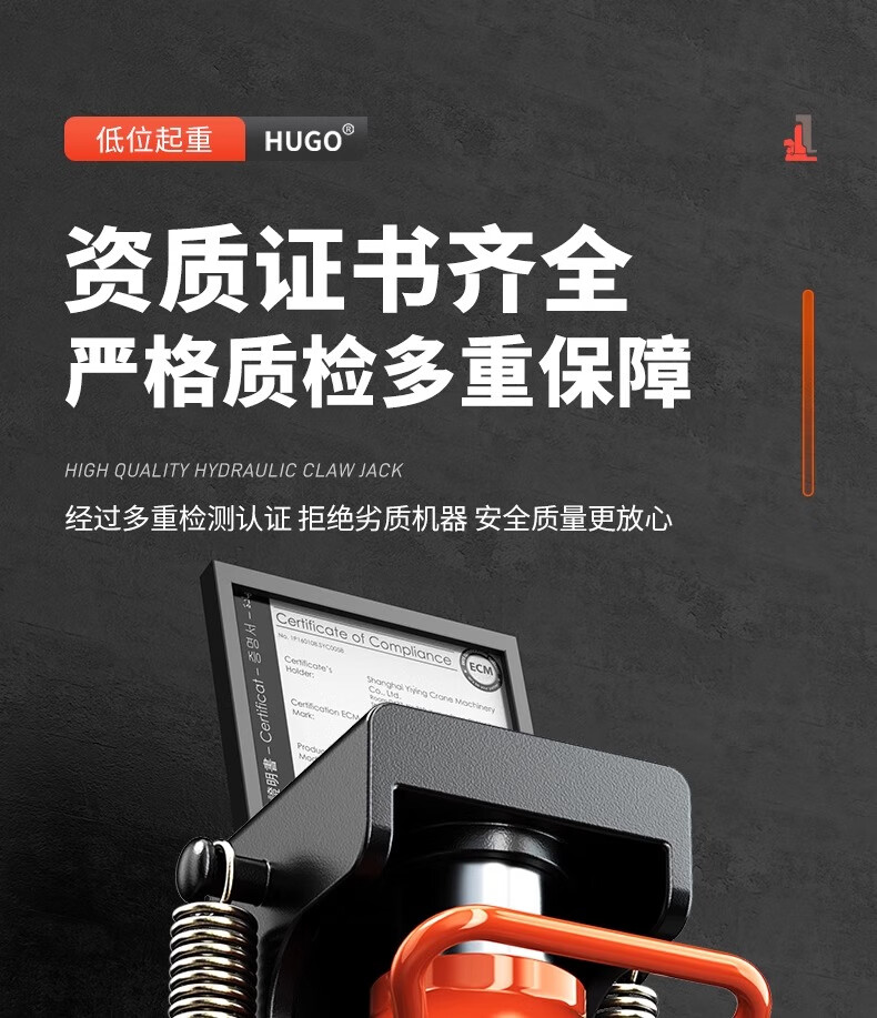 HUGO爪式千斤顶抬高器液压立式鸭嘴式跨顶5T10T20t油压低位重型起道机 (HUGO优质款)顶部5吨 爪部2.5吨 【爪部低至20毫米】 液压爪式千斤顶