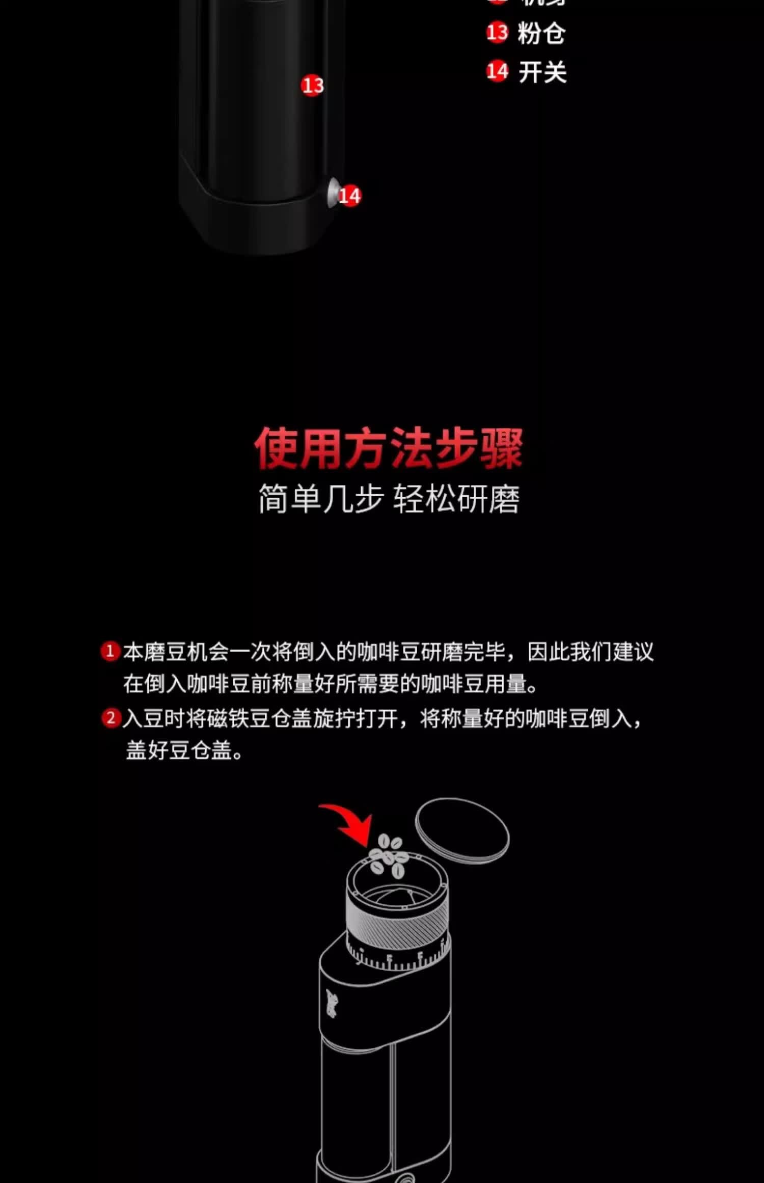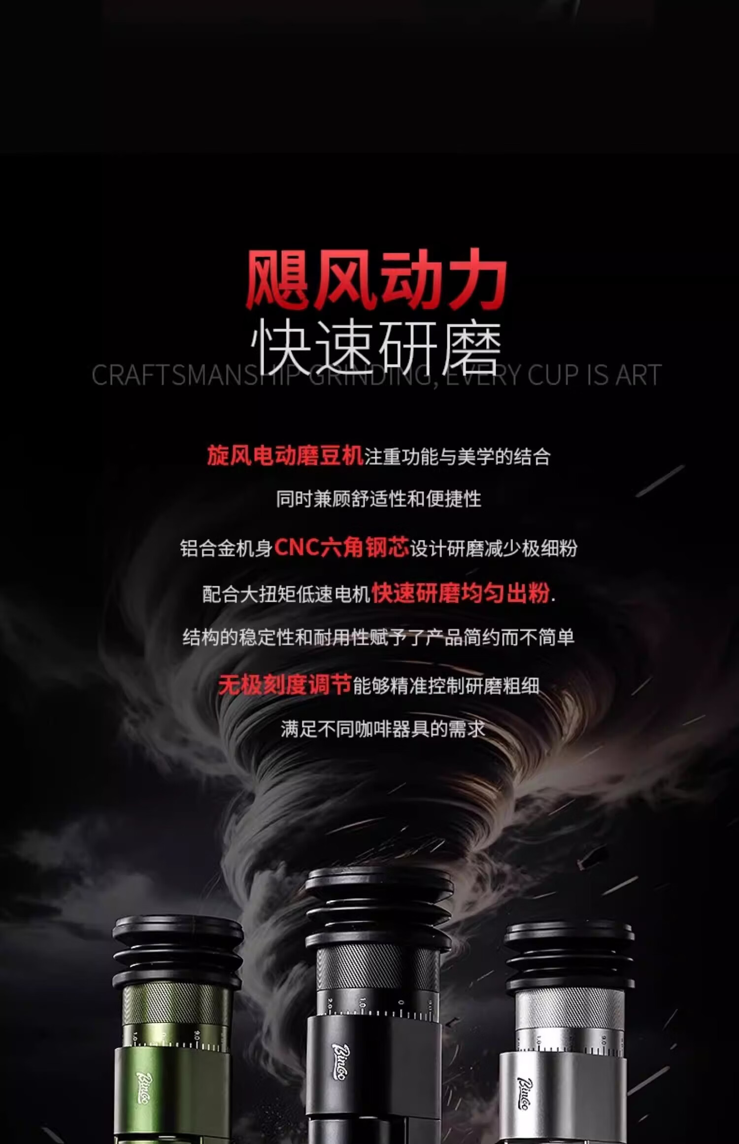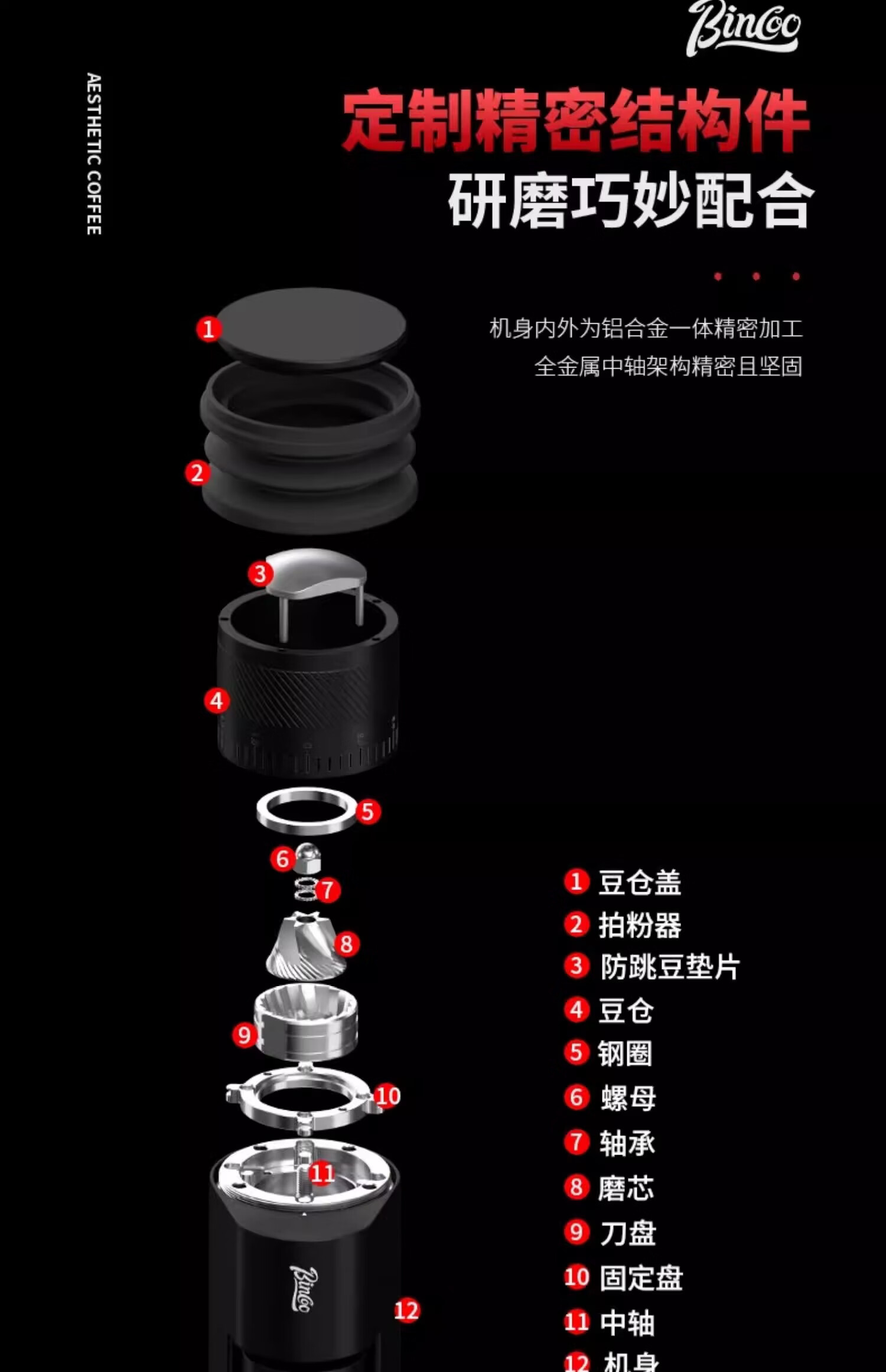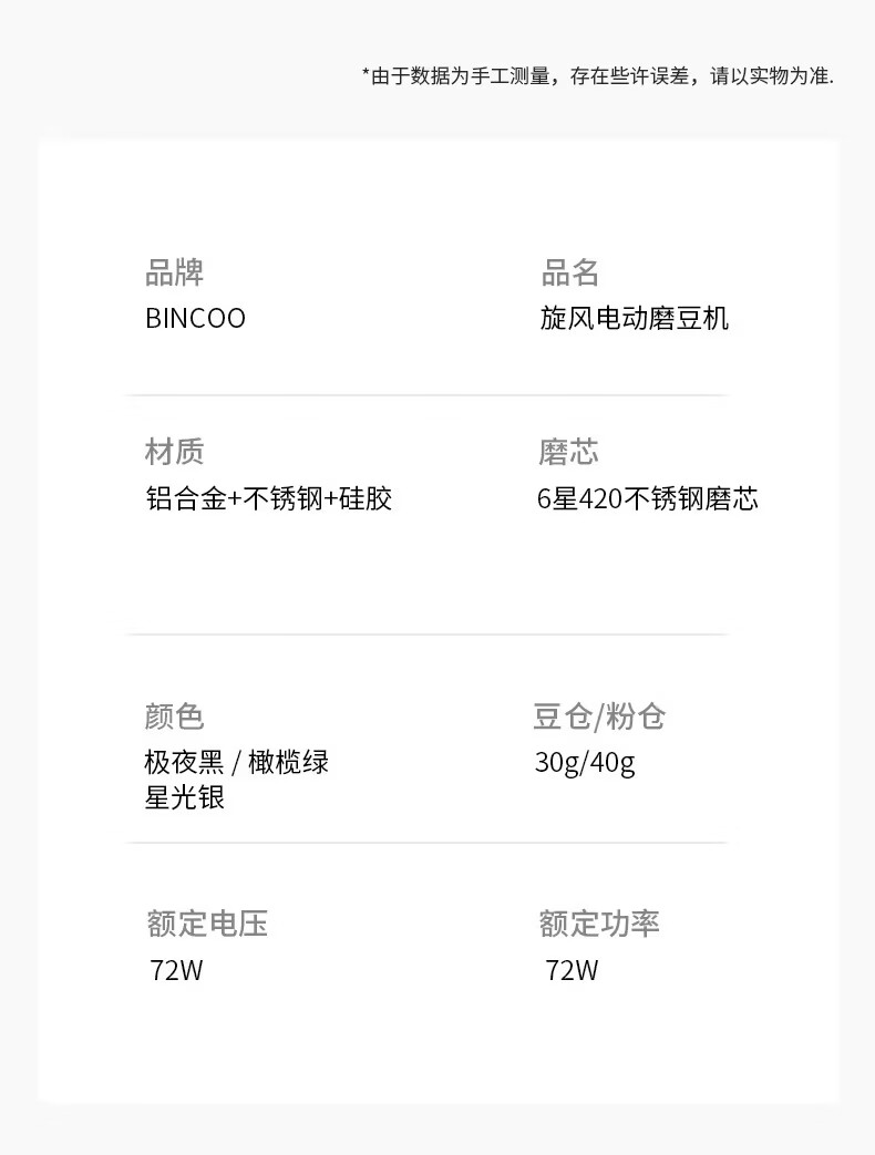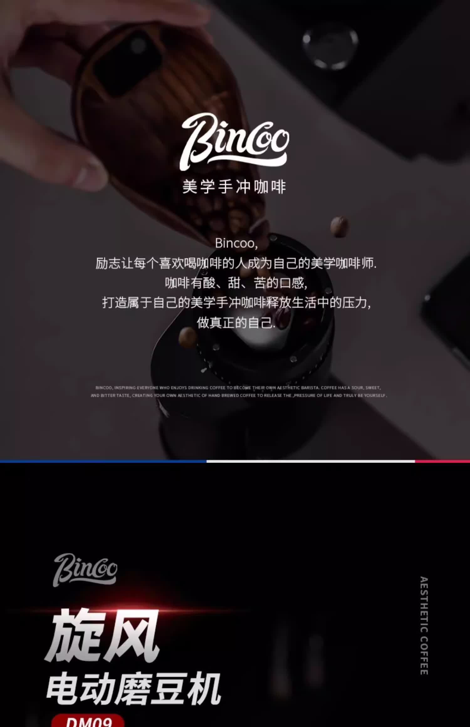 BincooDM09小旋风电动咖啡磨豆机家用咖啡豆研磨机手冲意式磨粉 月光银【顺丰/京东】