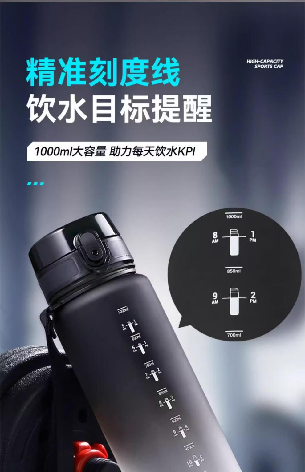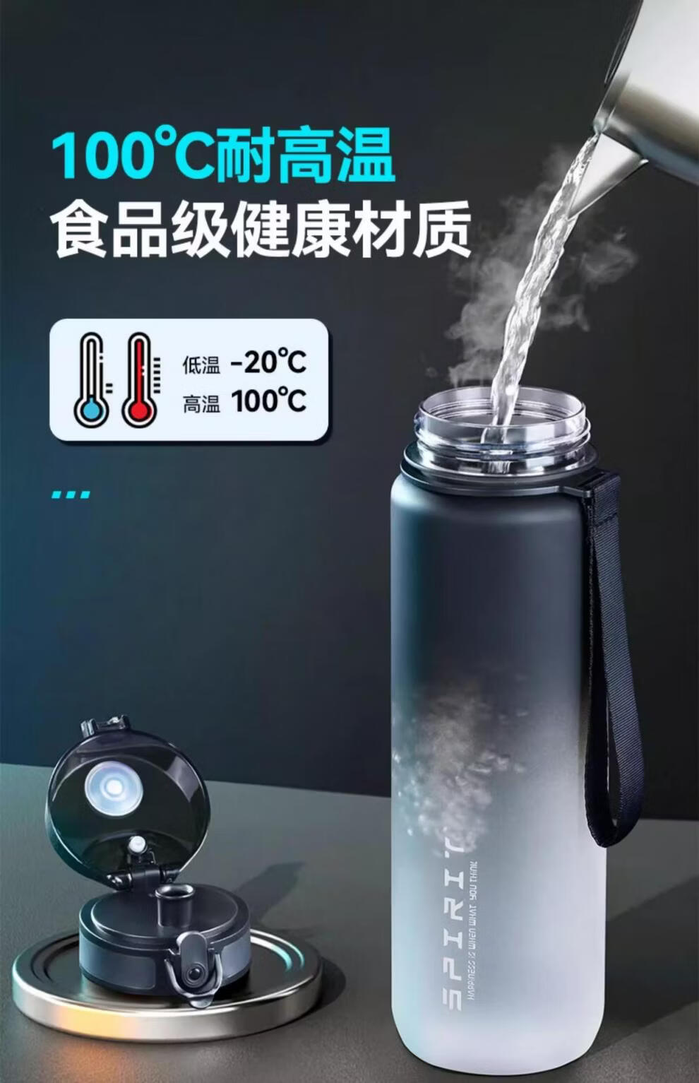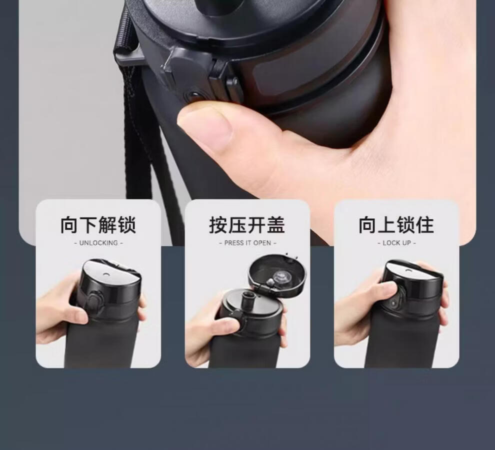 运动水杯大容量男女健身泡茶便携杯子壶学生儿童耐高温 磨砂黑【可装开水】 650ml