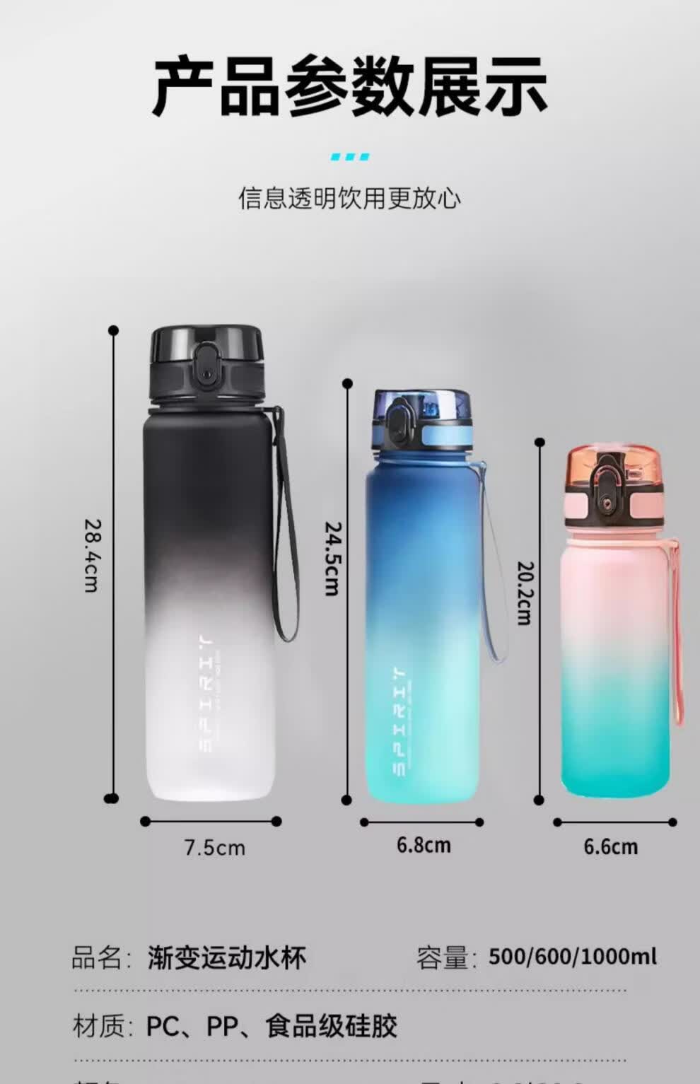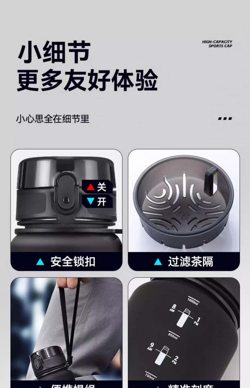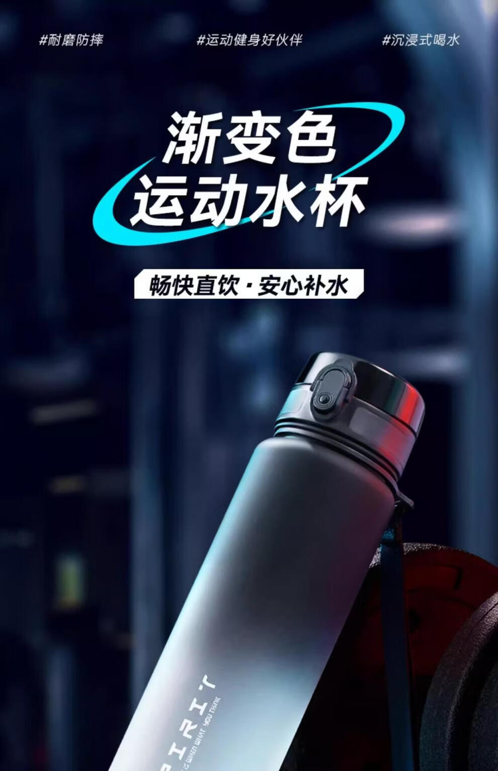 运动水杯大容量男女健身泡茶便携杯子壶学生儿童耐高温 磨砂黑【可装开水】 650ml