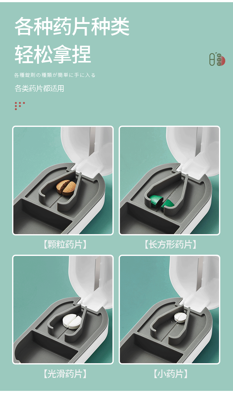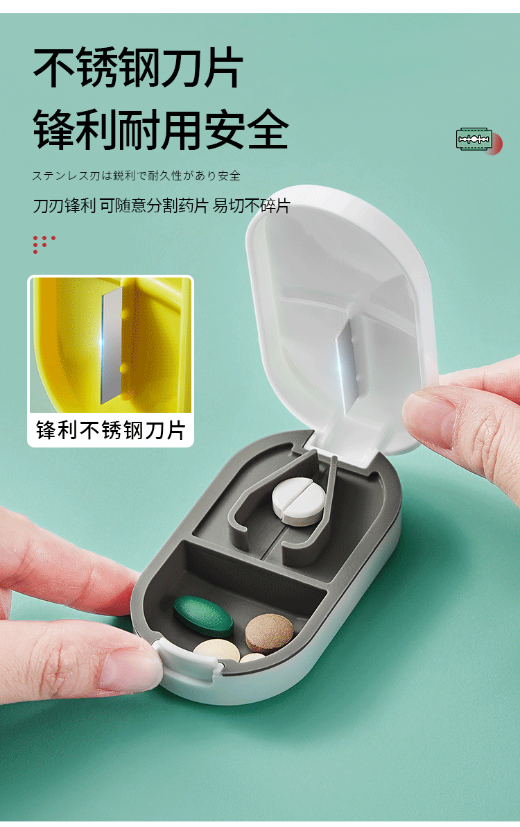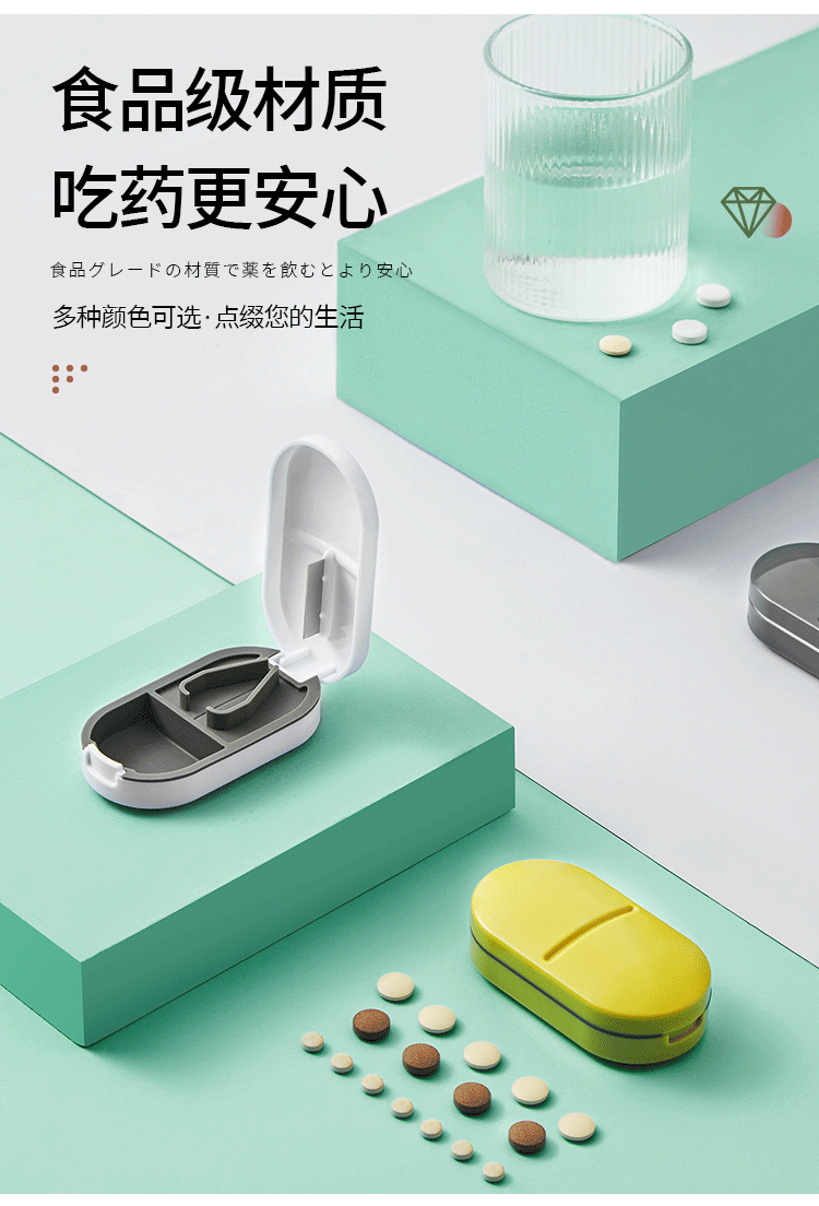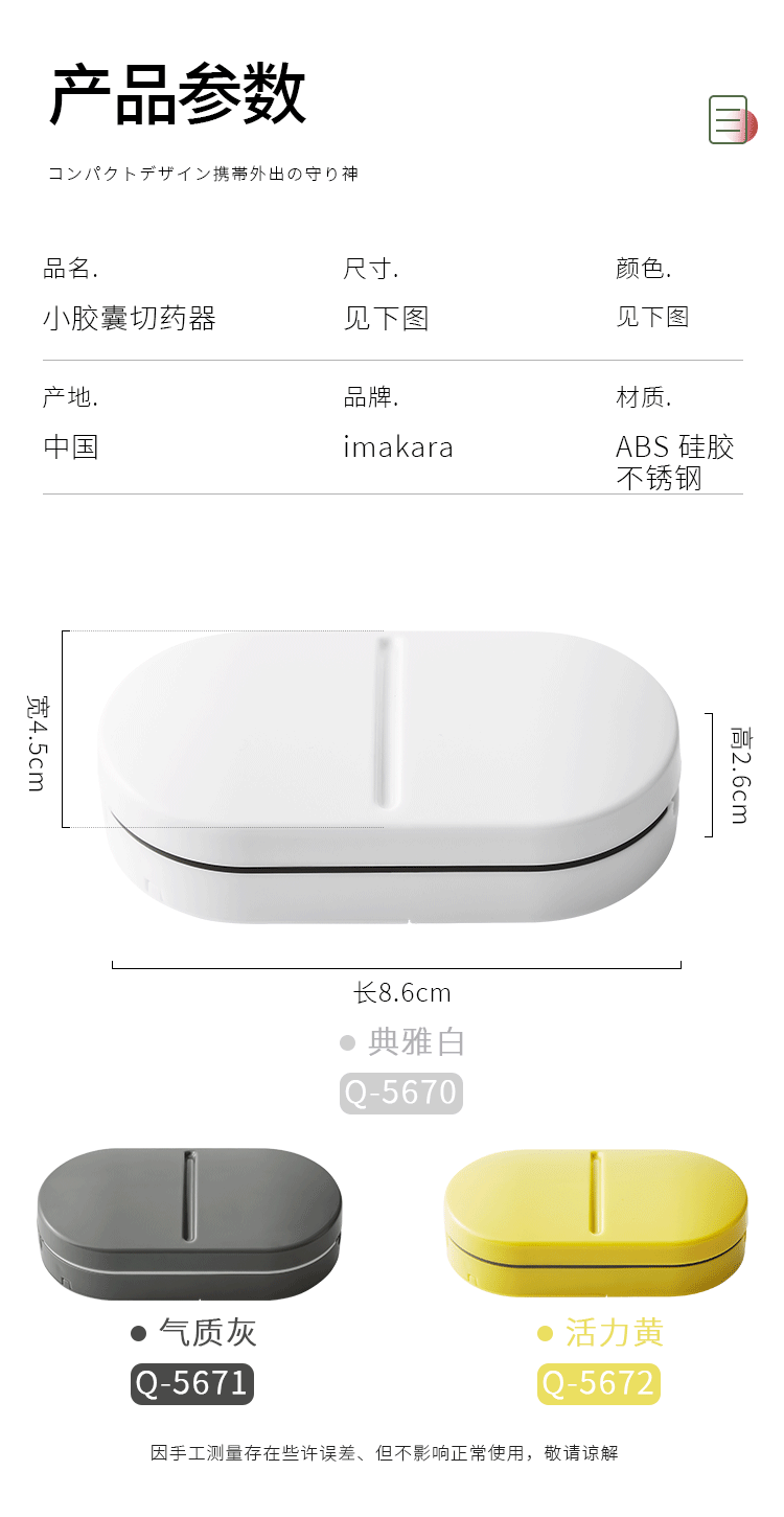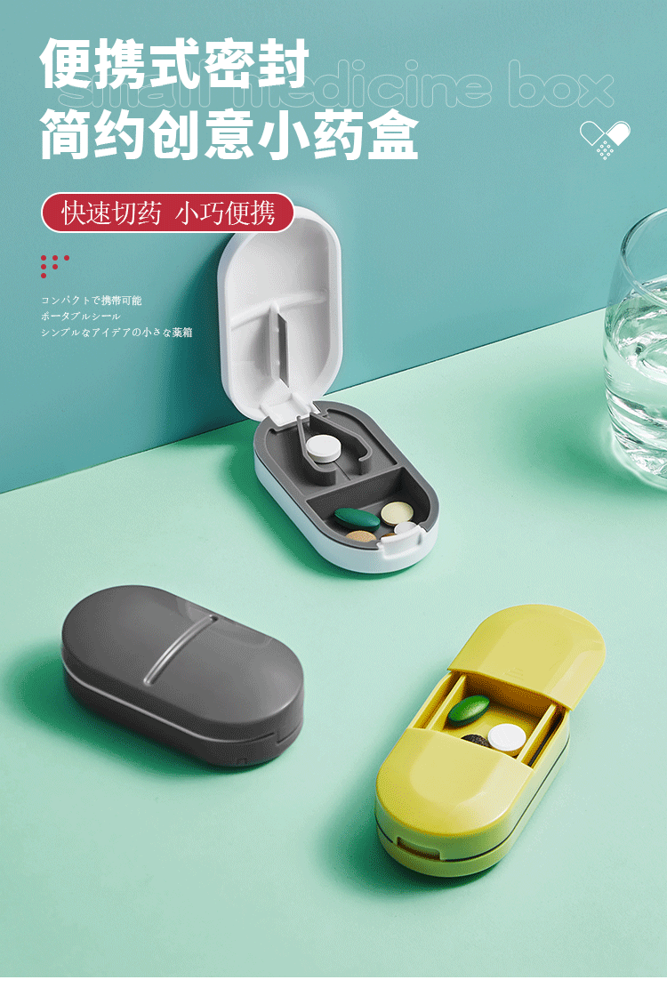 Imakara日本小分药盒便携式随身迷你分装药盒子切药分药器药品一分二神器