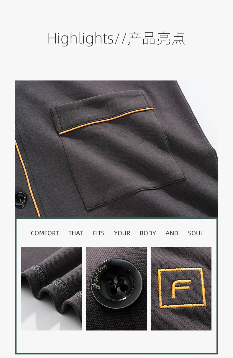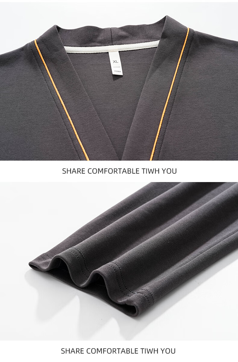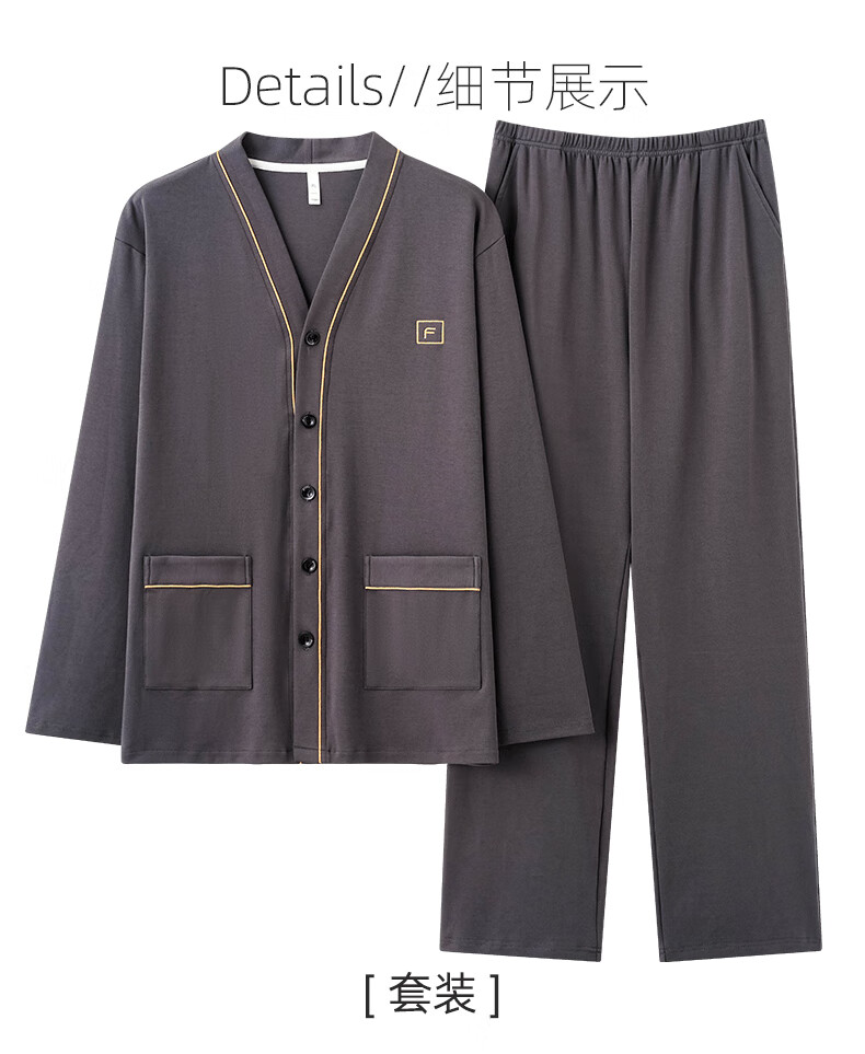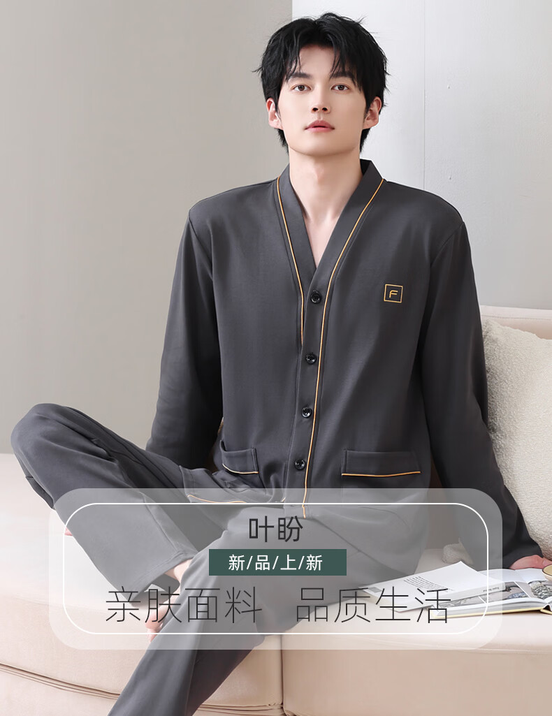 叶盼(yepan)【柔软】莱卡纯棉睡衣男士春秋长袖开衫和服大码可外穿家居服套装 8502-灰棕 L (170) :建议100-135斤穿着