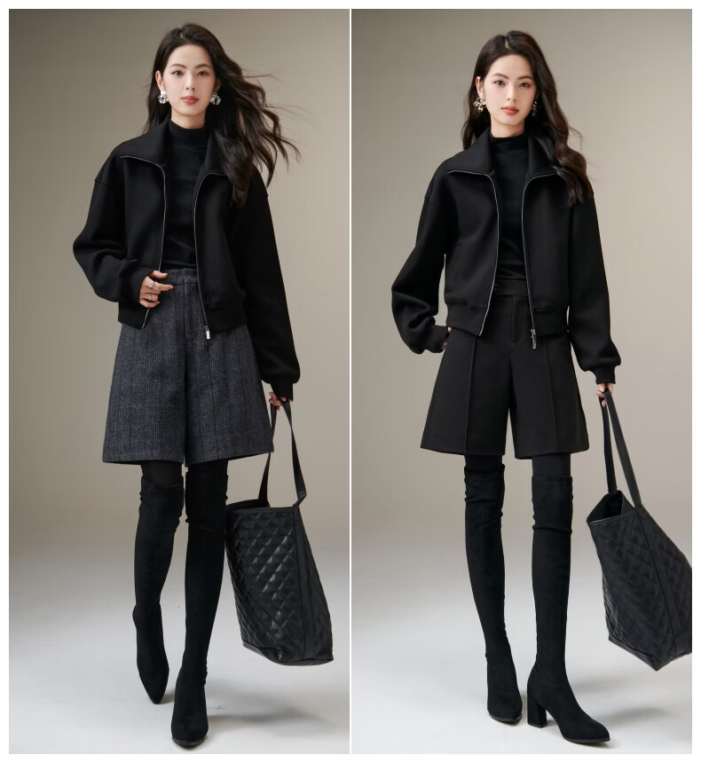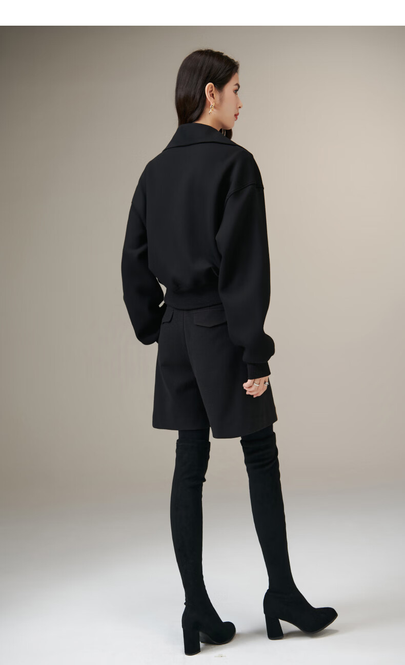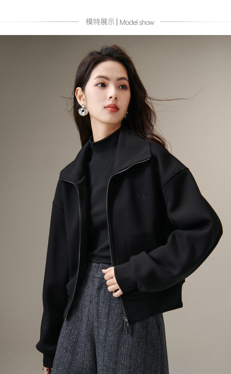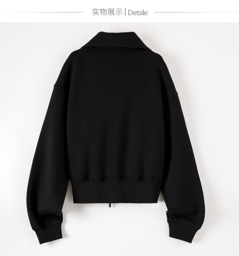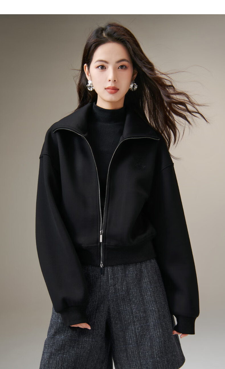 晚白【新品】2026春季翻领气质拉链上衣宽松大码气质百搭卫衣外套女 黑色 L