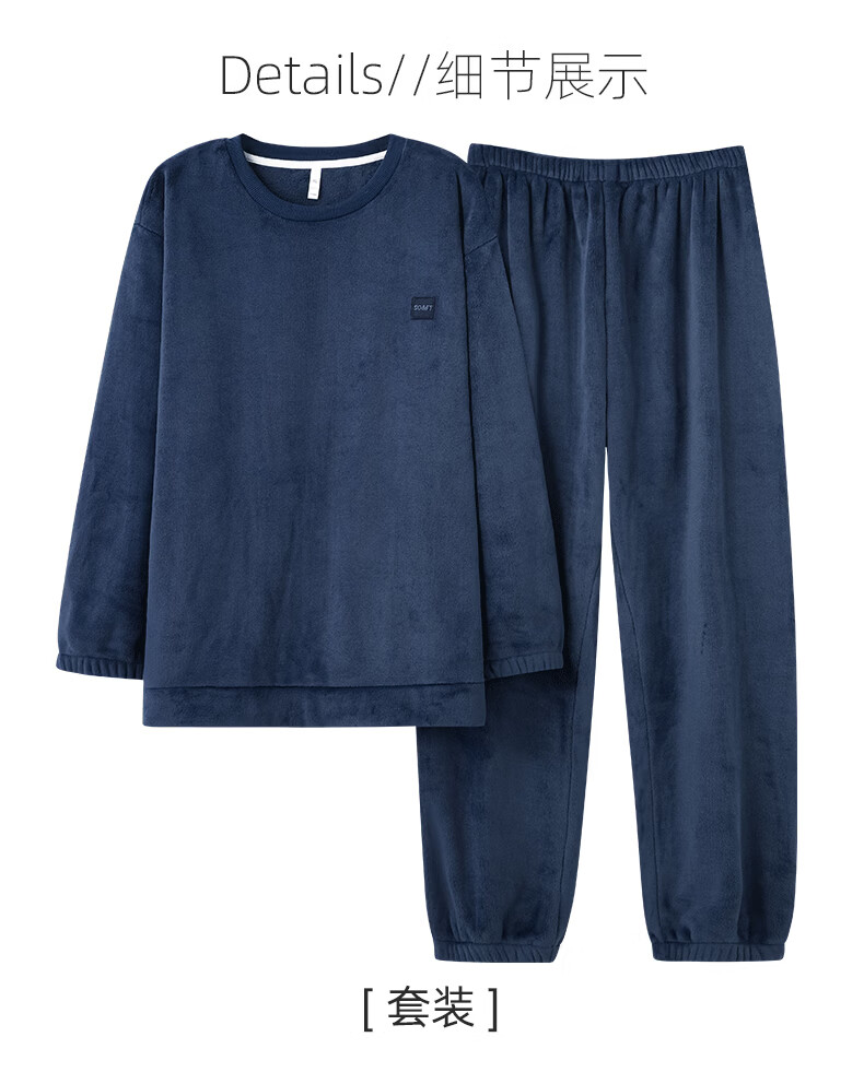 允织法兰绒睡衣男冬季加厚加绒宽松大码可外穿冬天男士家居服保暖套装 4904-宝石蓝 2XL (180) :建议155-180斤穿着