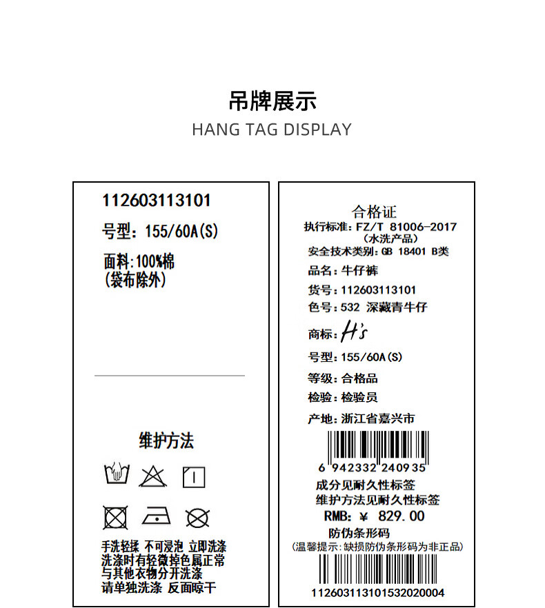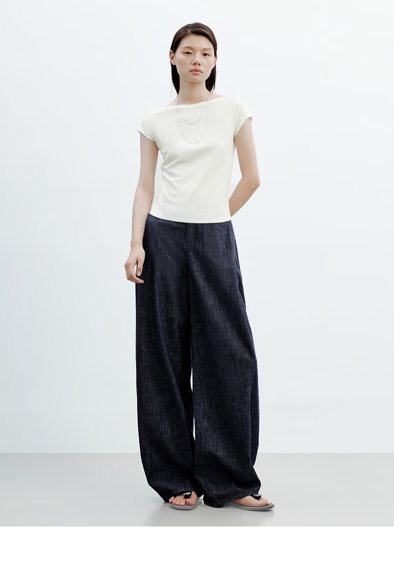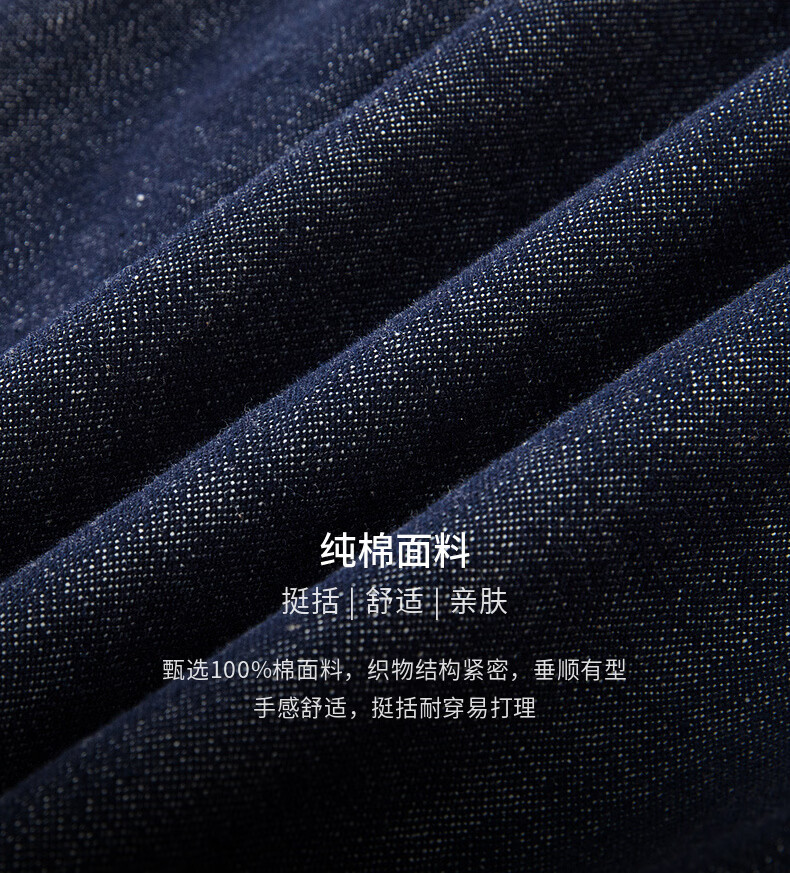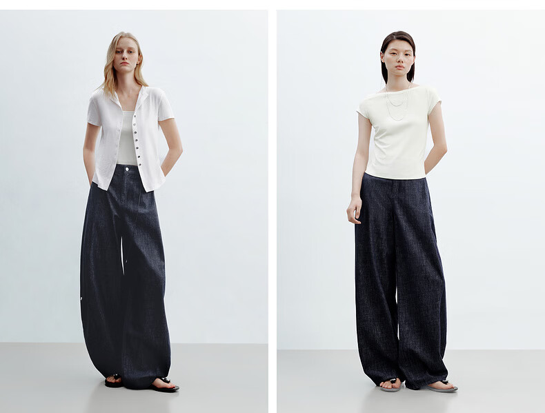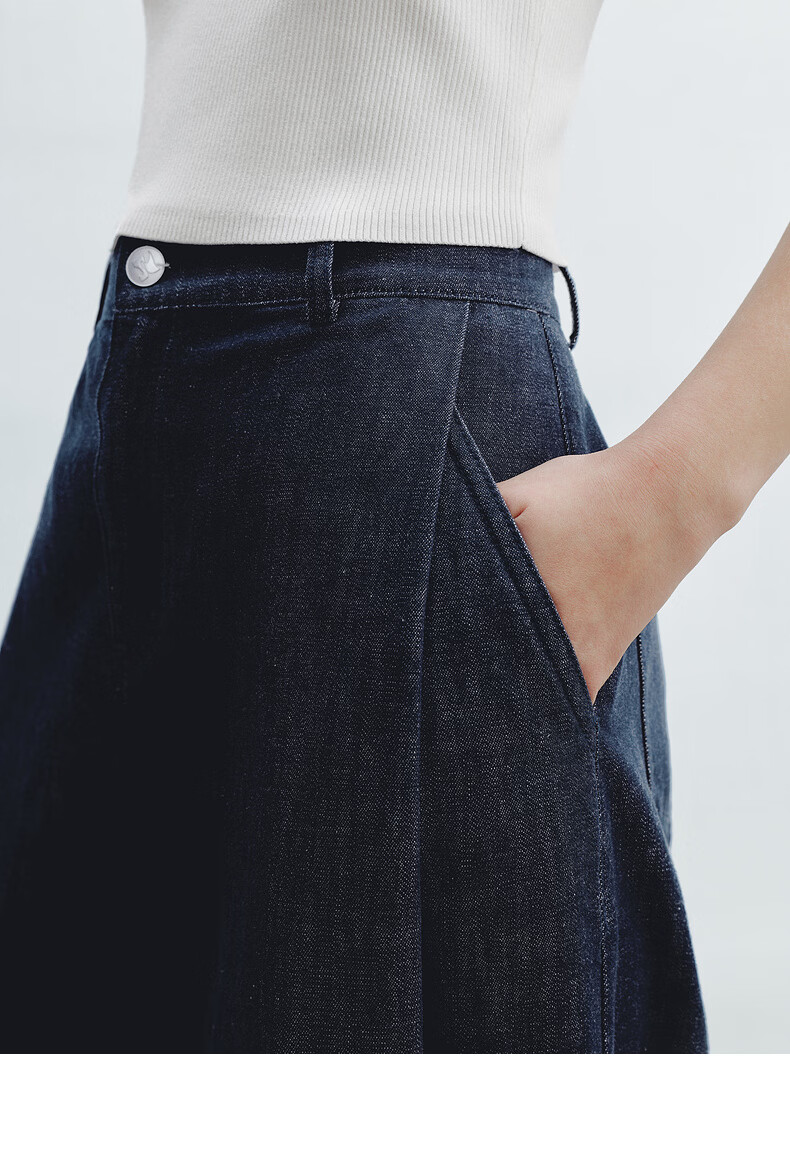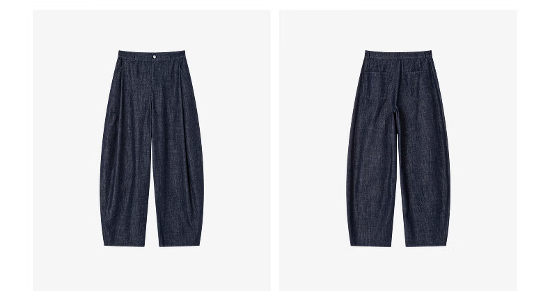 H's藏青弯刀裤女26夏季新款高级感全棉复古单宁廓形休闲阔腿裤子 深藏青牛仔 S
